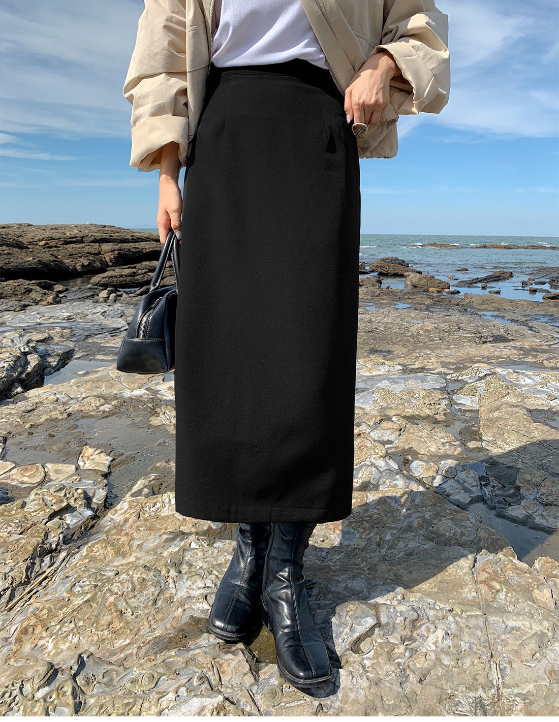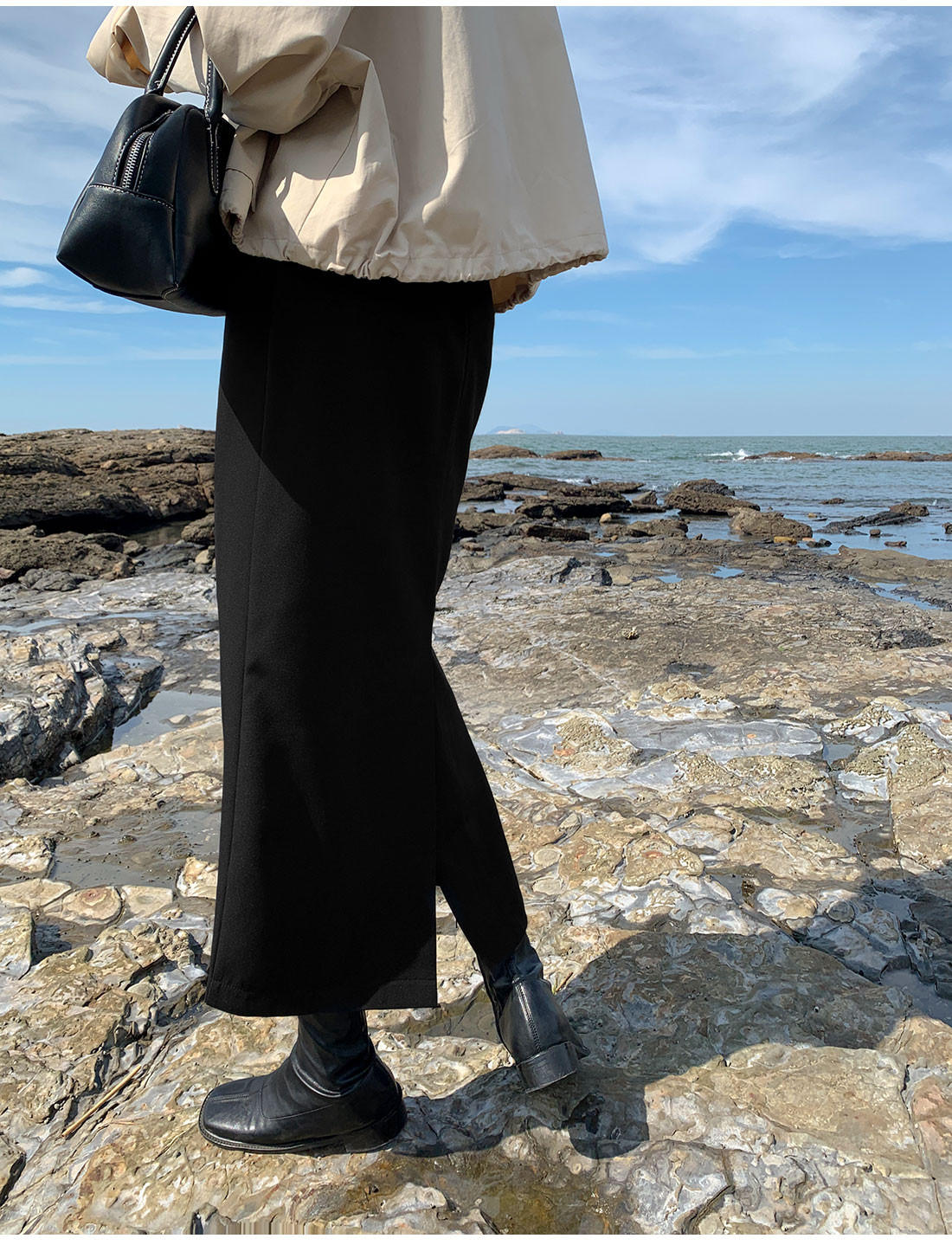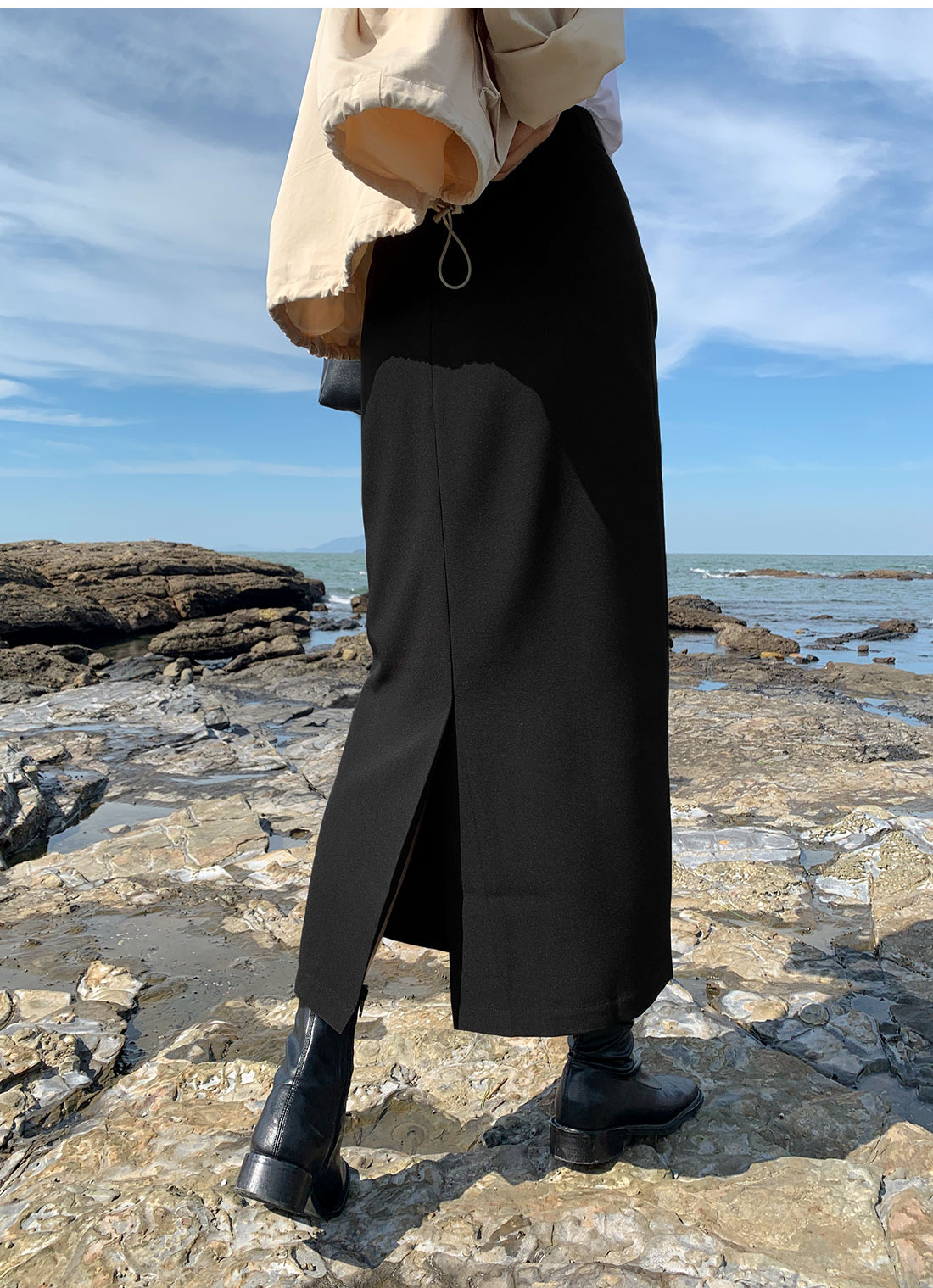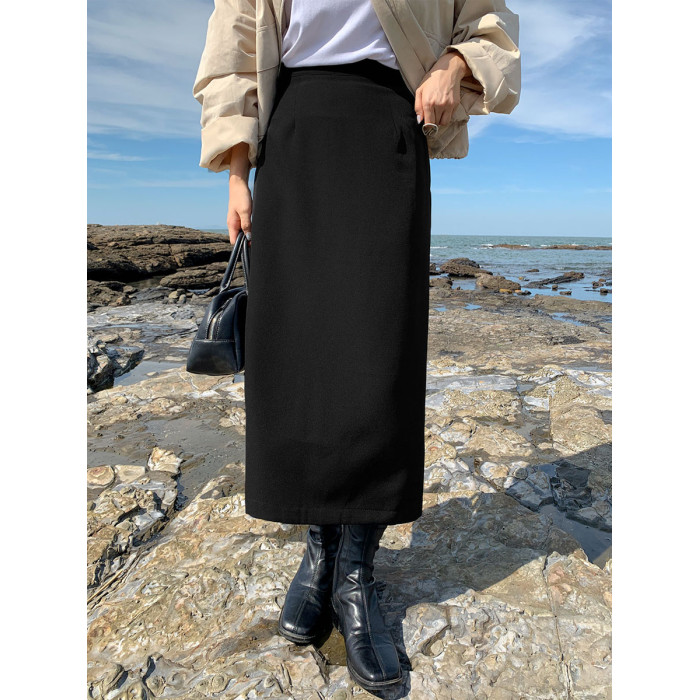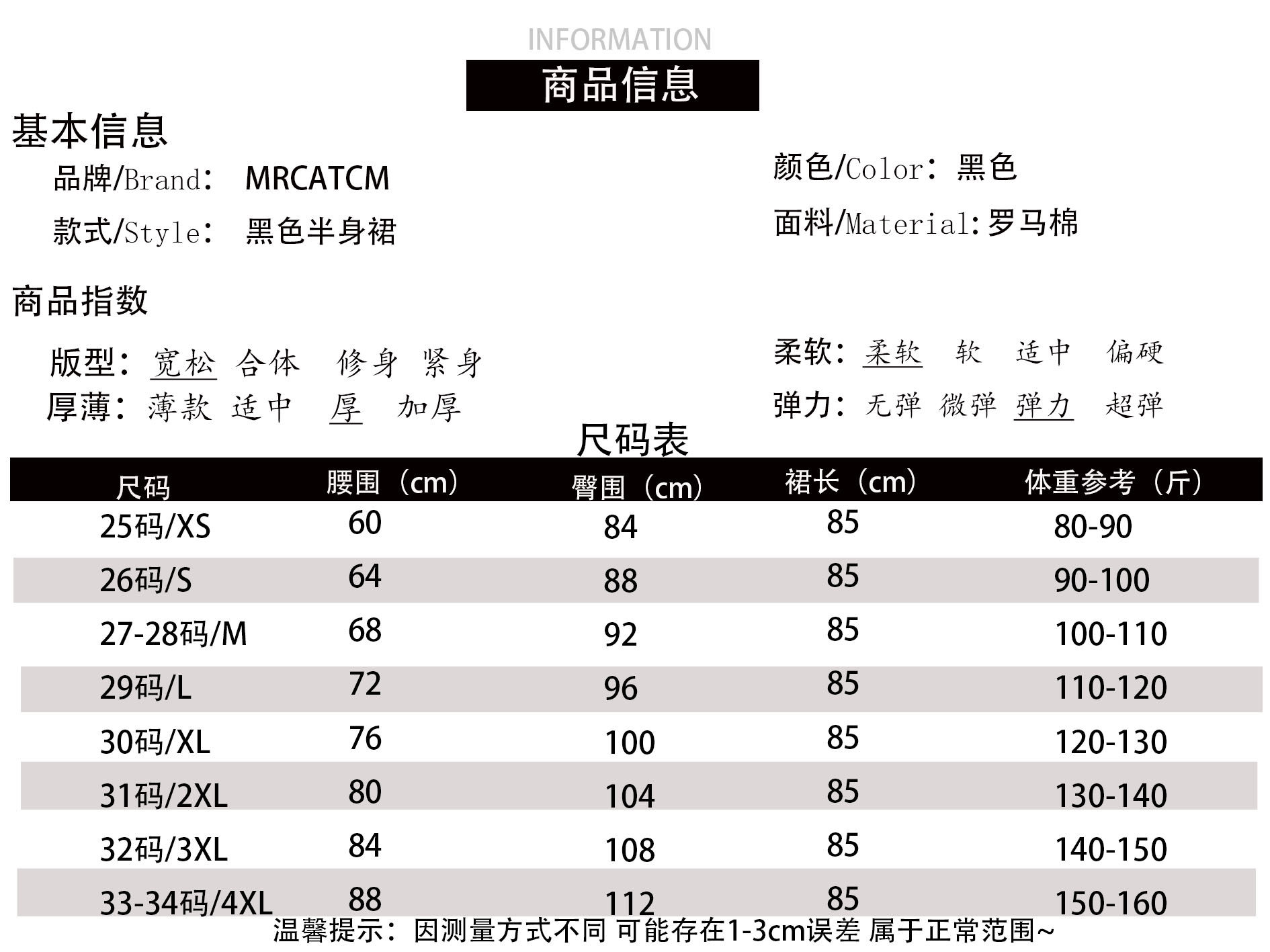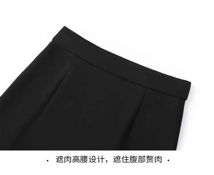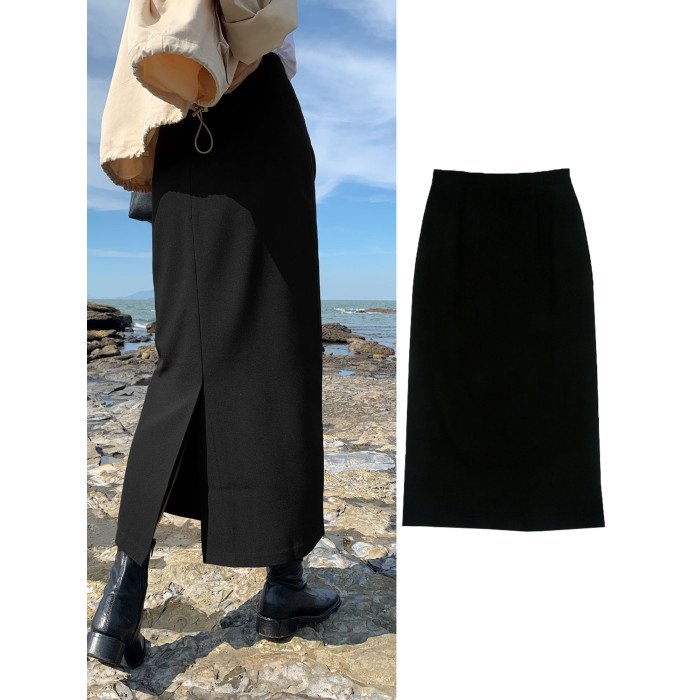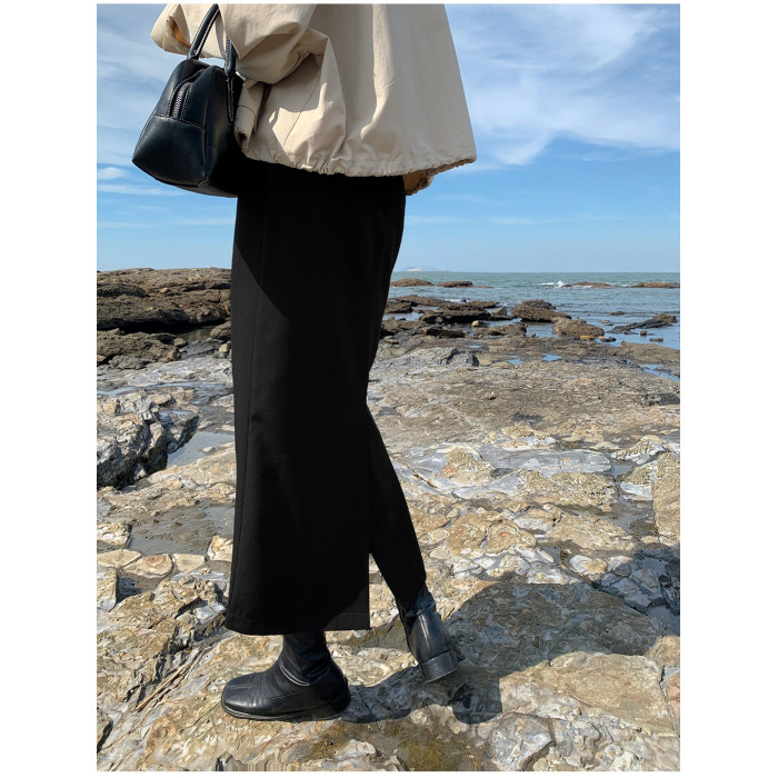 黑色羅馬棉中長款一步裙寬松休閒裙女2025高腰顯瘦開叉裙包臀長裙