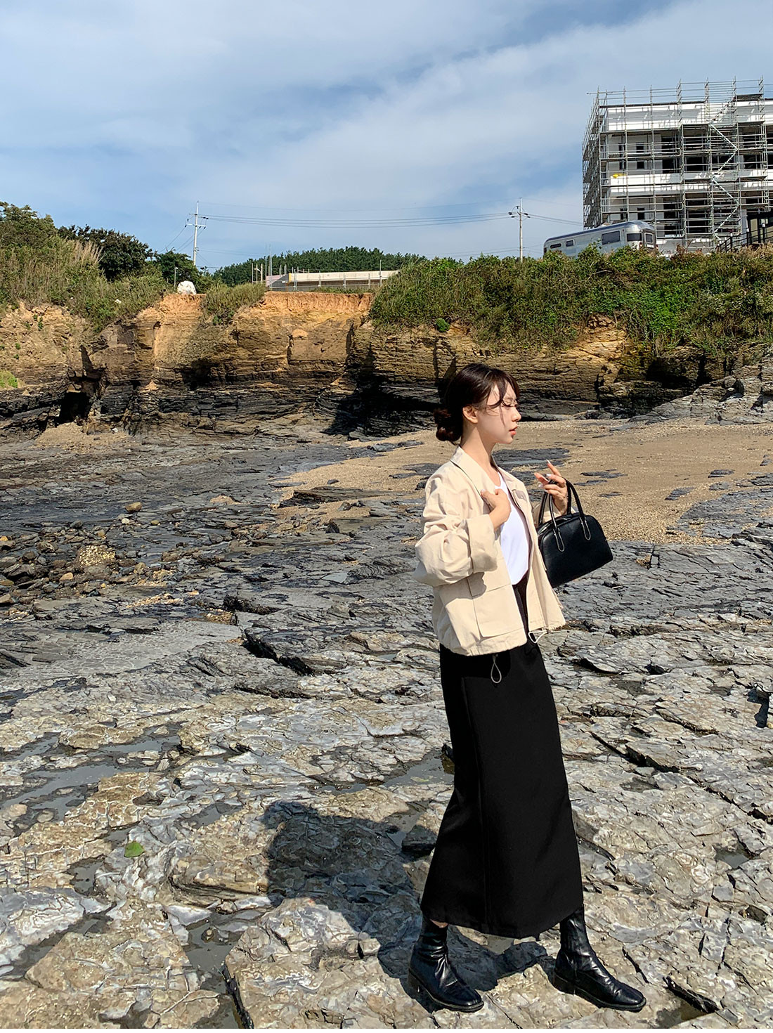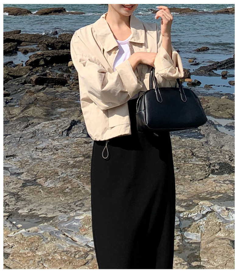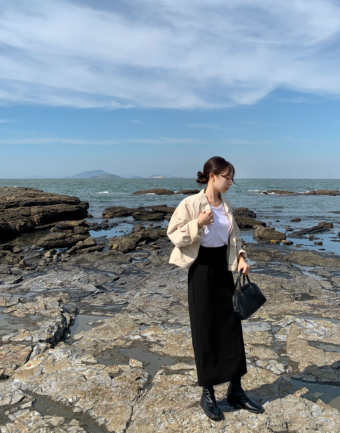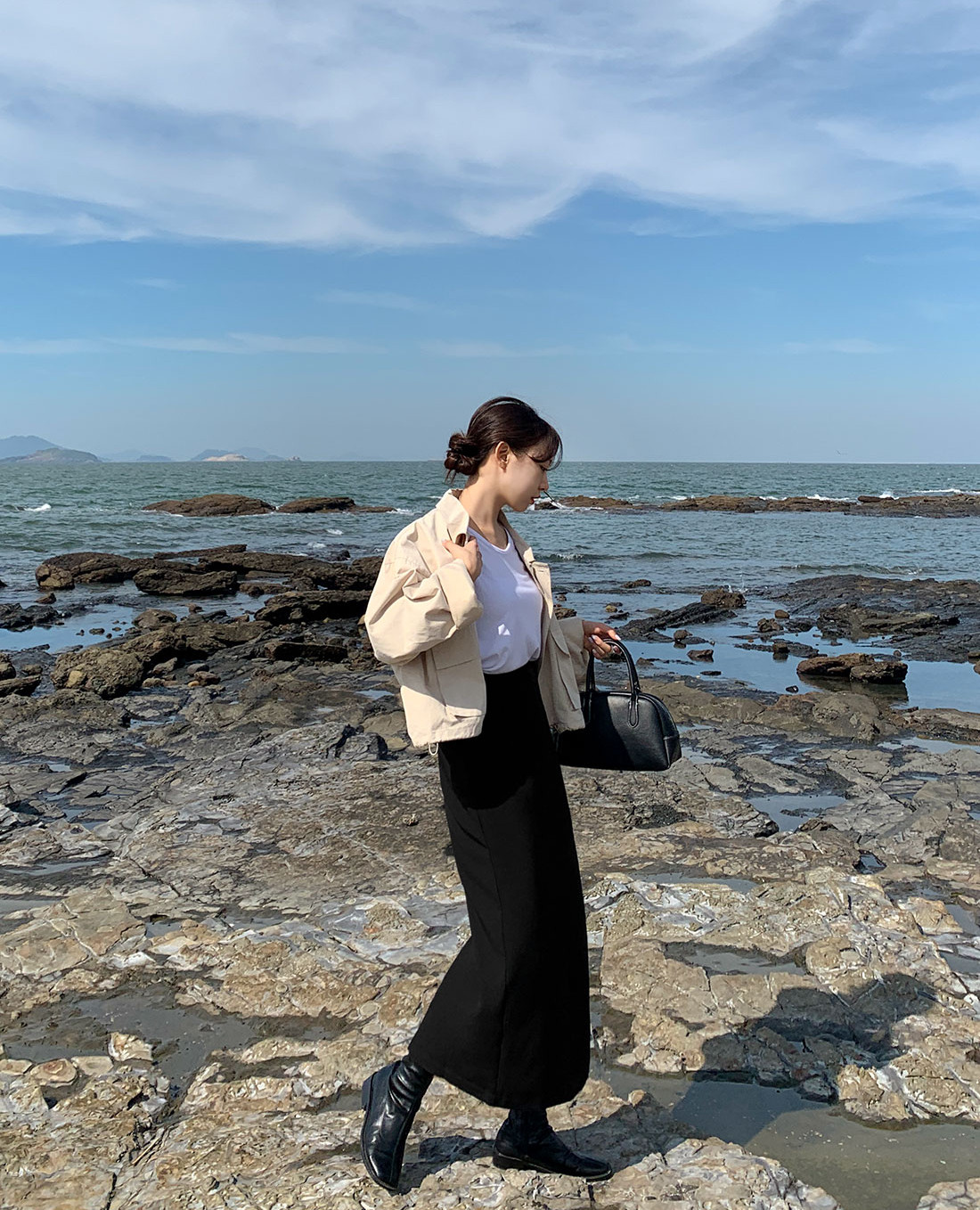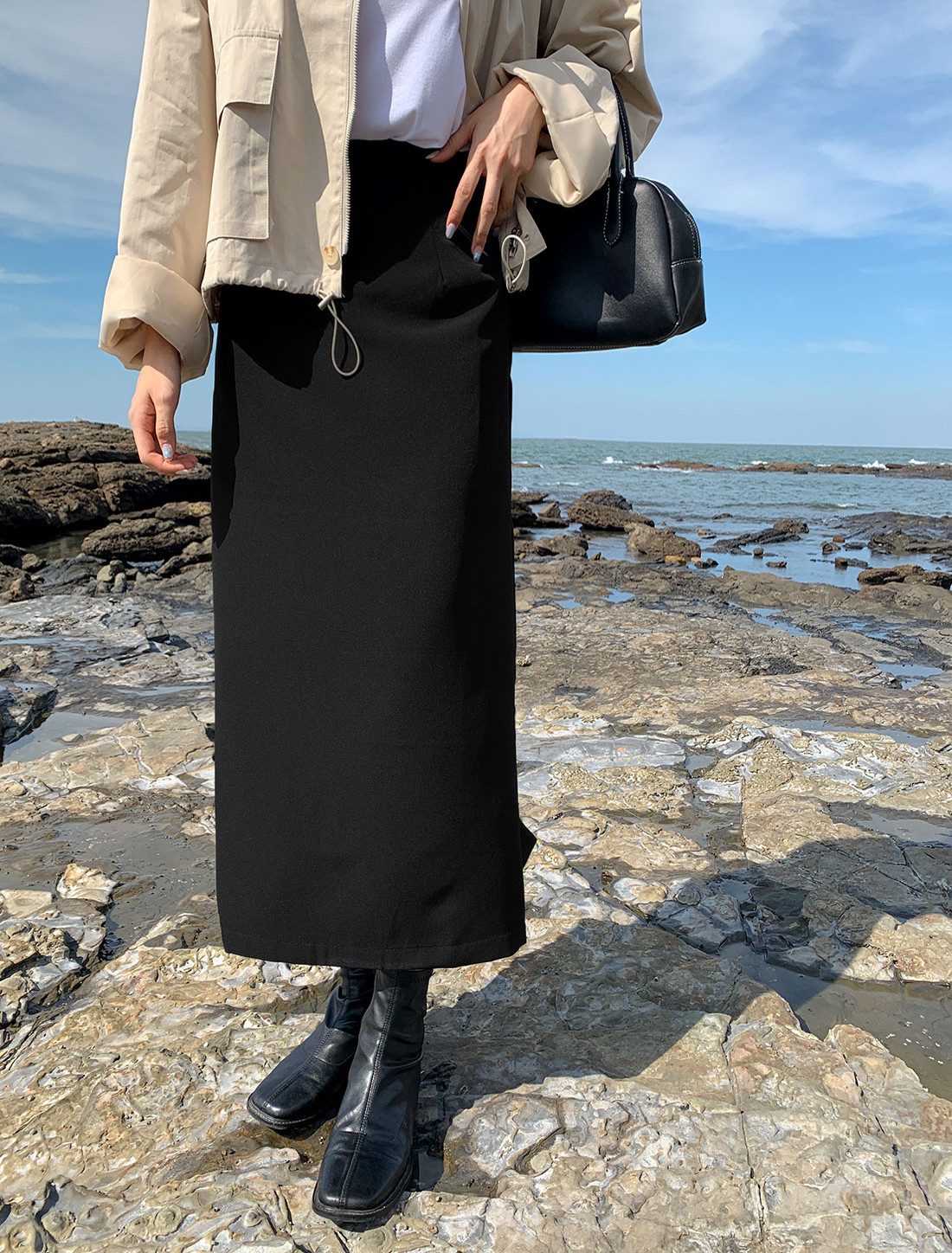 黑色羅馬棉中長款一步裙寬松休閒裙女2025高腰顯瘦開叉裙包臀長裙