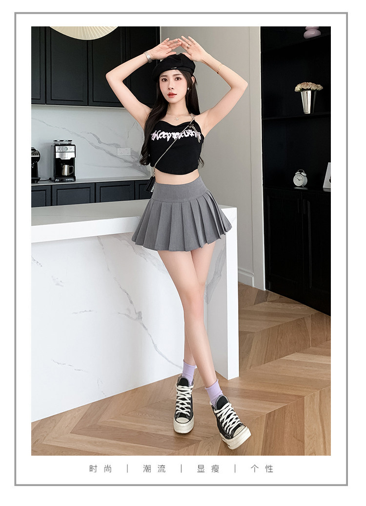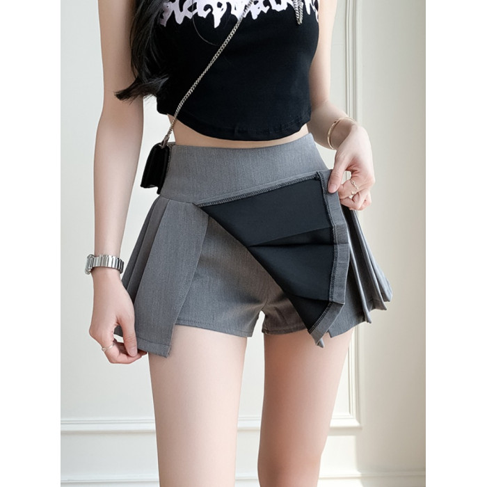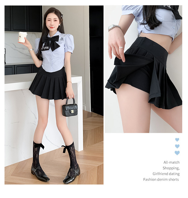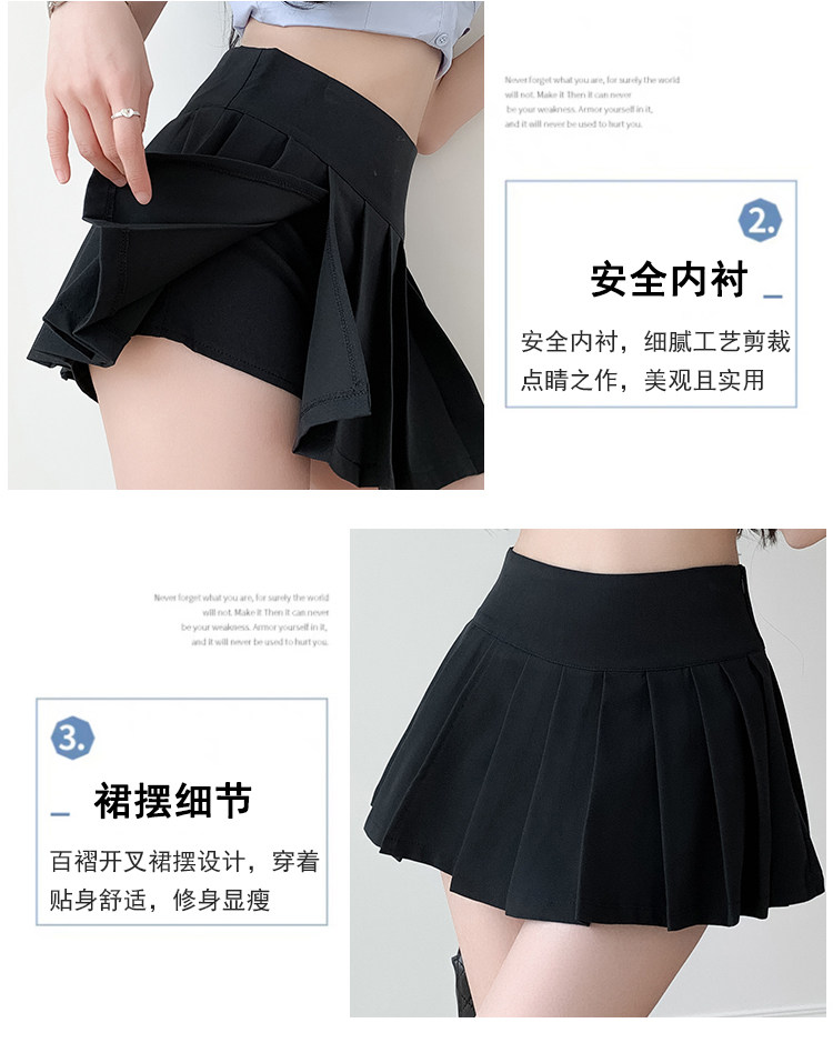 黑色裙子女夏季性感辣妹防走光超短裙高腰A字裙開叉百褶裙半身裙
