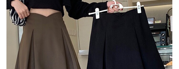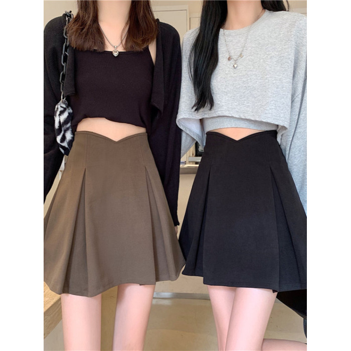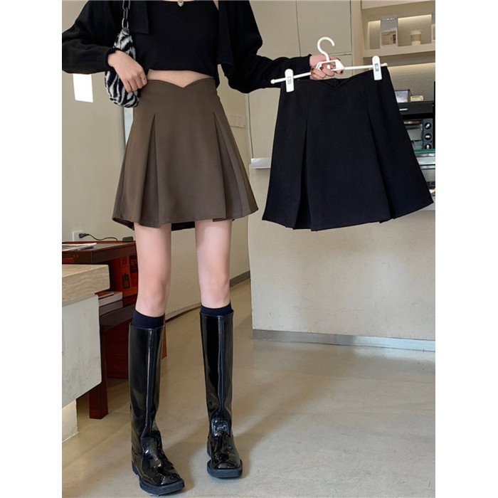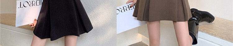 大碼胖mm卡其色高腰包臀半身裙女春秋毛呢a字百褶裙顯瘦jk短裙子