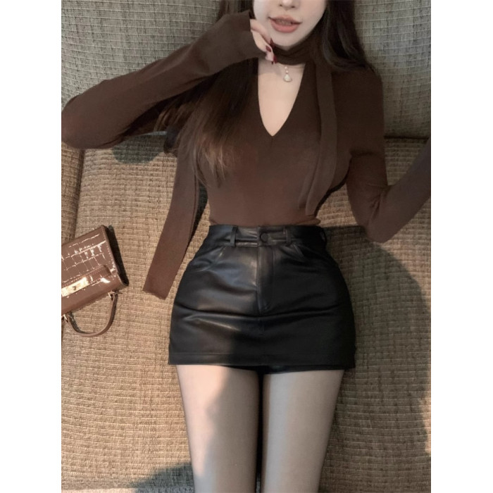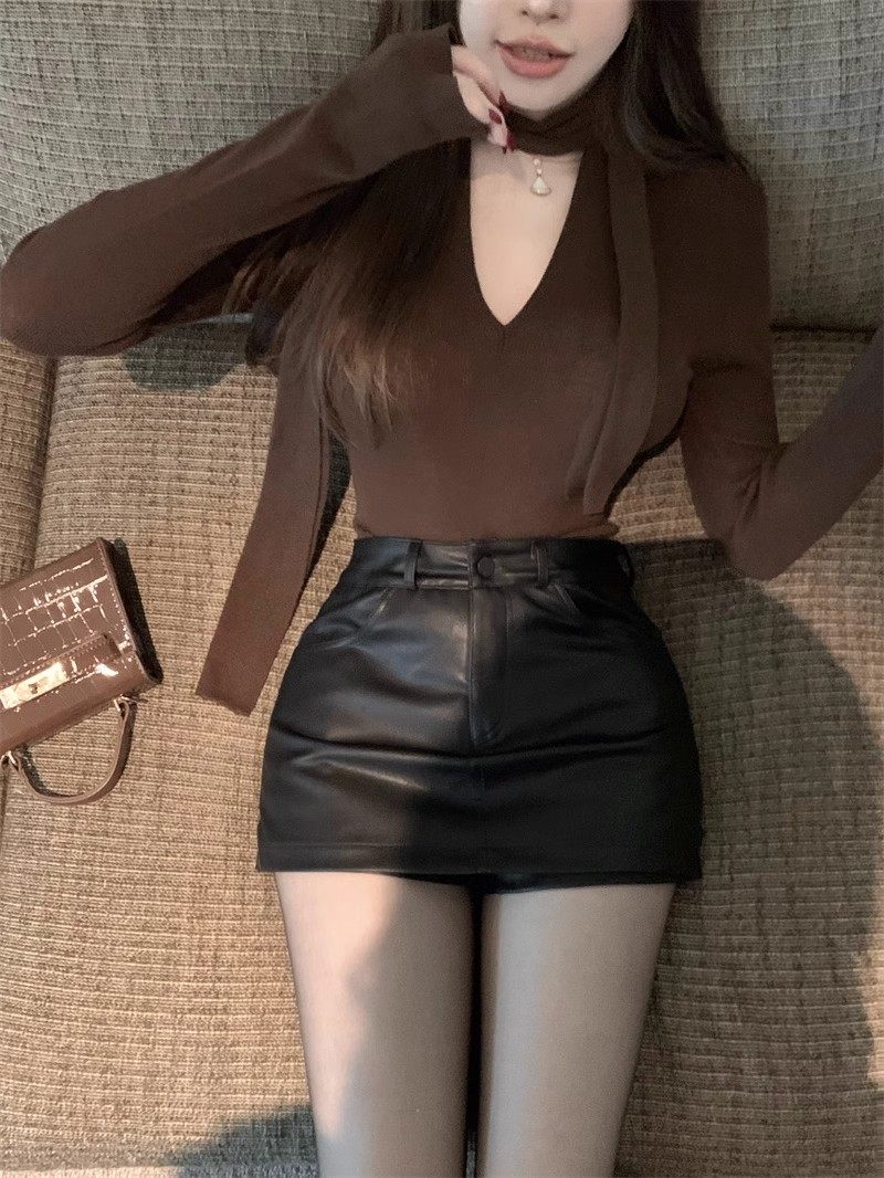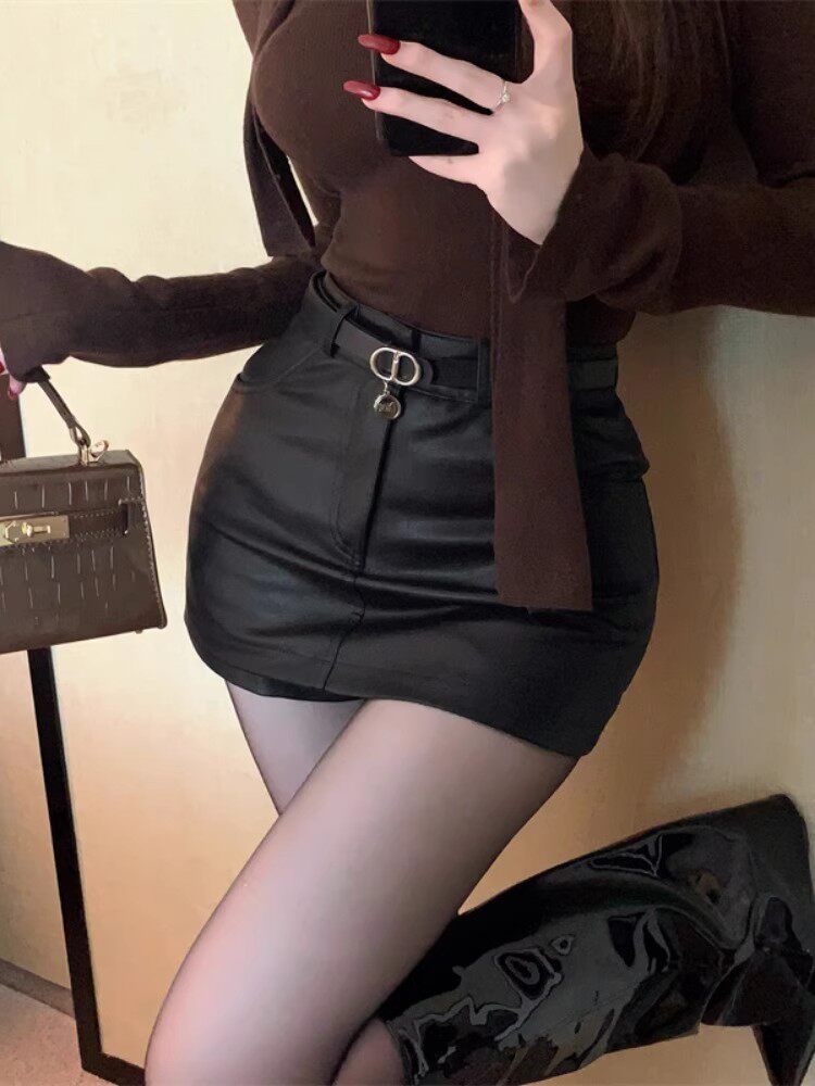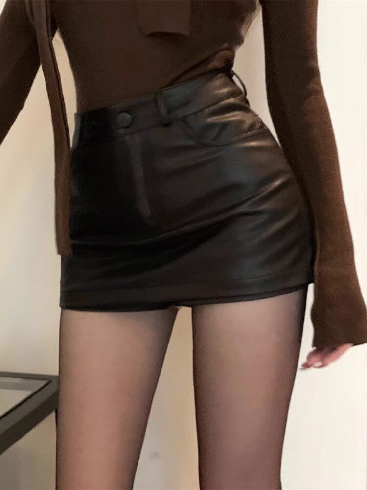 黑色pu皮裙半身裙女秋冬防走光裙褲辣妹高腰性感緊身包臀裙子短裙