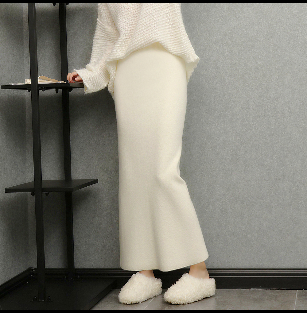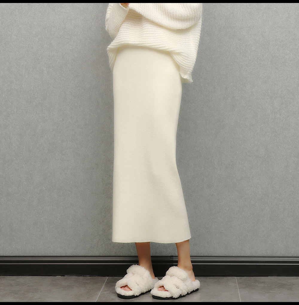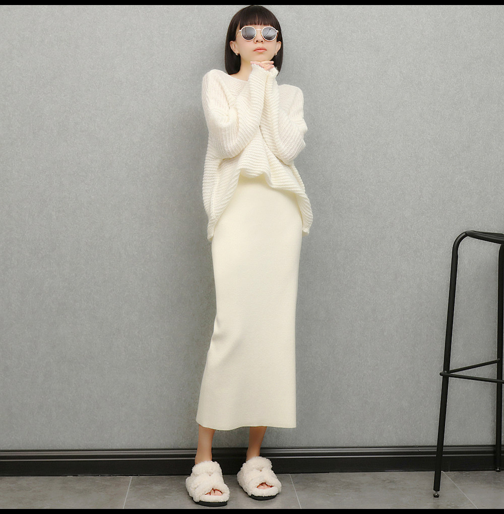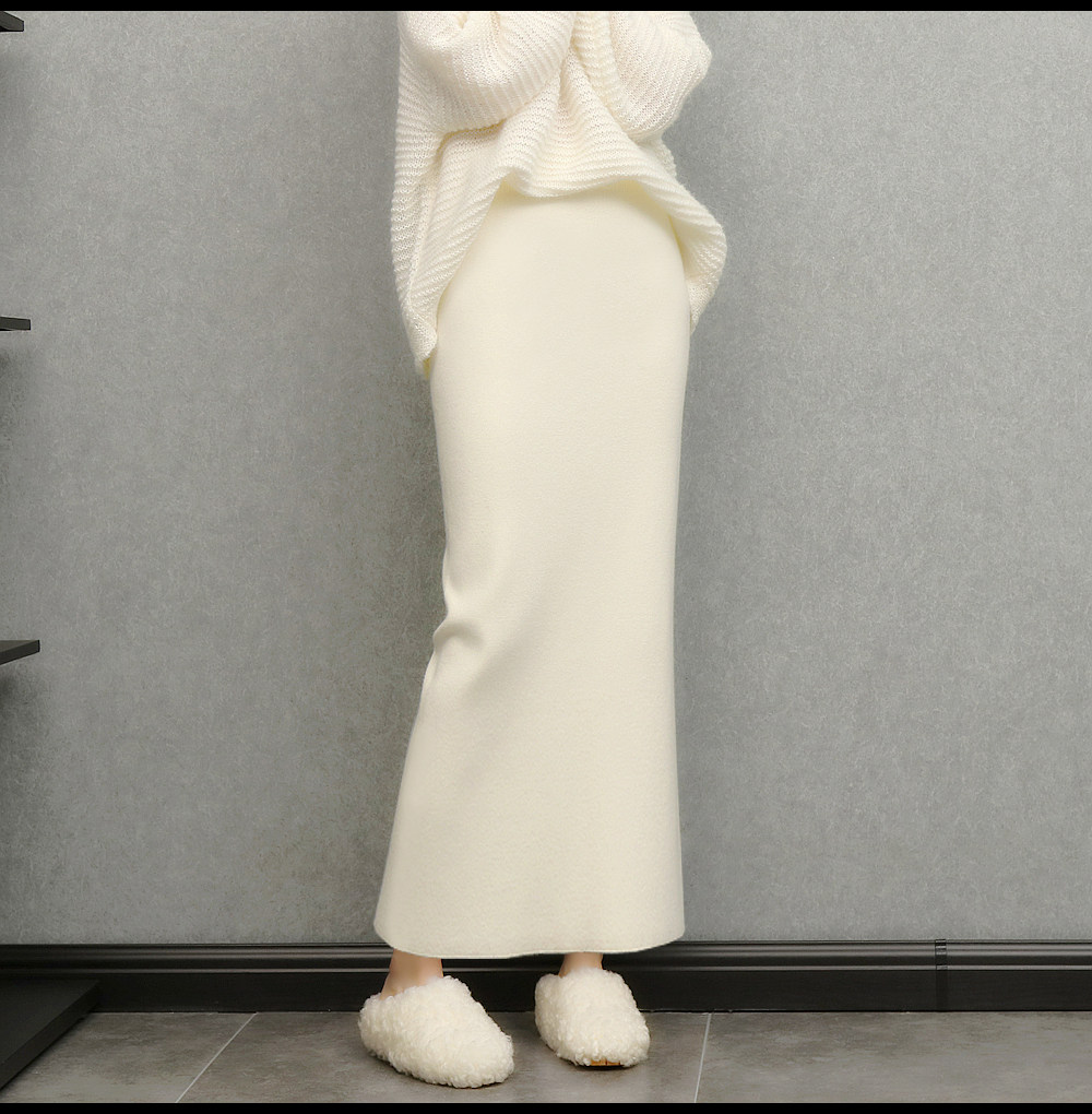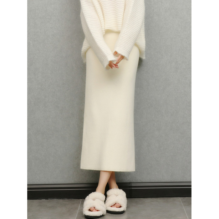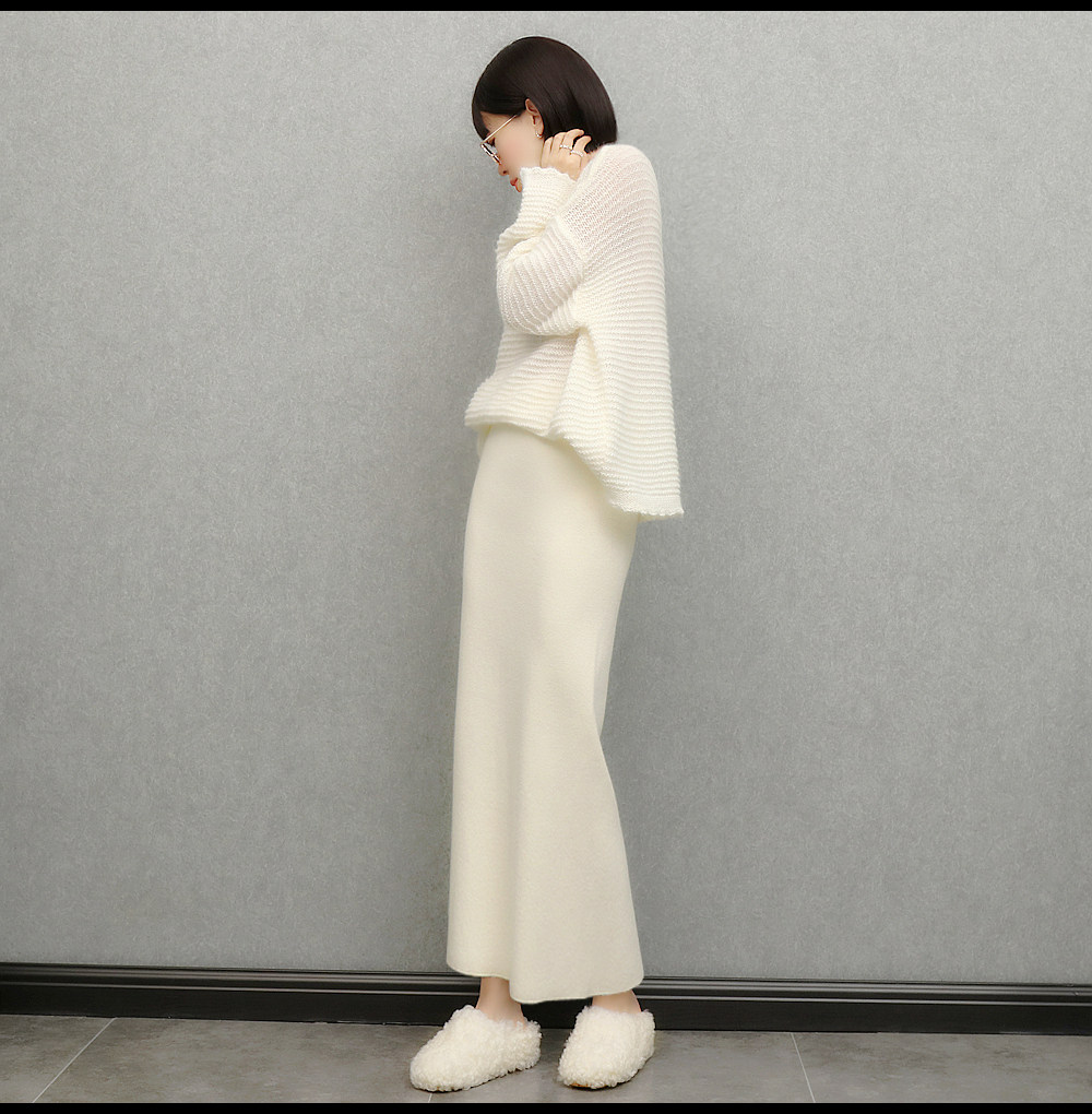 imoko.針織半身裙丨春秋冬季米白色優雅溫柔中長裙包臀裙長裙女潮