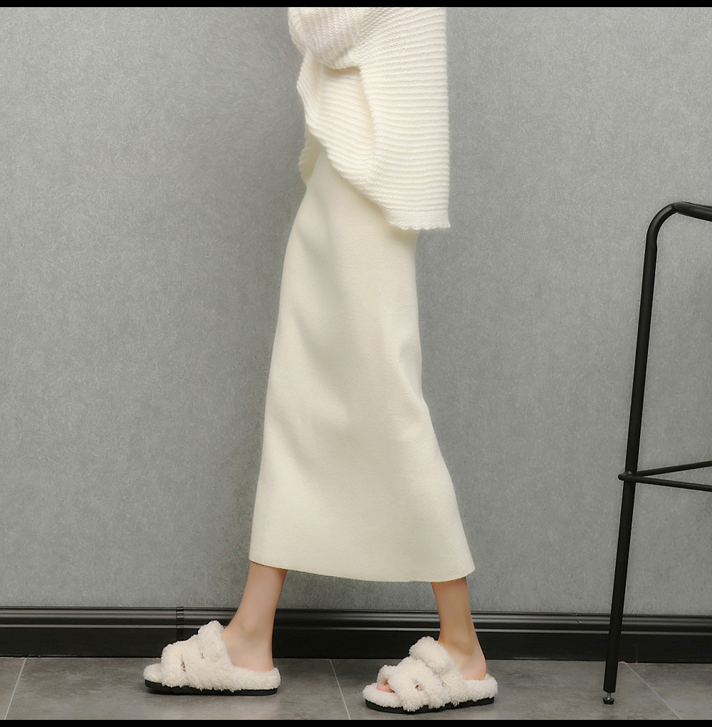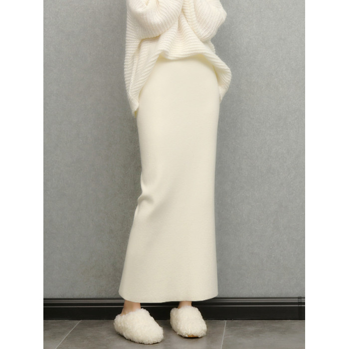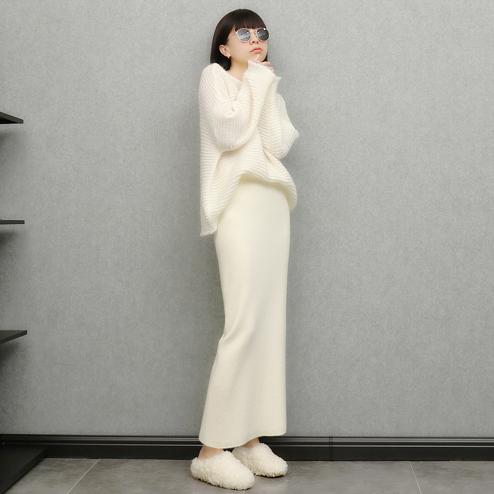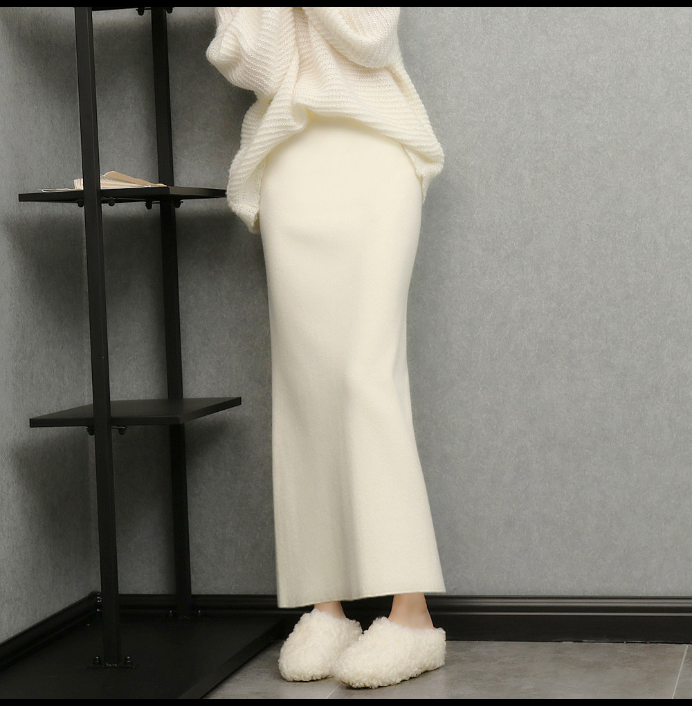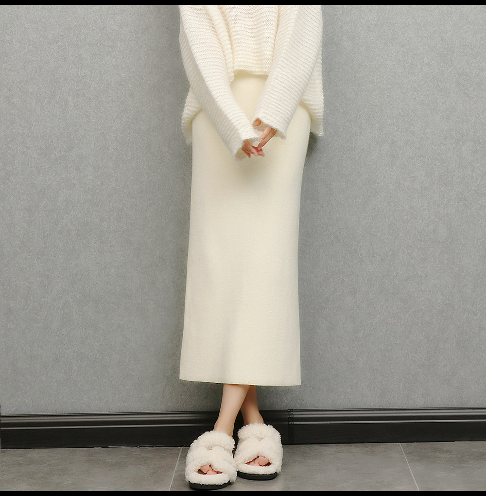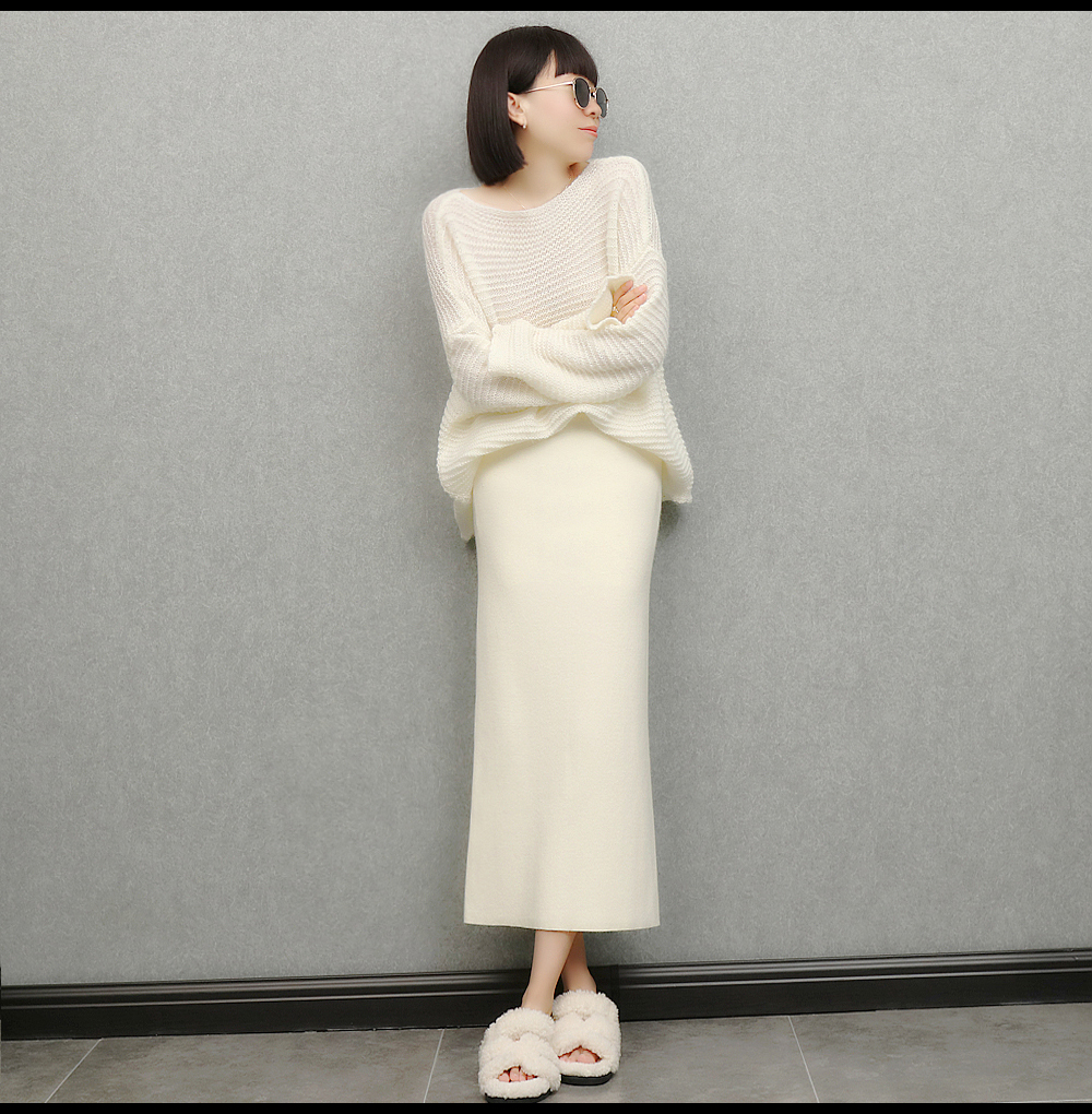 imoko.針織半身裙丨春秋冬季米白色優雅溫柔中長裙包臀裙長裙女潮
