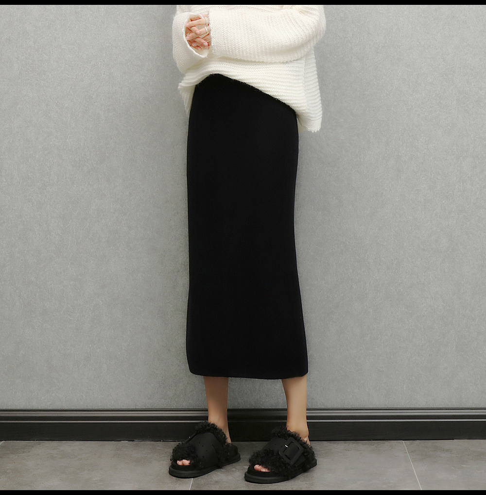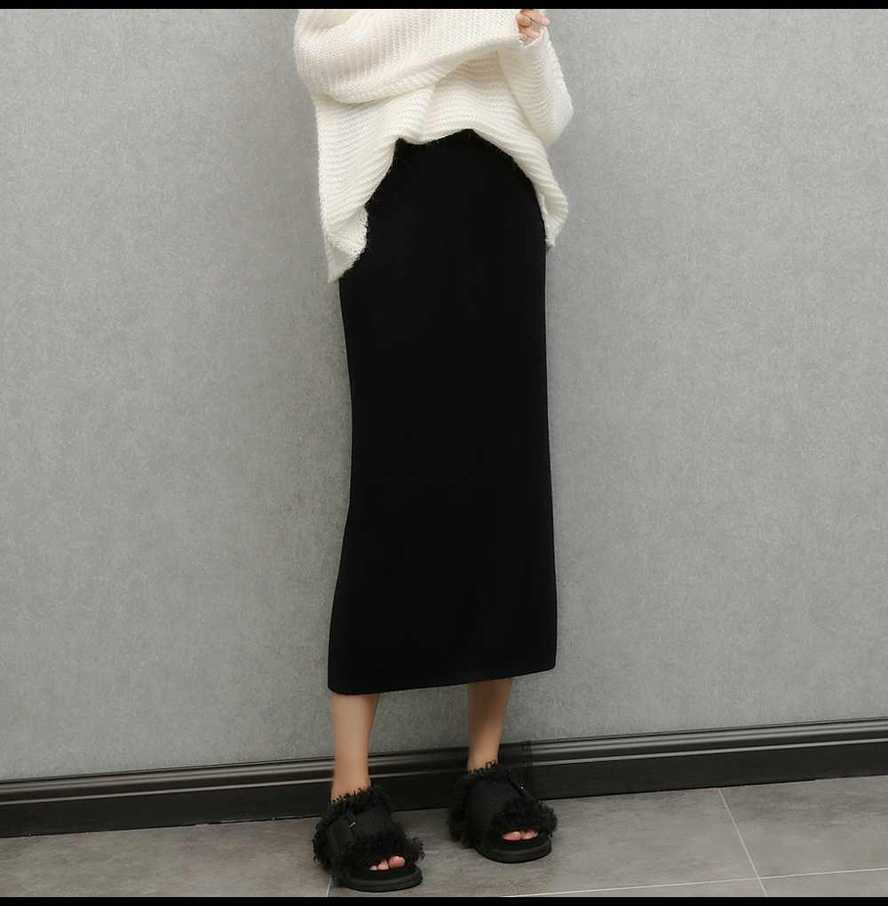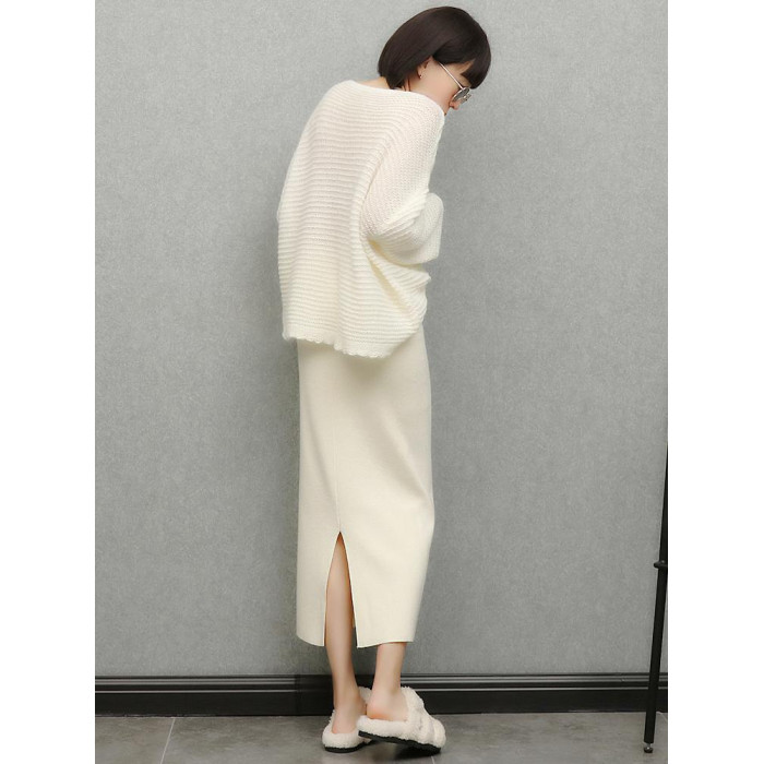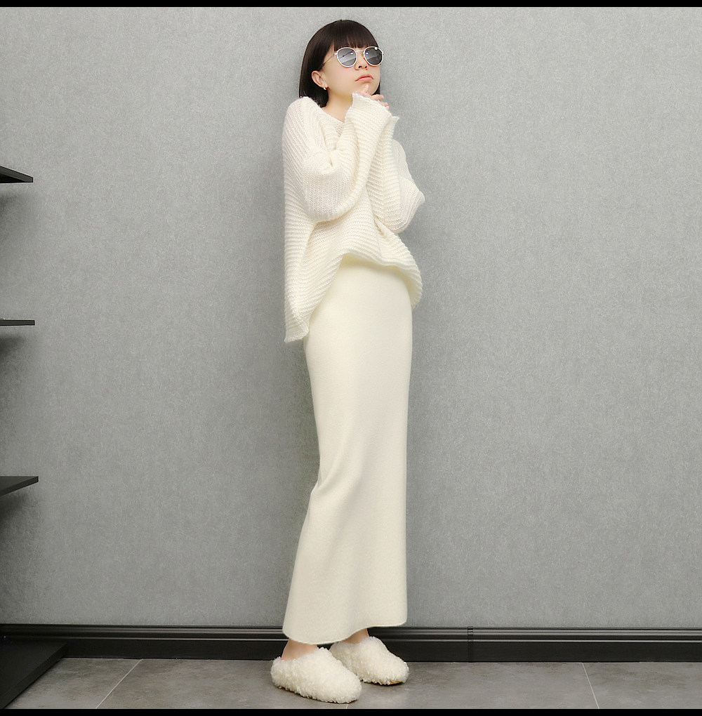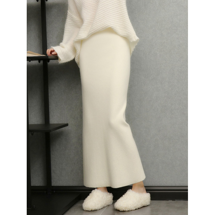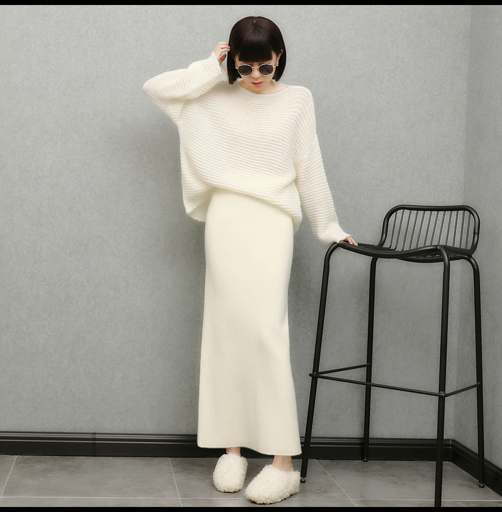 imoko.針織半身裙丨春秋冬季米白色優雅溫柔中長裙包臀裙長裙女潮
