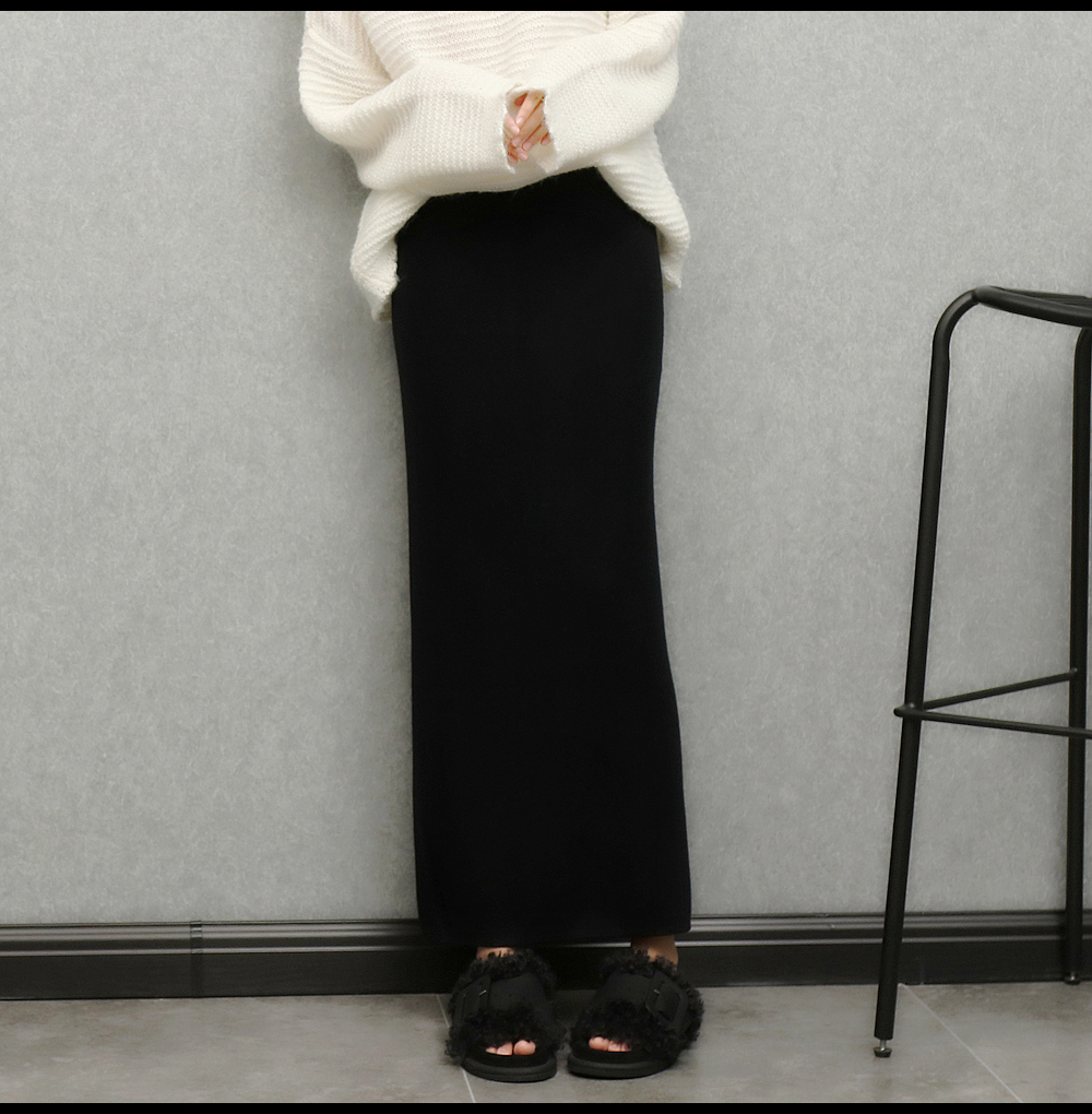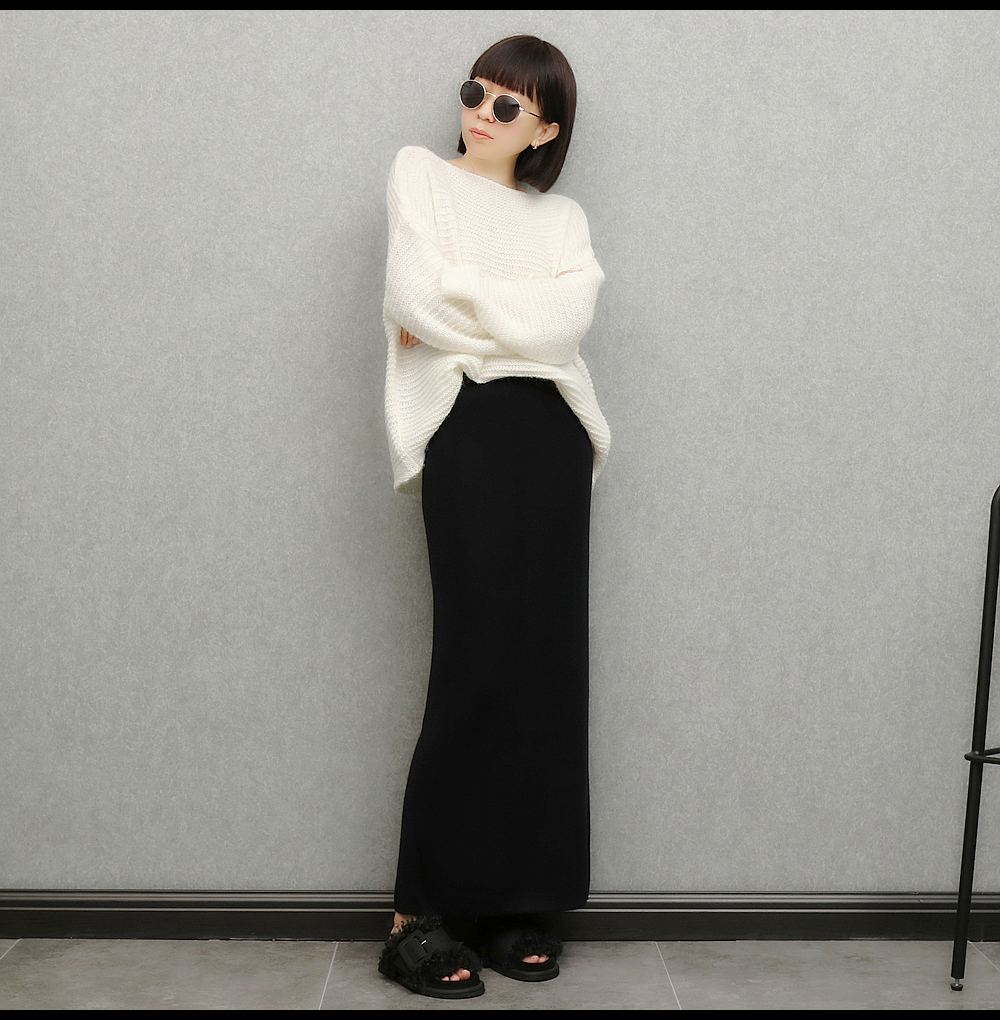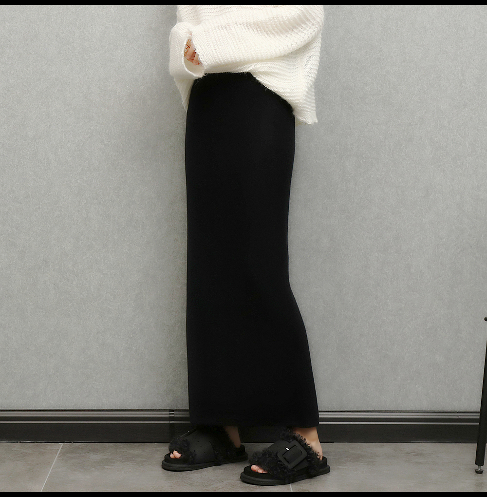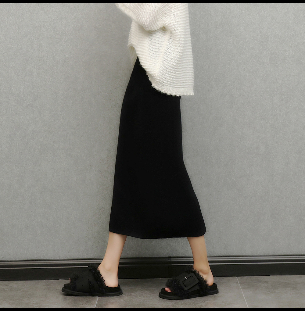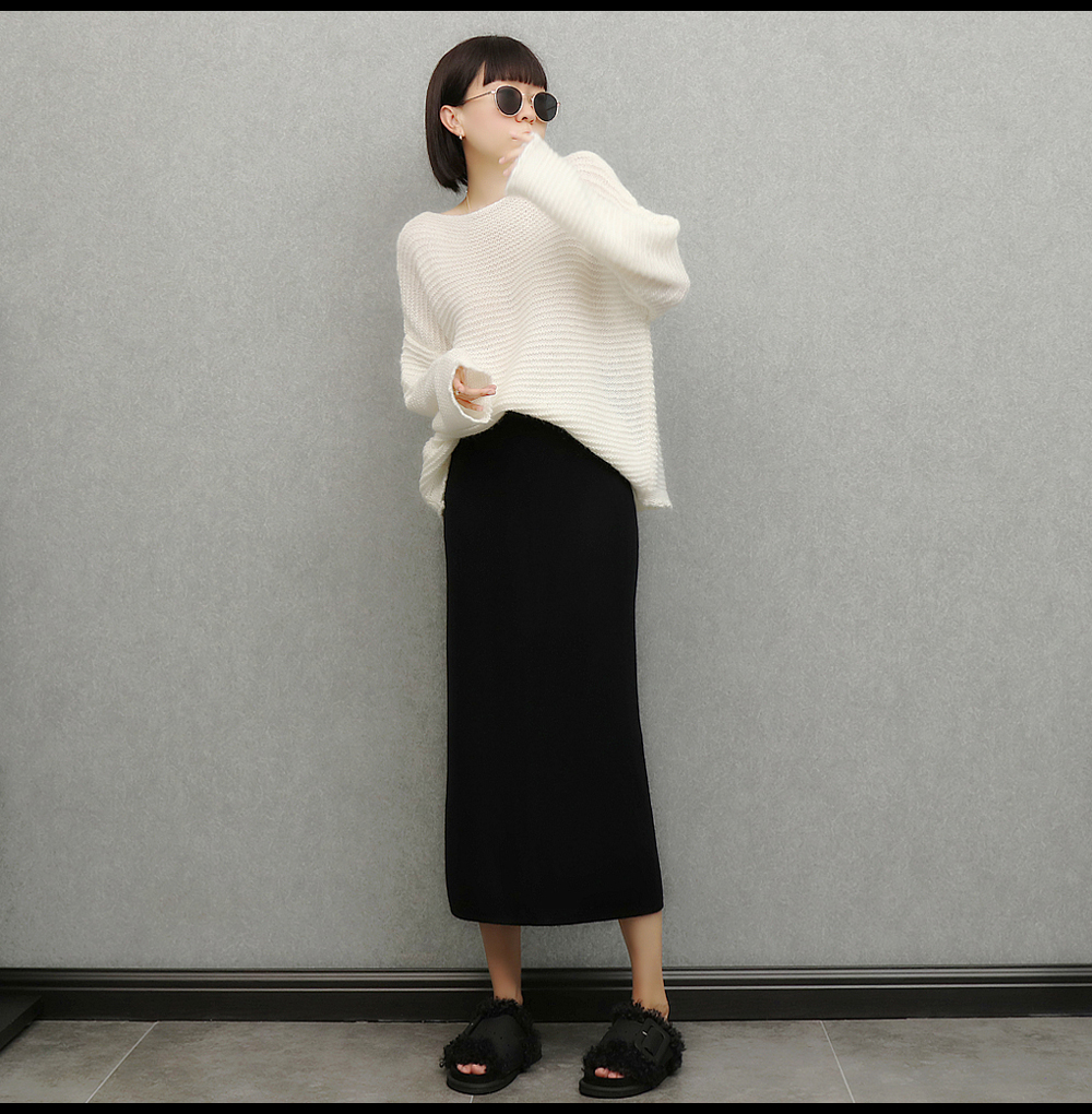 imoko.針織半身裙丨春秋冬季米白色優雅溫柔中長裙包臀裙長裙女潮