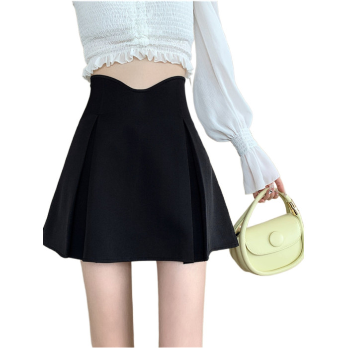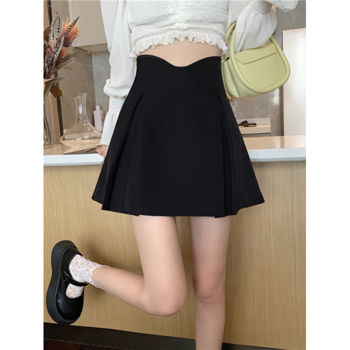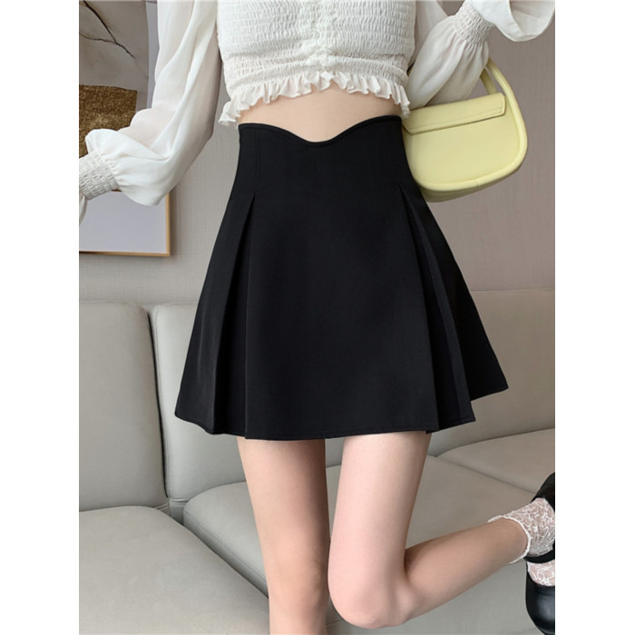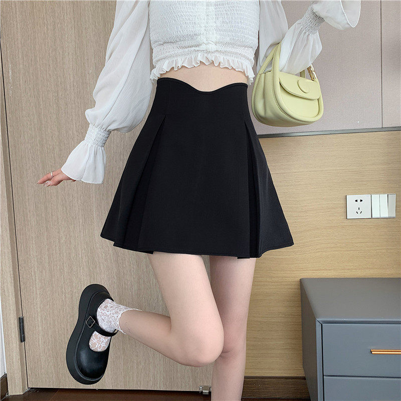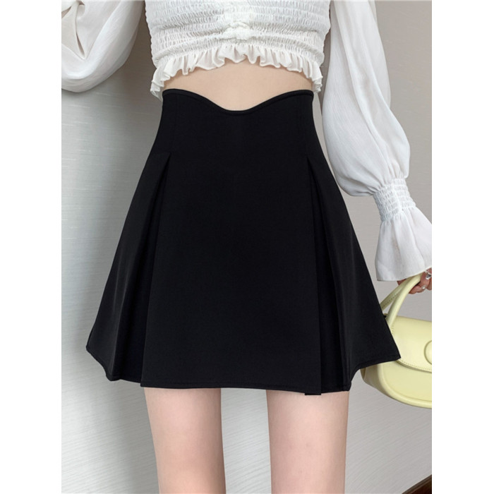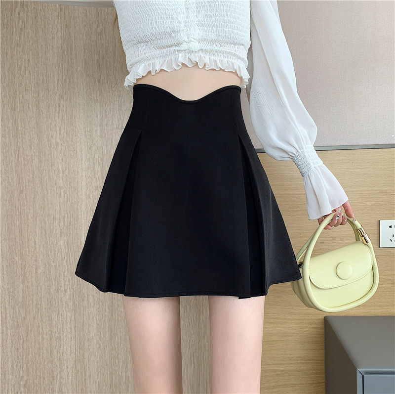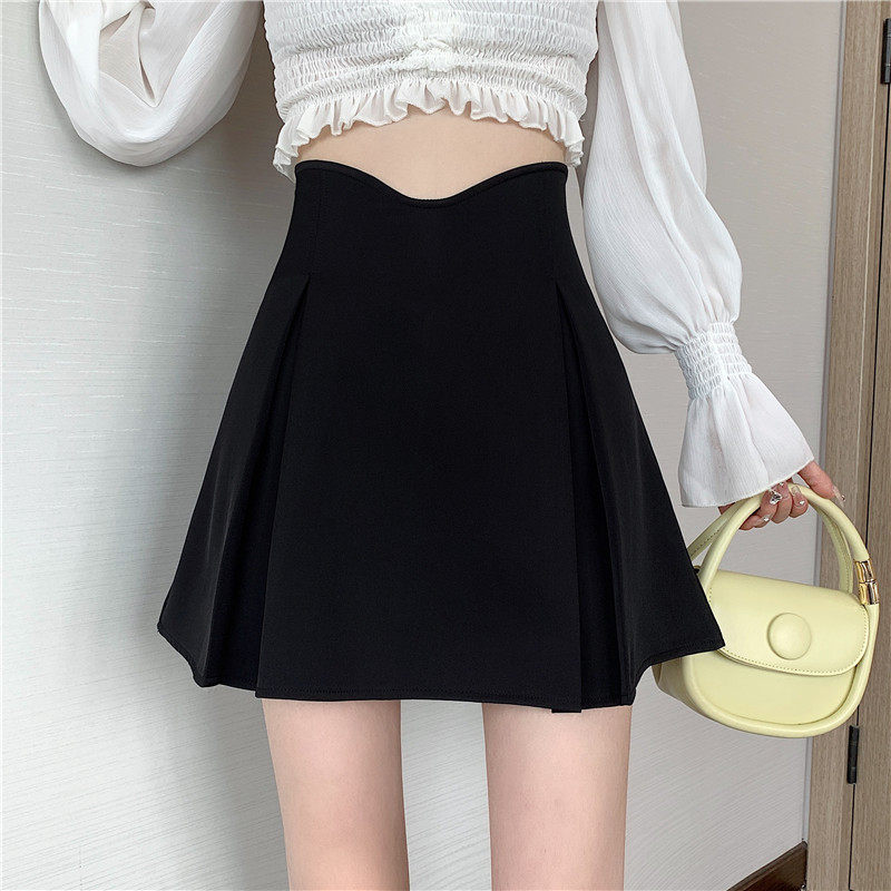 大碼女裝2025年秋季高腰黑色魚骨半身裙胖mm遮胯顯瘦A字百褶短裙