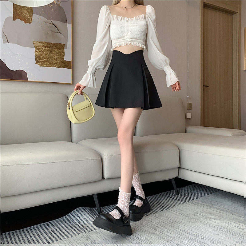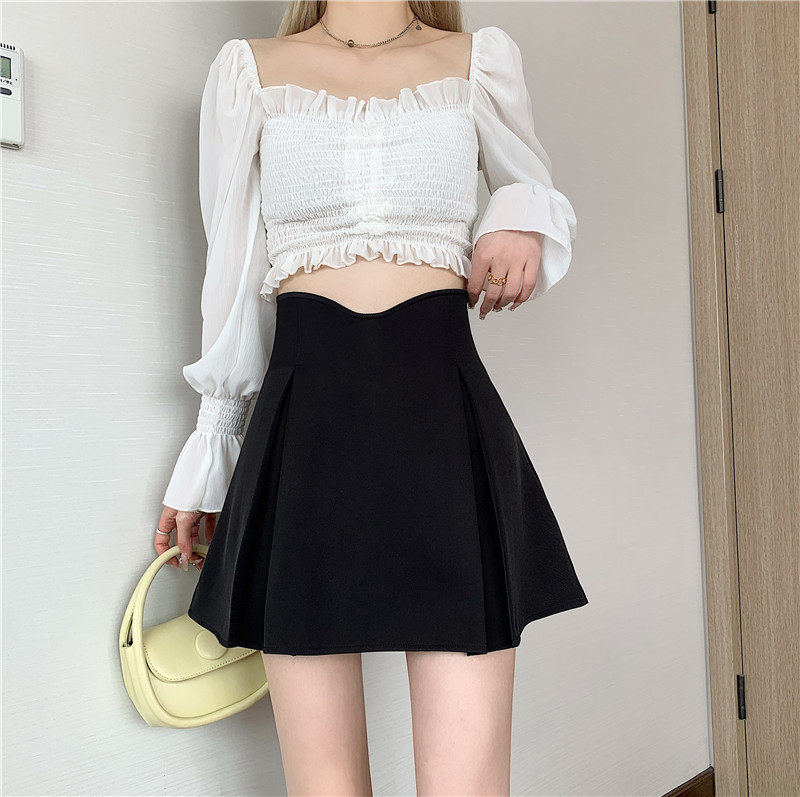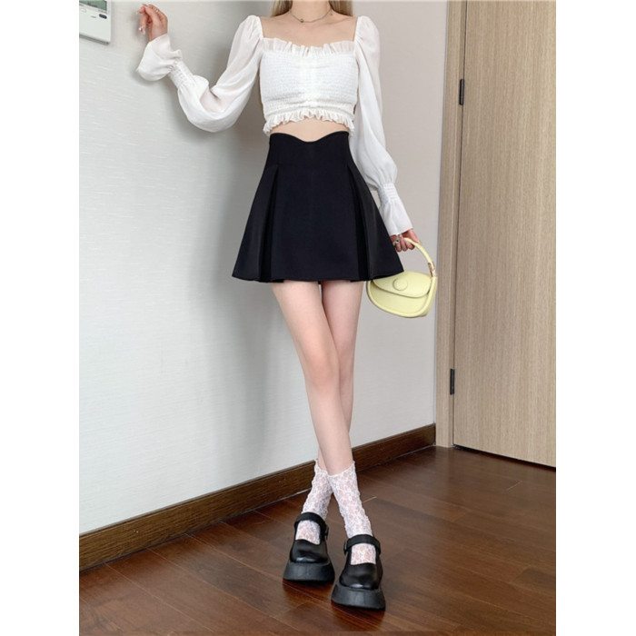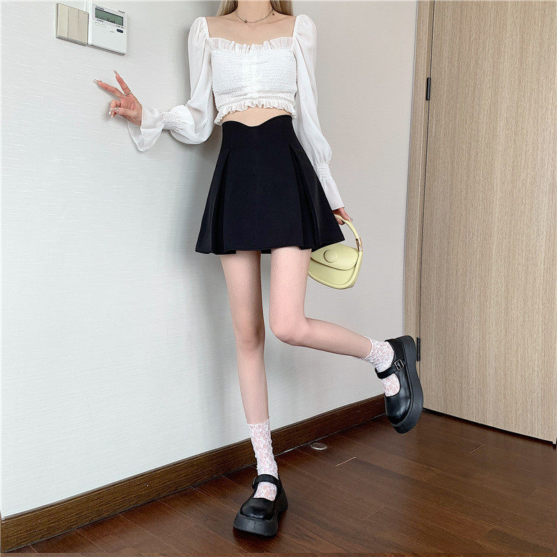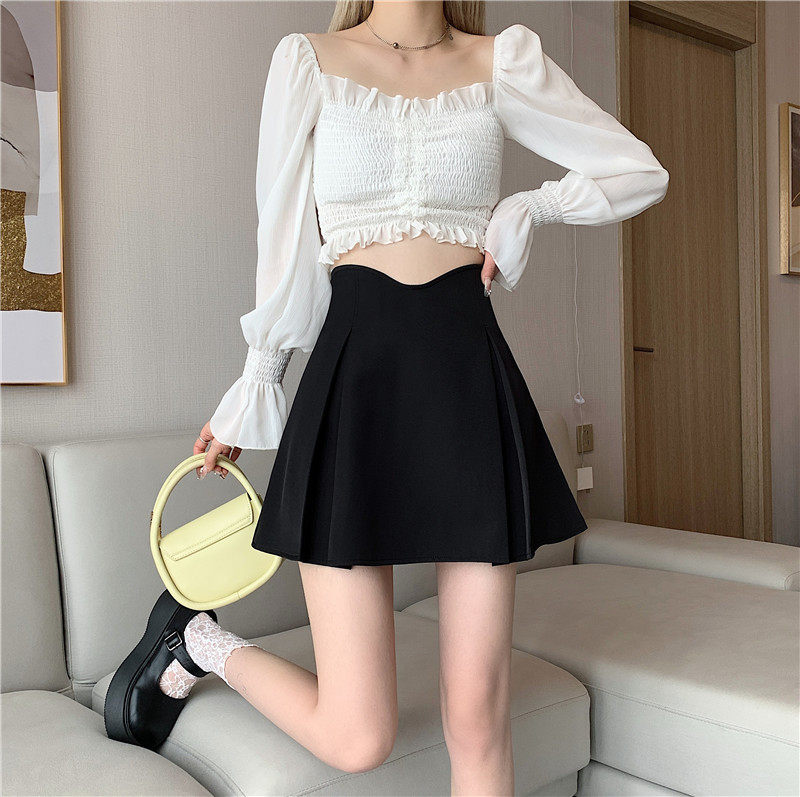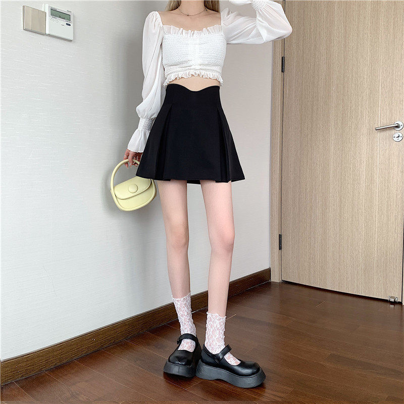 大碼女裝2025年秋季高腰黑色魚骨半身裙胖mm遮胯顯瘦A字百褶短裙