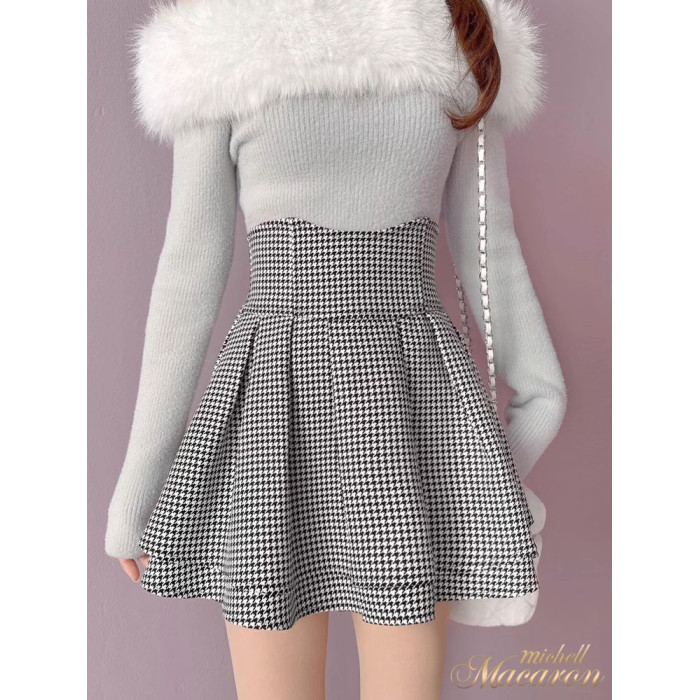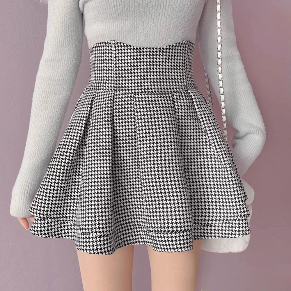 秋冬日系原宿風馬卡龍甜妹毛呢半身裙收腰顯瘦顯腿長蓬蓬A字短裙