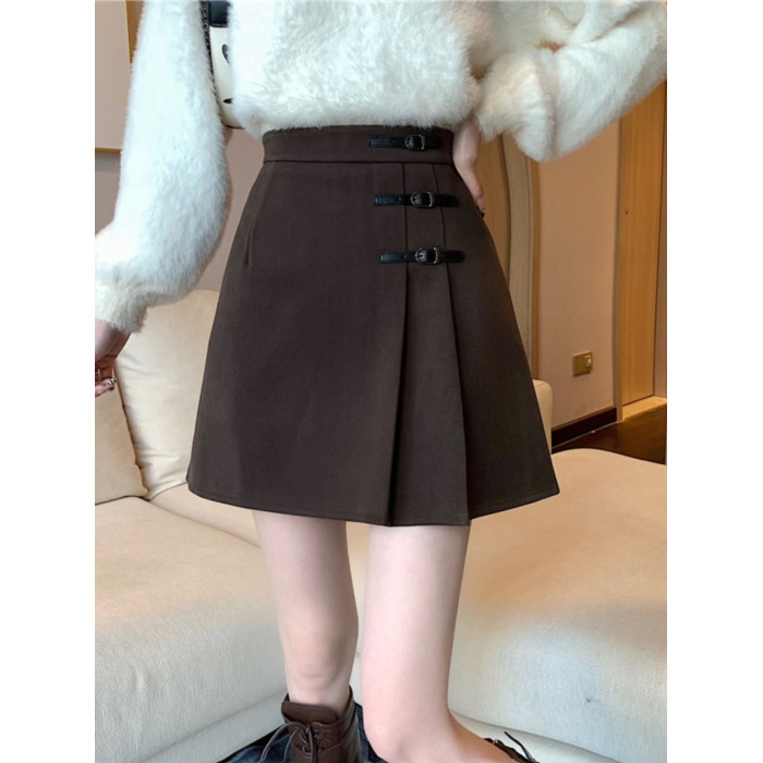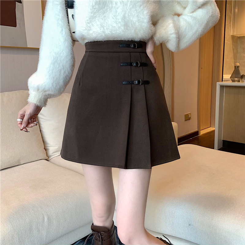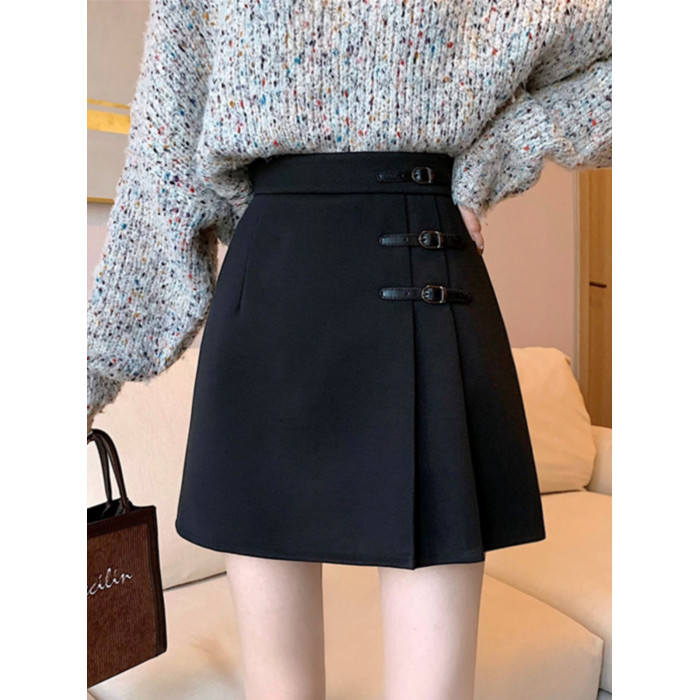 黑色毛呢半身裙女秋冬新款高腰百褶裙胖mm大碼顯瘦a字包臀短裙子