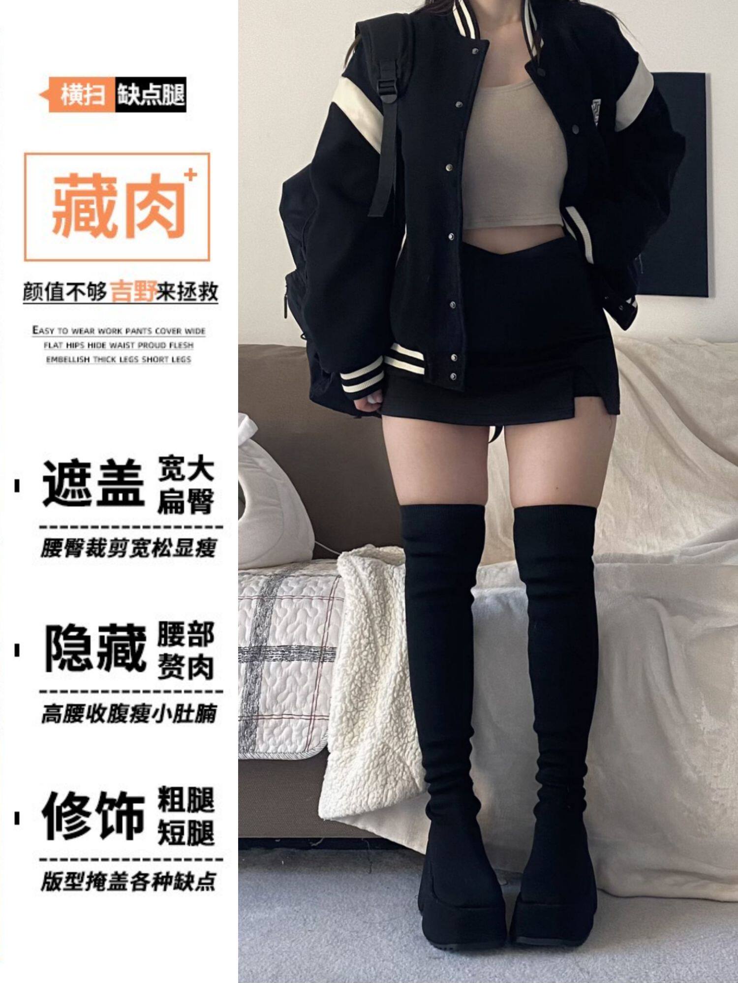 大碼胖mm開叉黑色半身裙女春秋高腰a字短裙褲梨形身材包臀一步裙