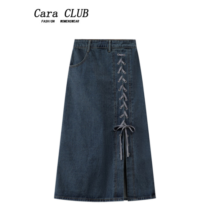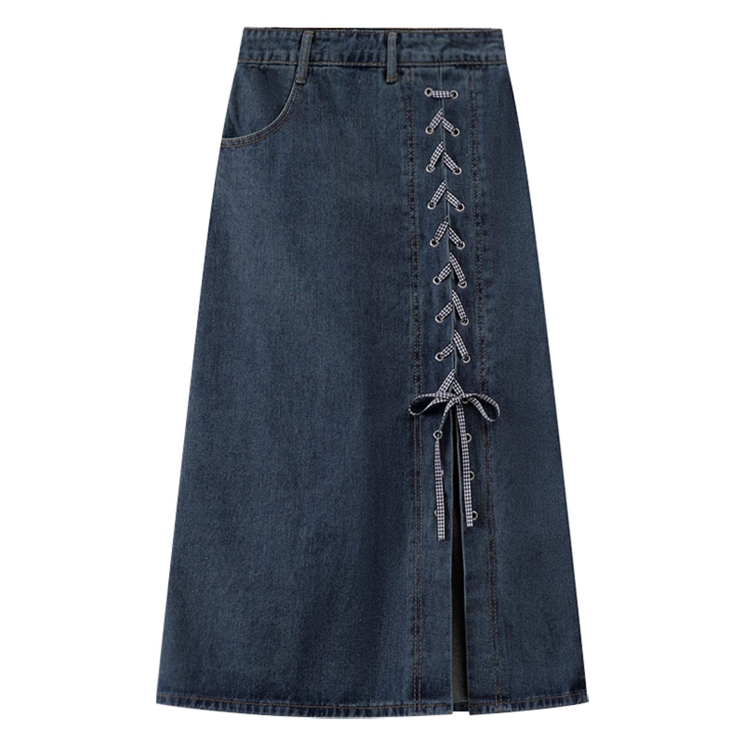 Cara CLUB大碼高腰顯瘦牛仔半身裙女秋季胖mm梨形身材中長款A字裙