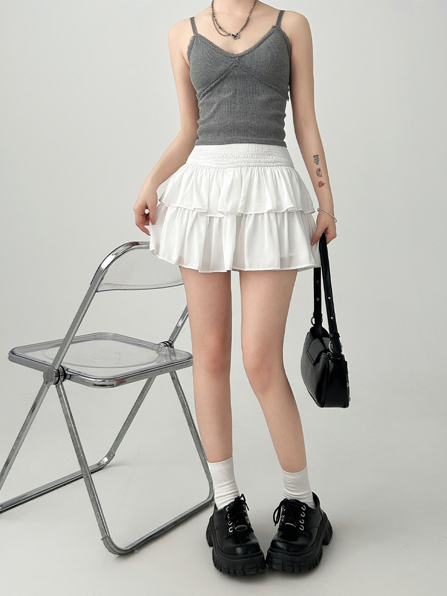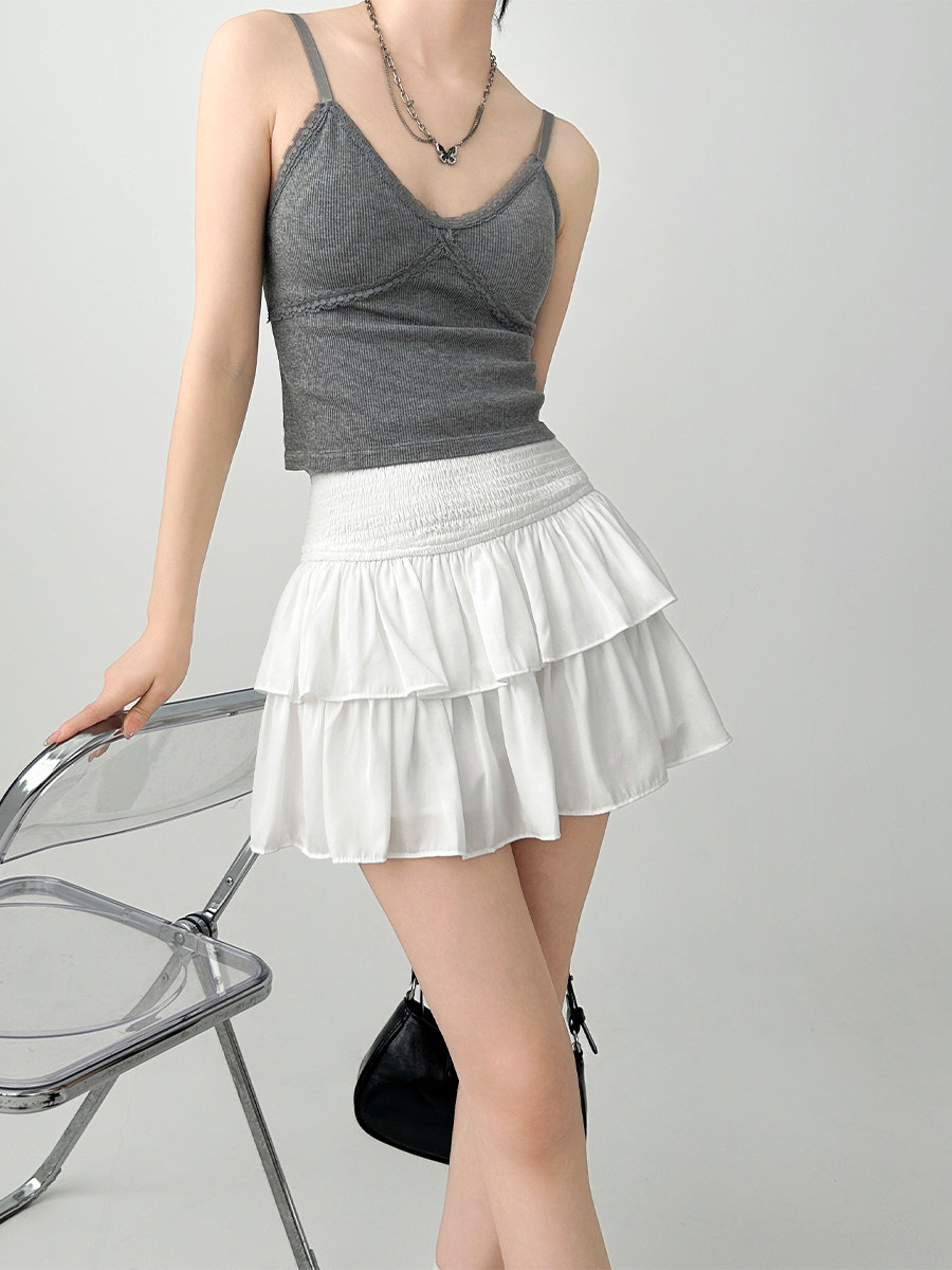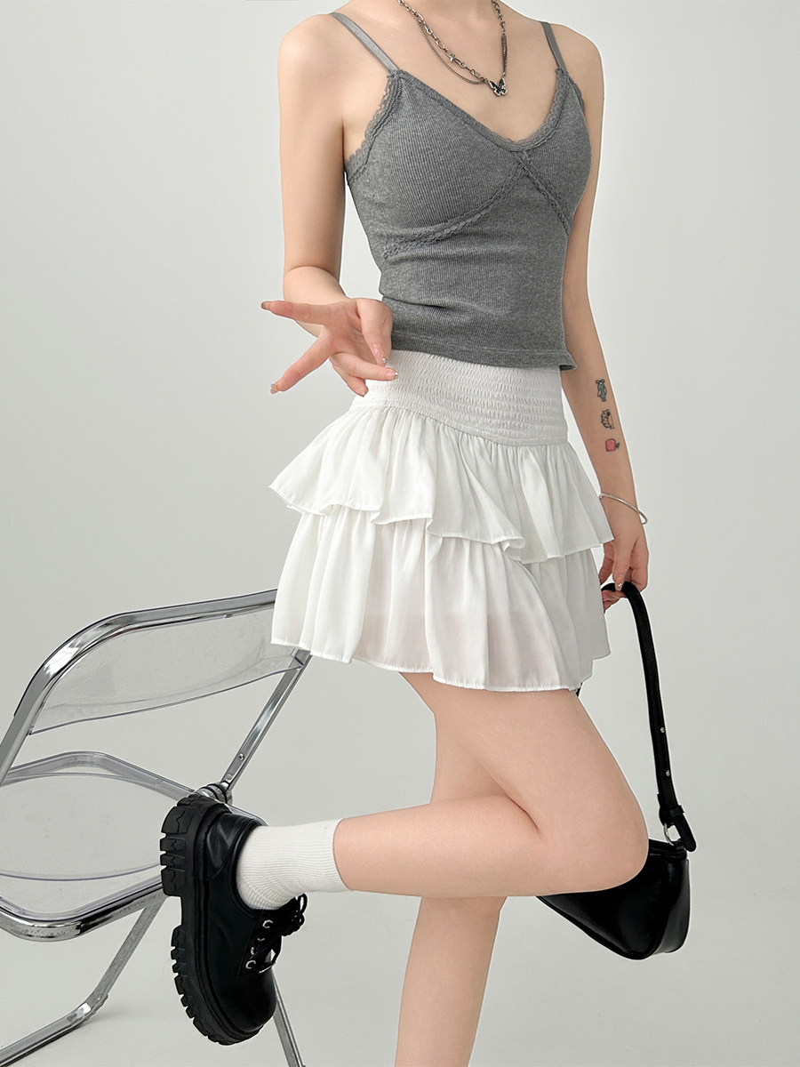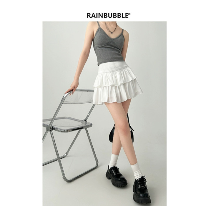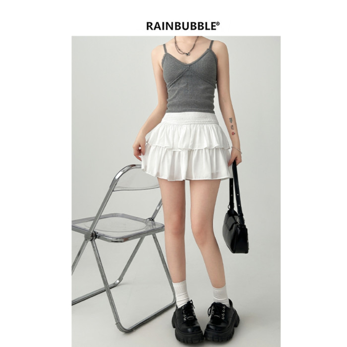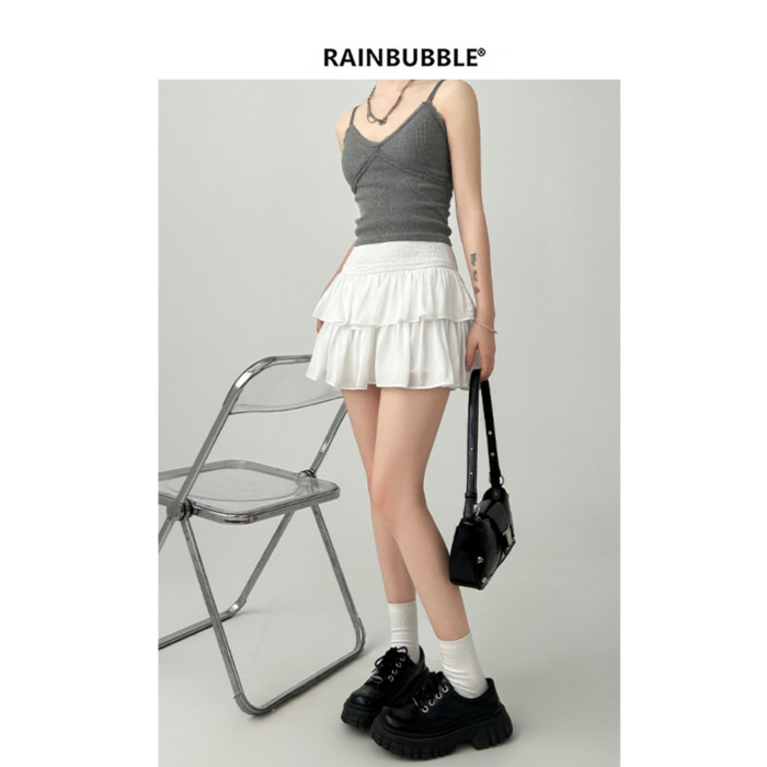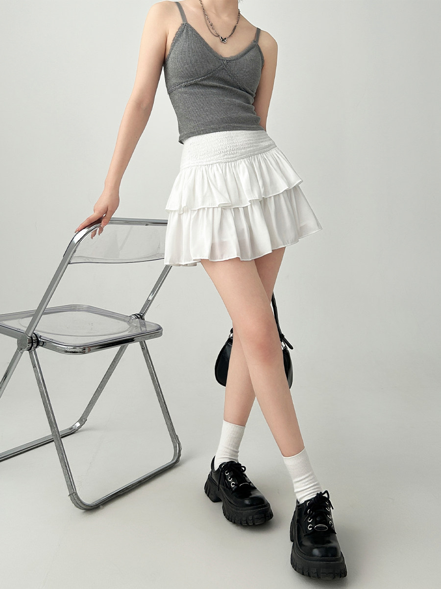 雨氣泡~小個子蓬蓬蛋糕半身裙女春夏季短款小白裙a字短裙白色裙子