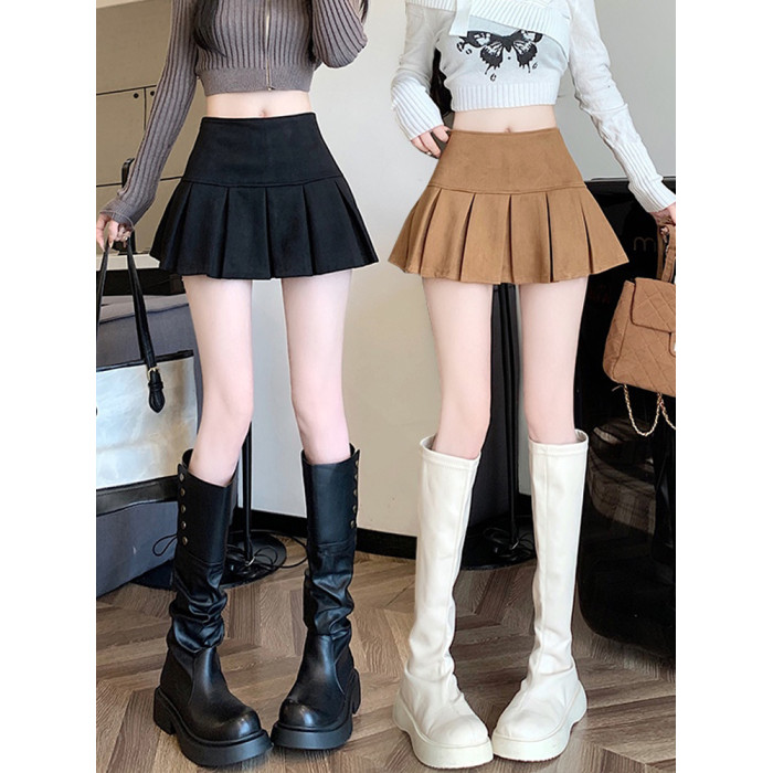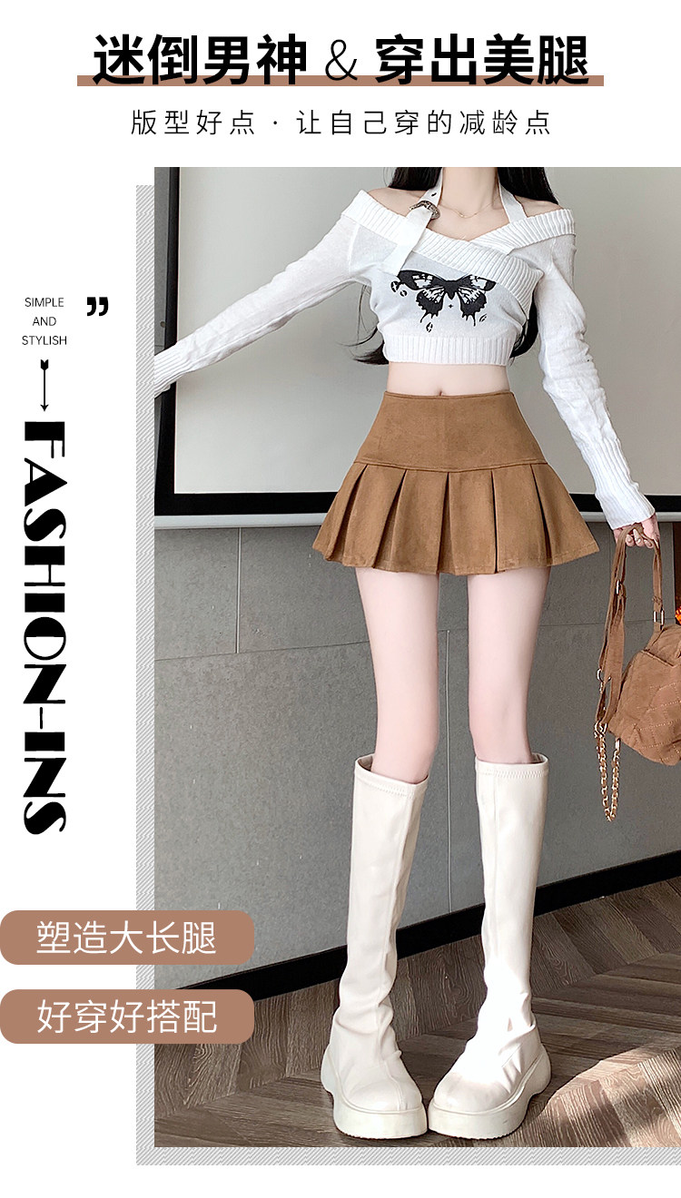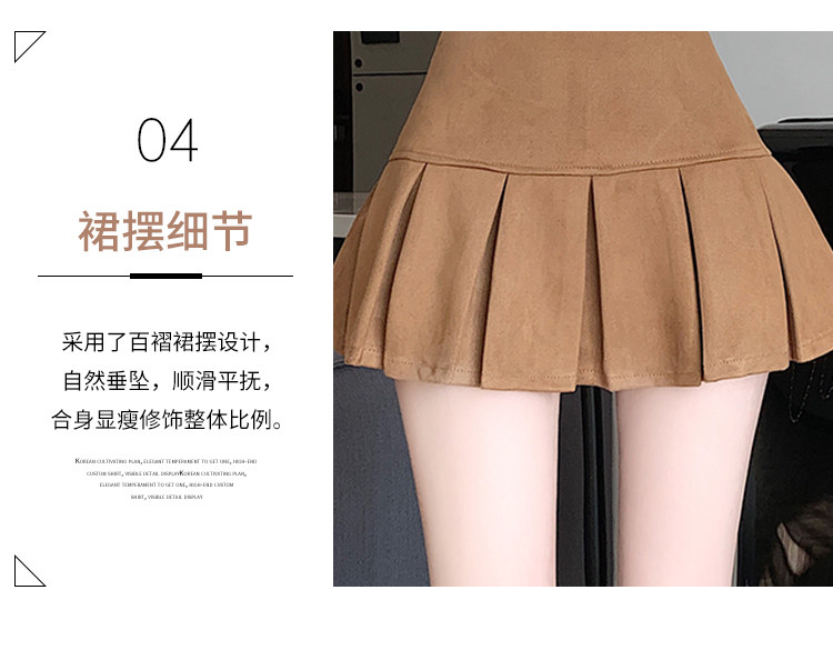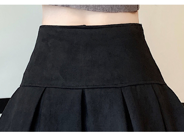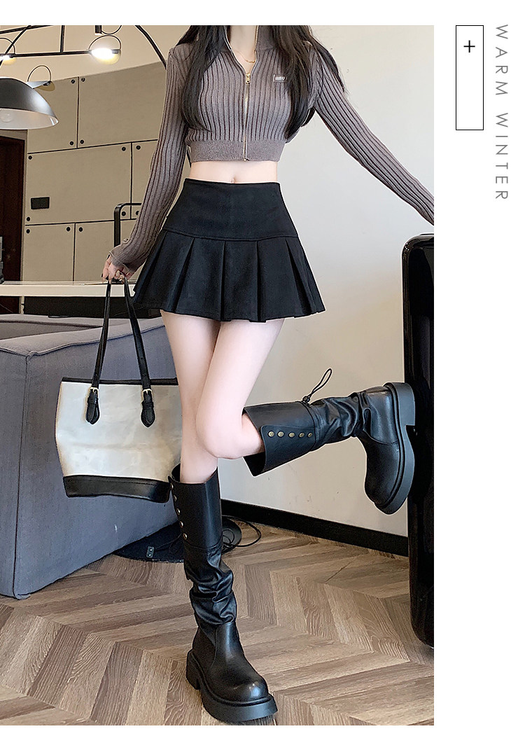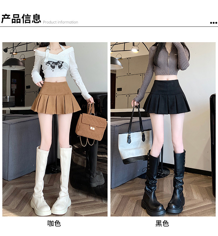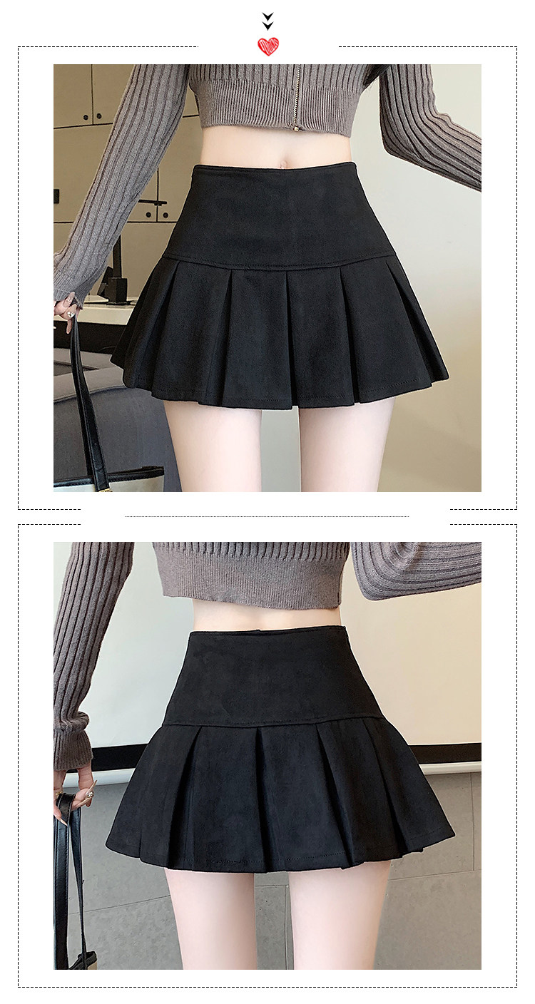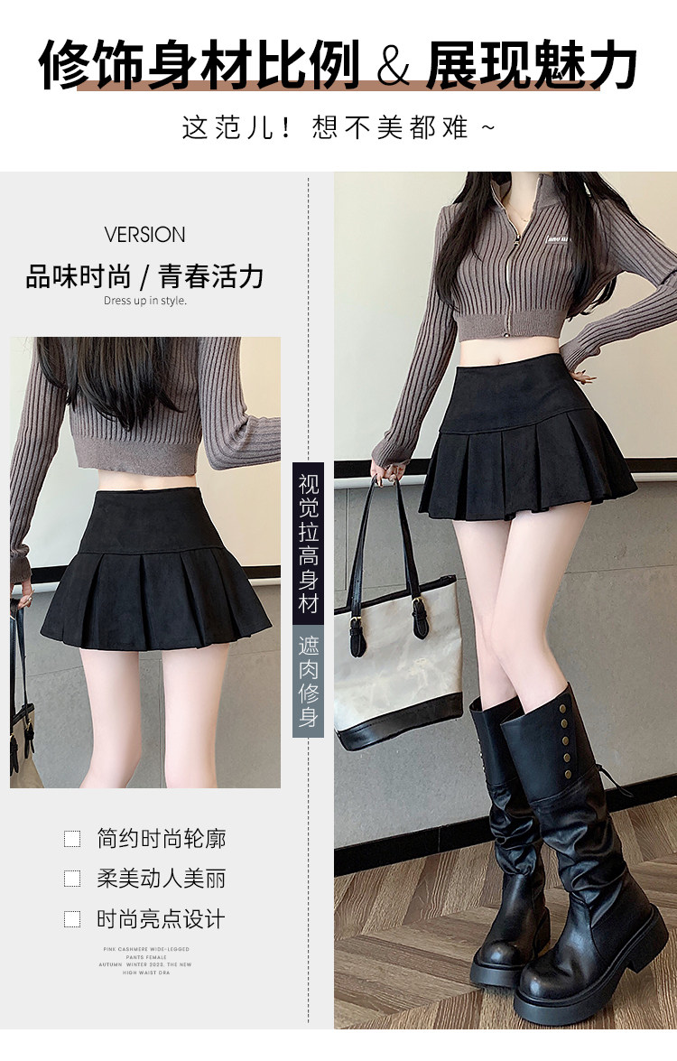 黑色鹿皮絨百褶半身裙女秋冬高腰顯瘦小皮裙休閒防走光a字短裙褲