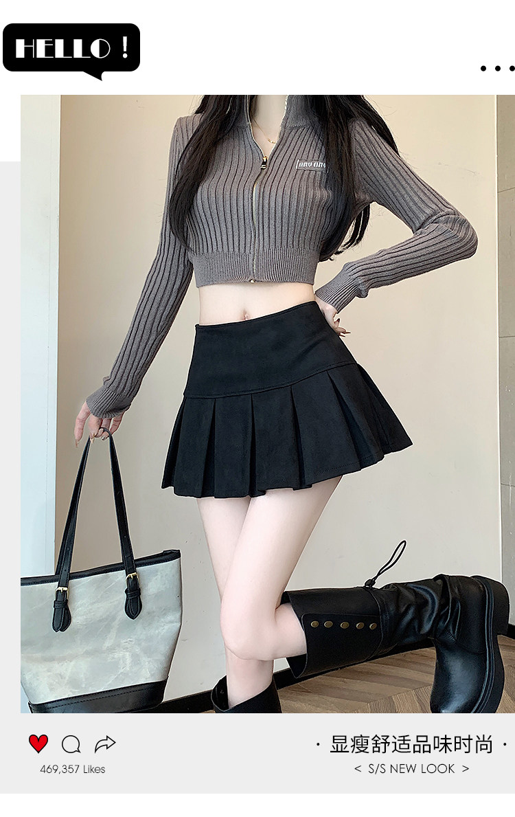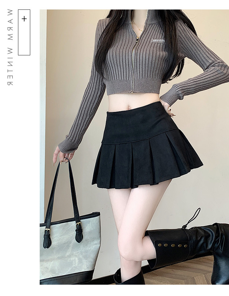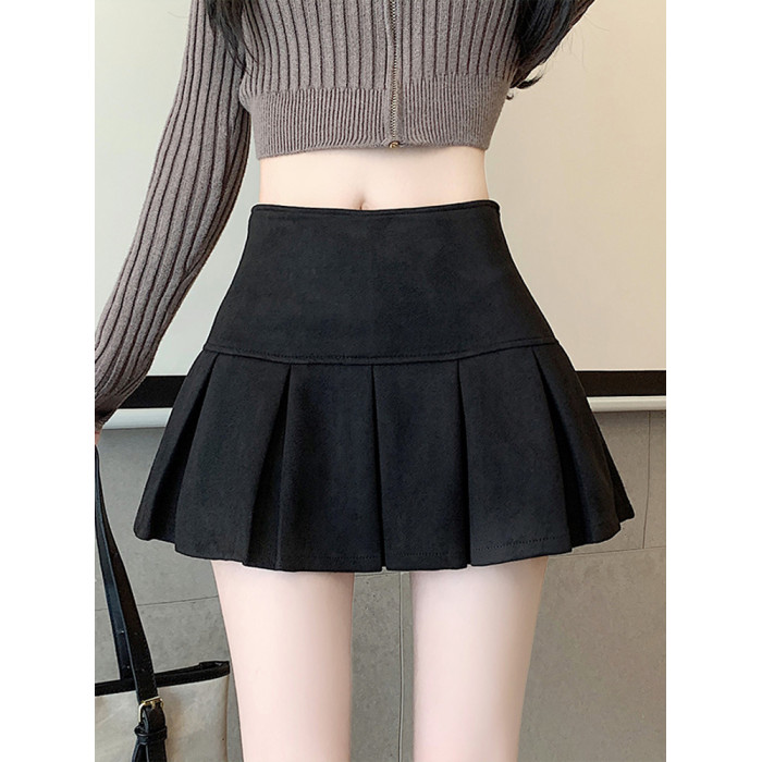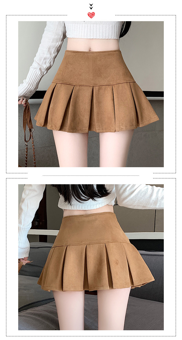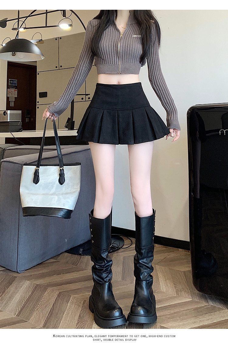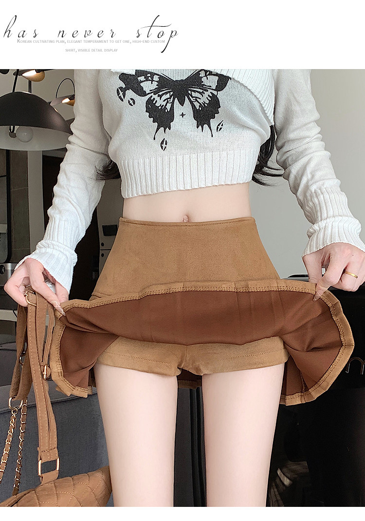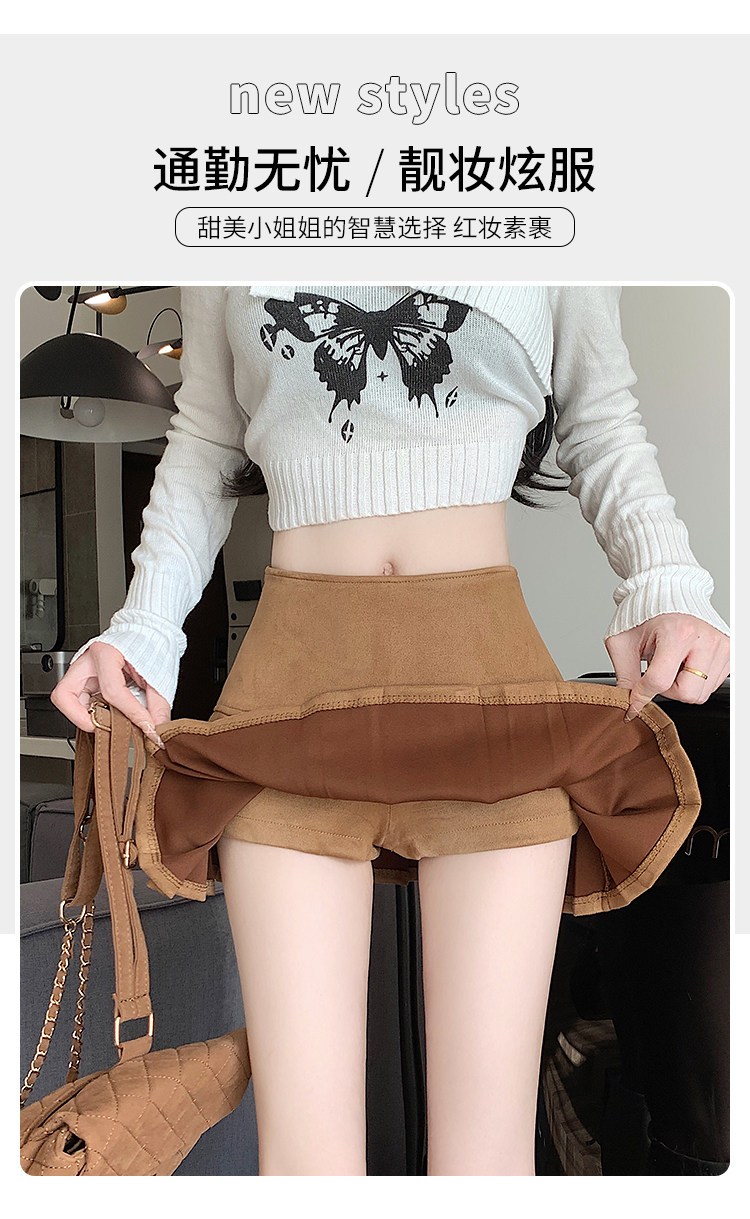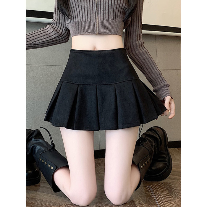 黑色鹿皮絨百褶半身裙女秋冬高腰顯瘦小皮裙休閒防走光a字短裙褲