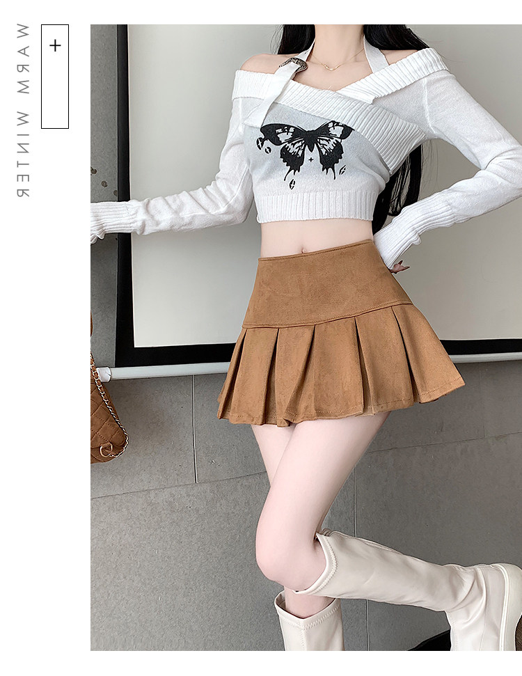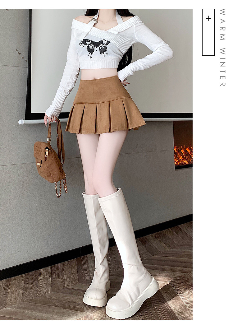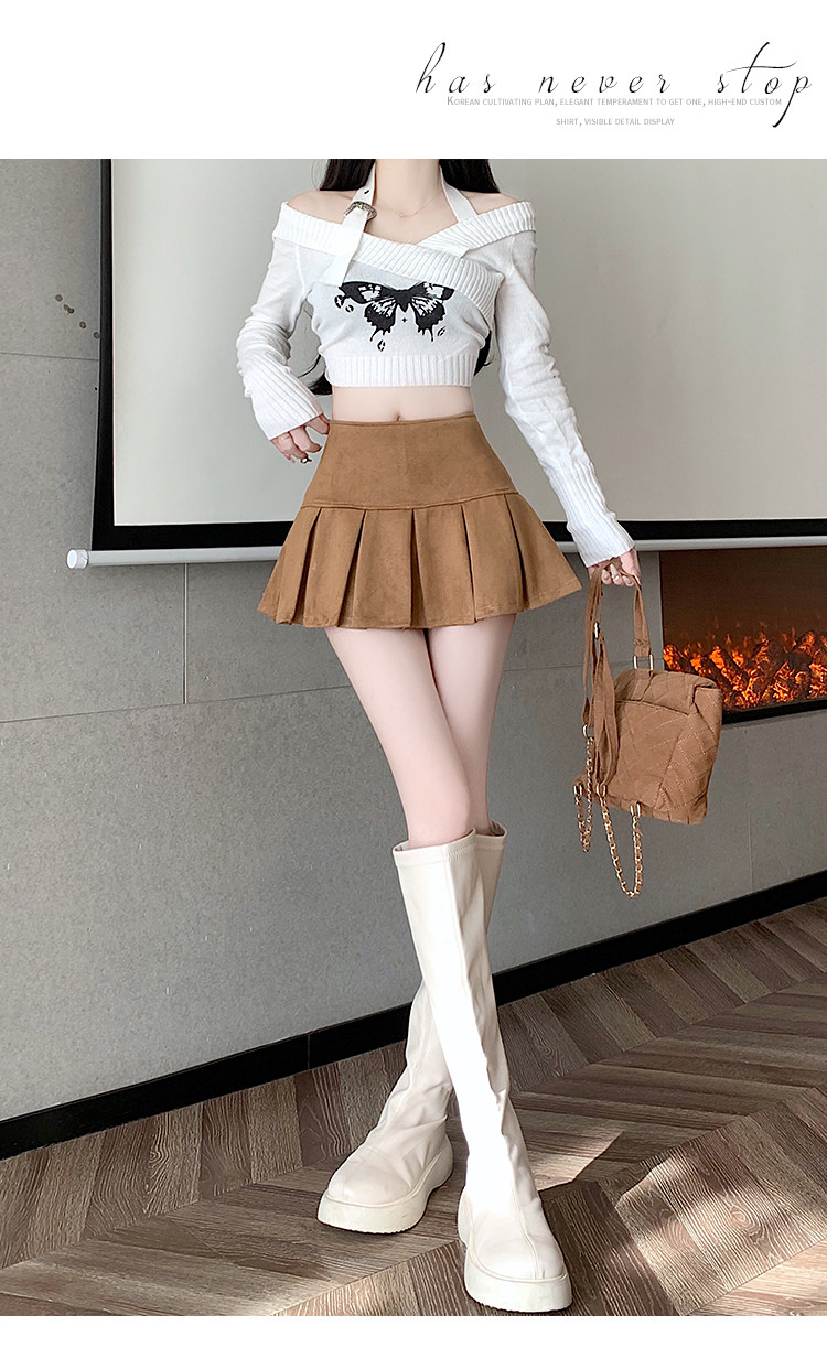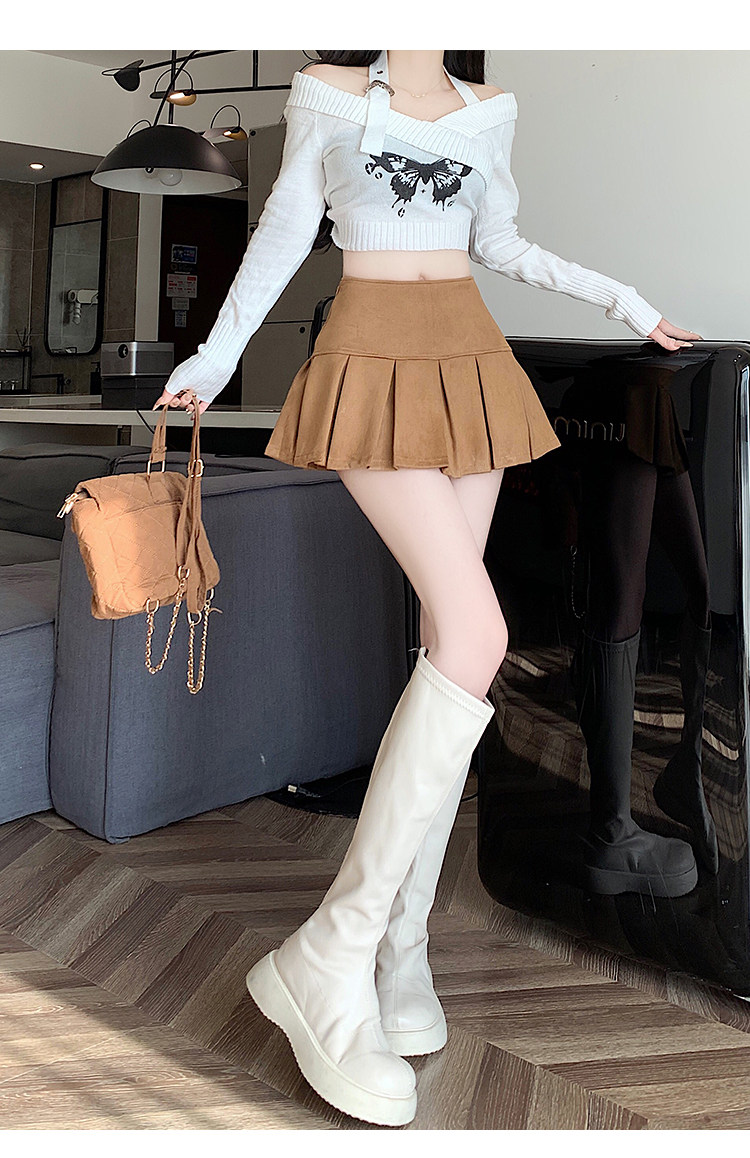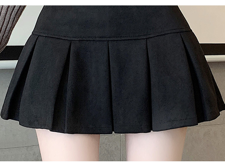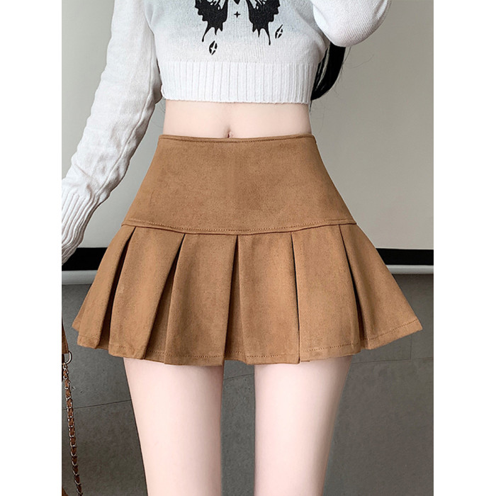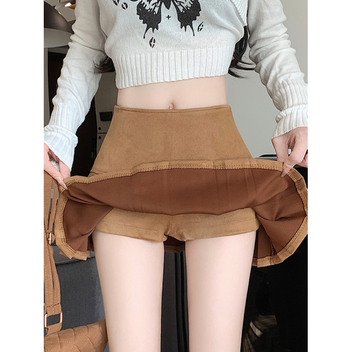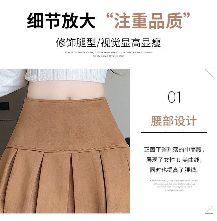 黑色鹿皮絨百褶半身裙女秋冬高腰顯瘦小皮裙休閒防走光a字短裙褲