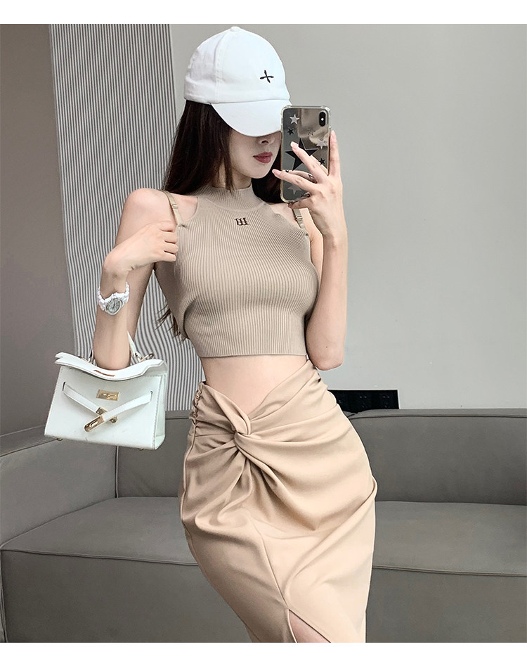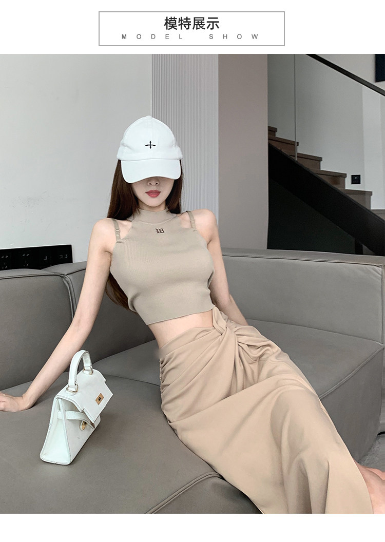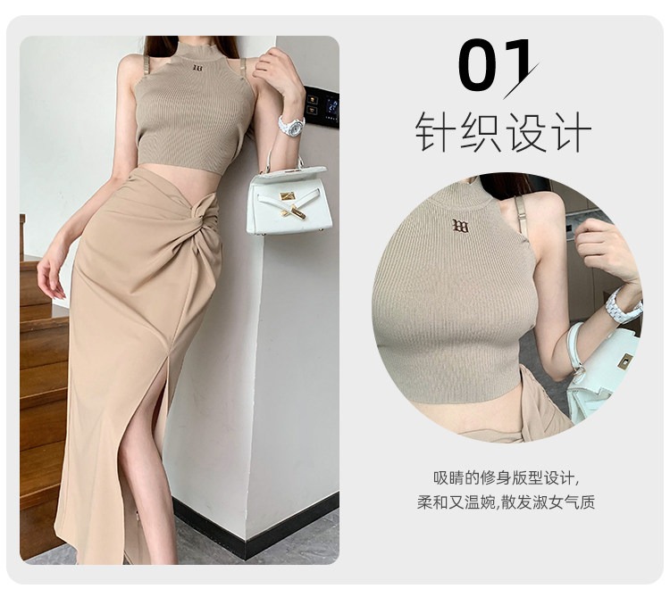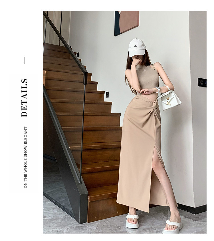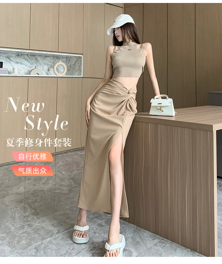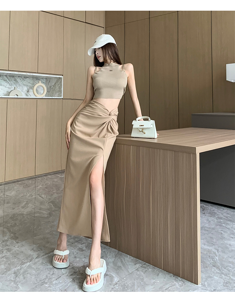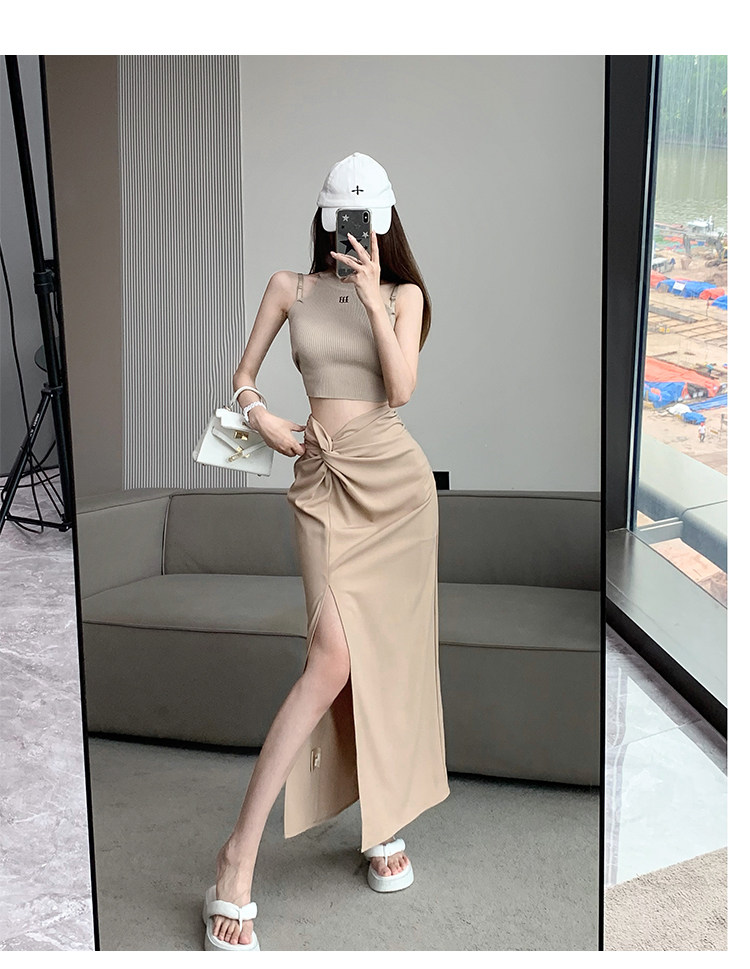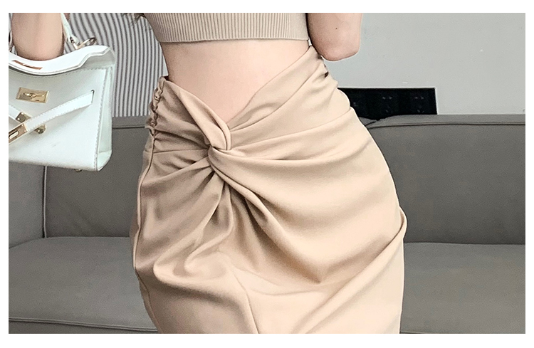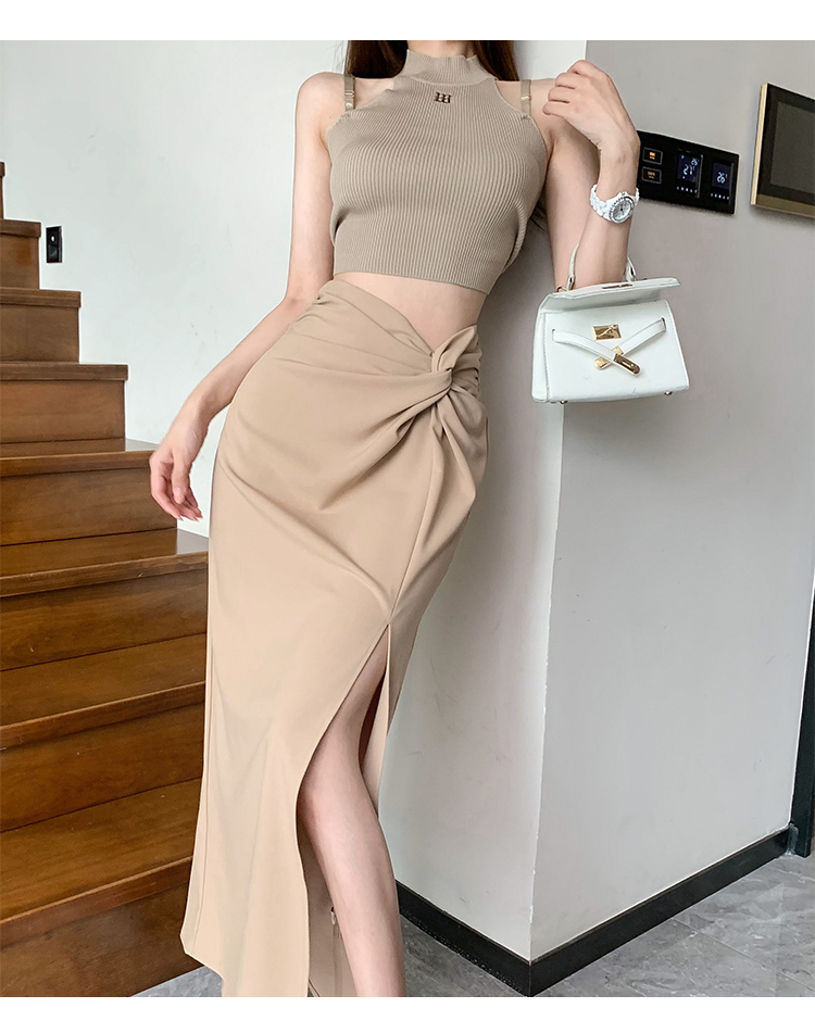 黑色開叉西裝半身裙子女夏季薄款設計感抽褶高腰中長款直筒包臀裙