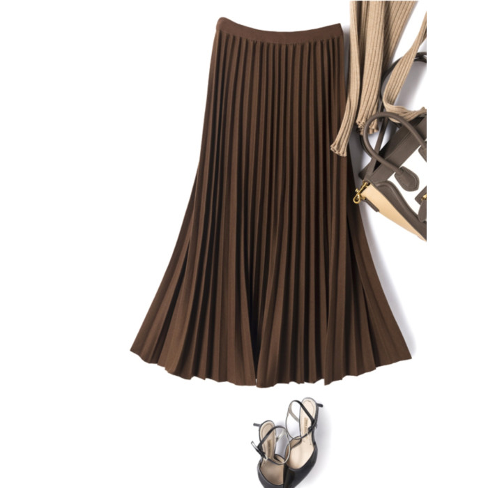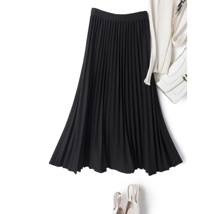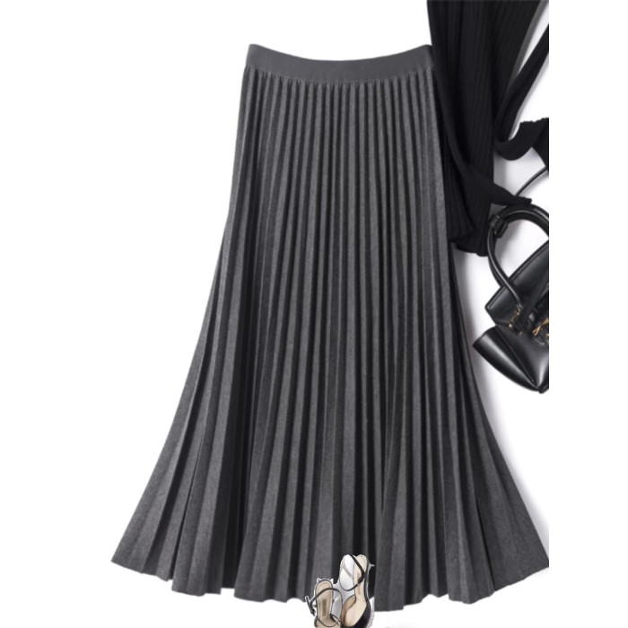 復古高腰顯瘦毛呢百褶裙2025秋冬款休閒百搭氣質a字半身裙中長裙