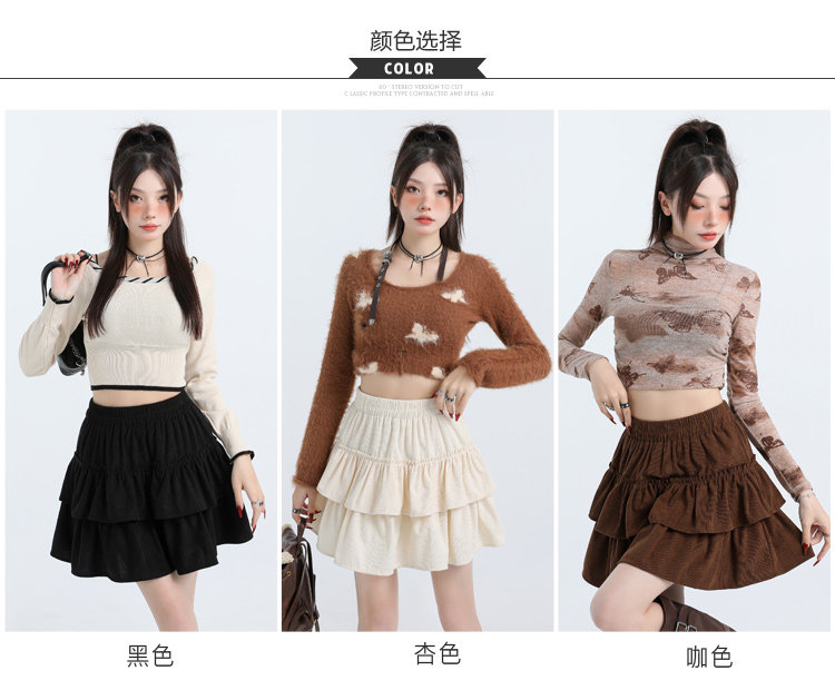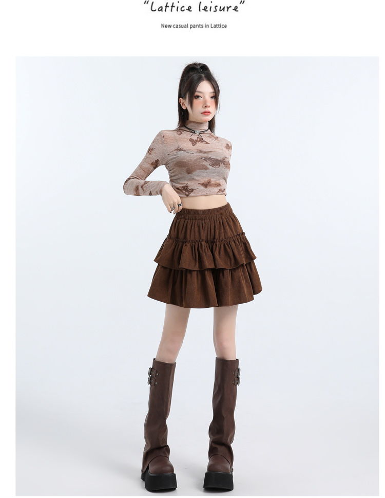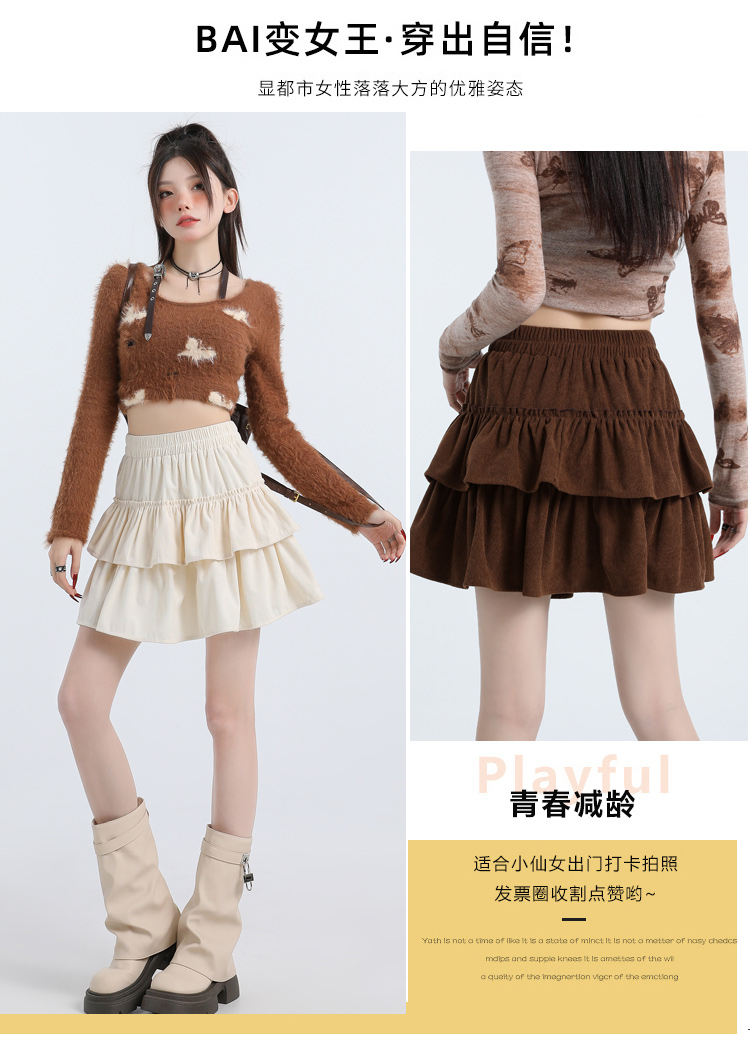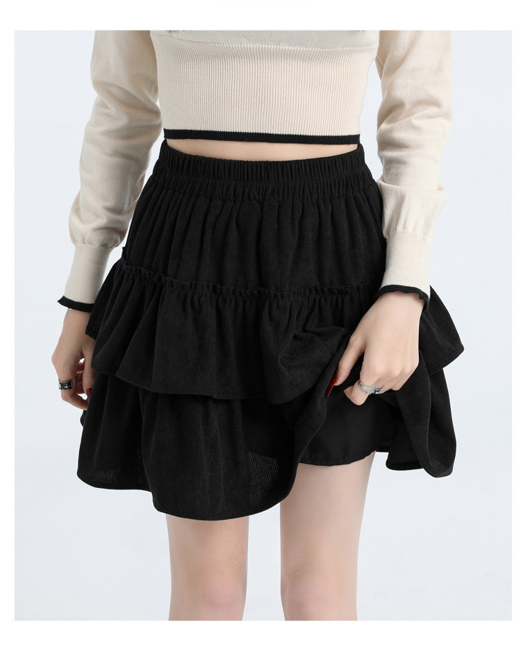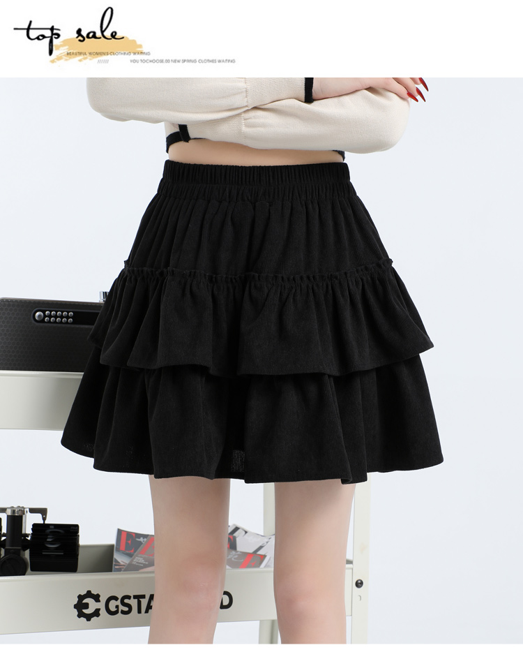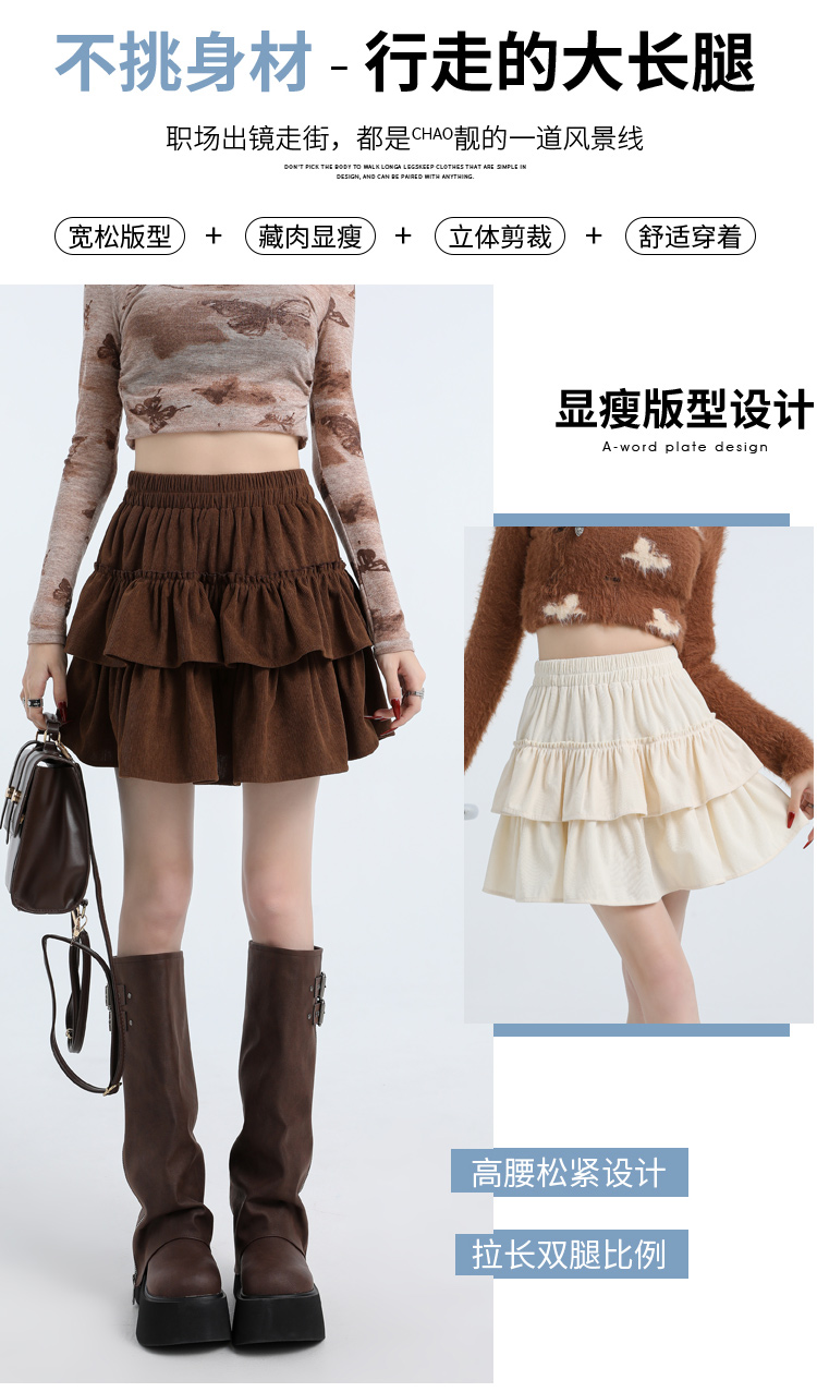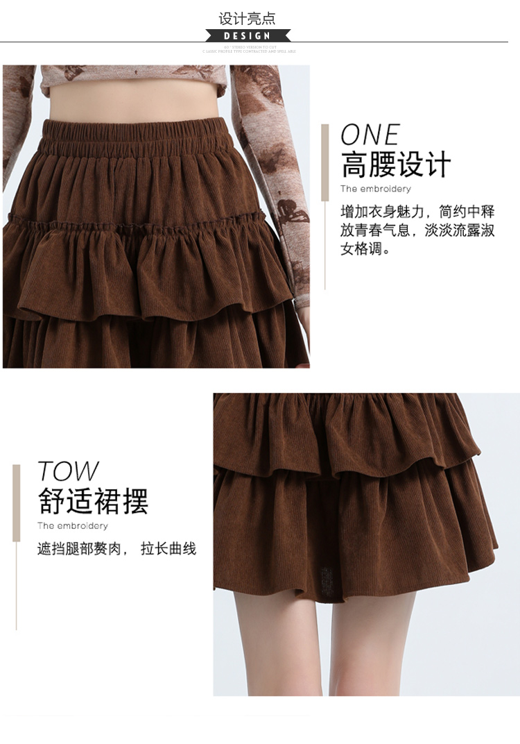 咖色燈芯絨半身裙女秋冬新款小個子美拉德穿搭蛋糕裙高腰a字短裙