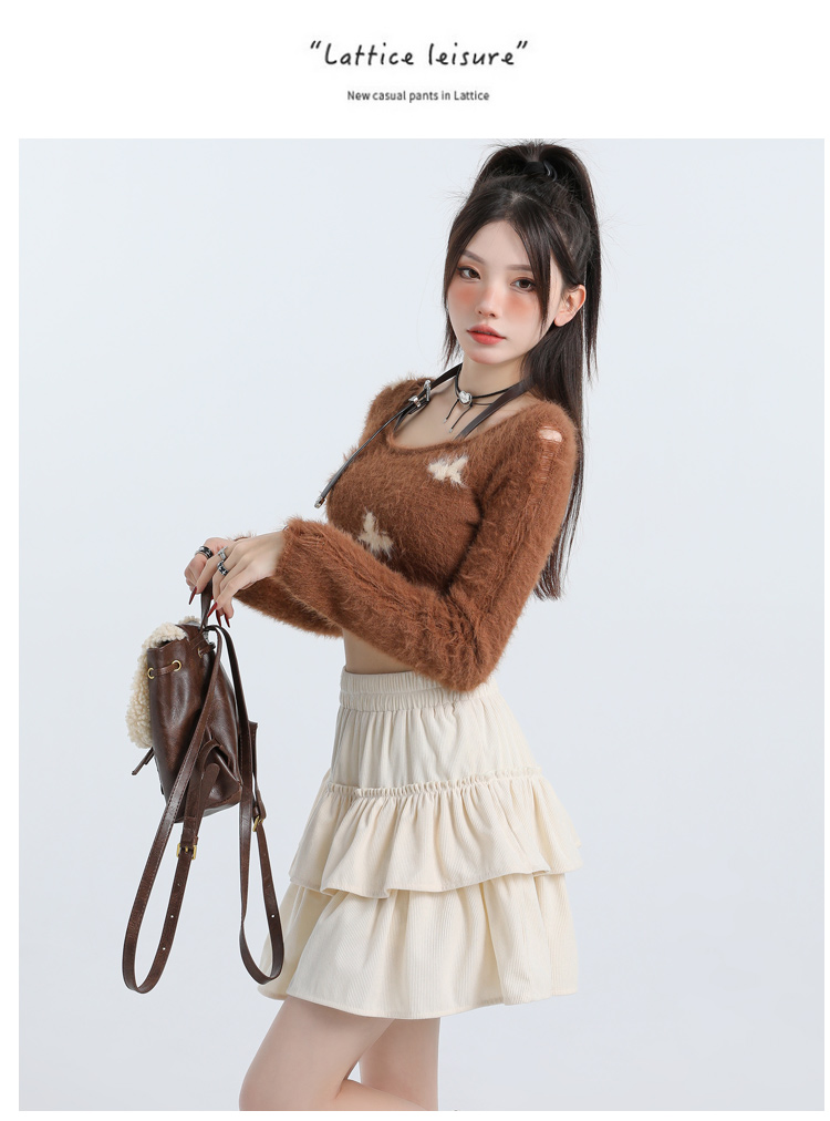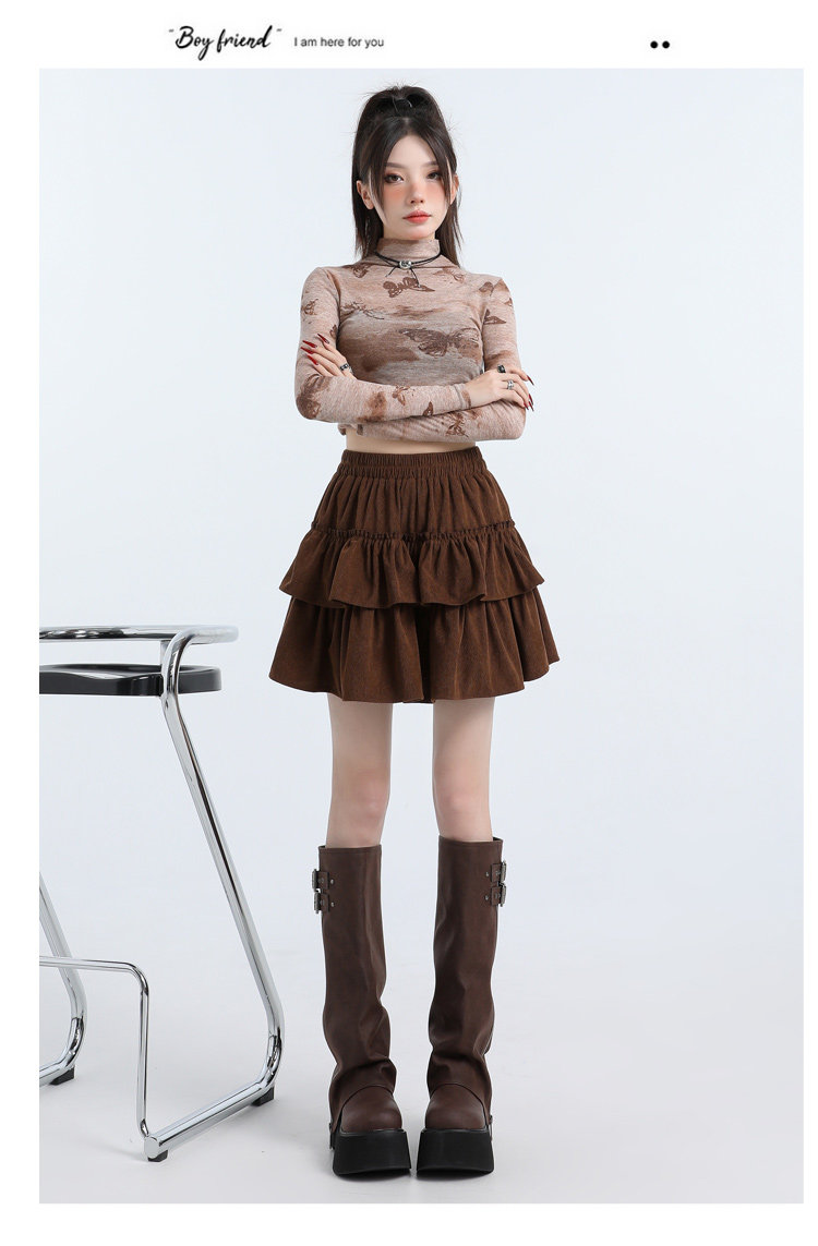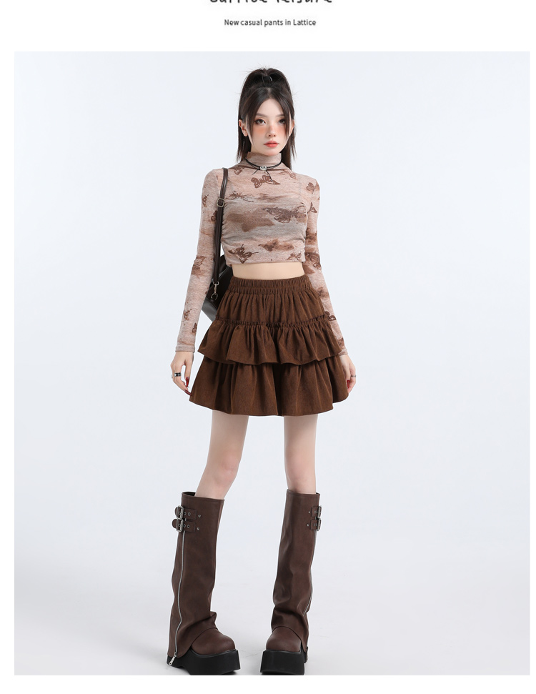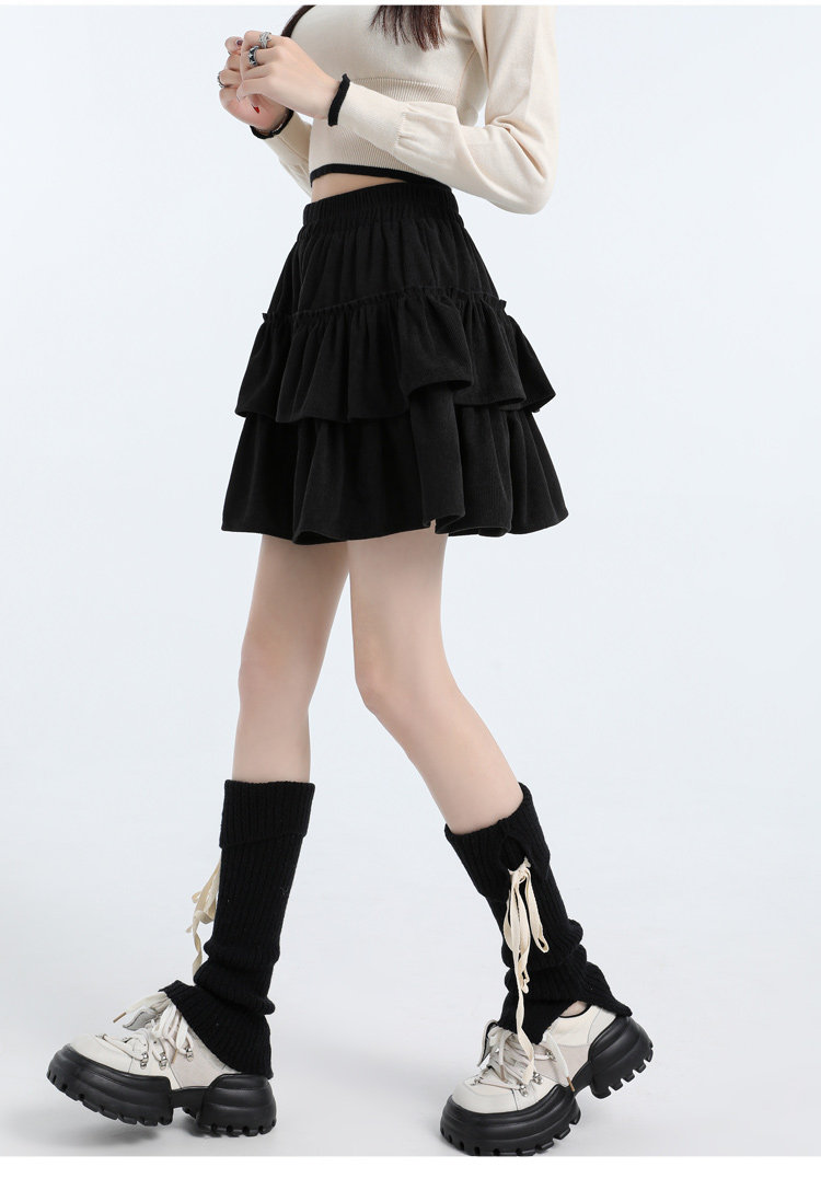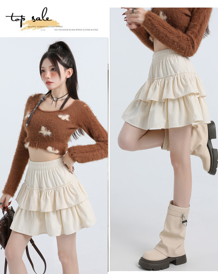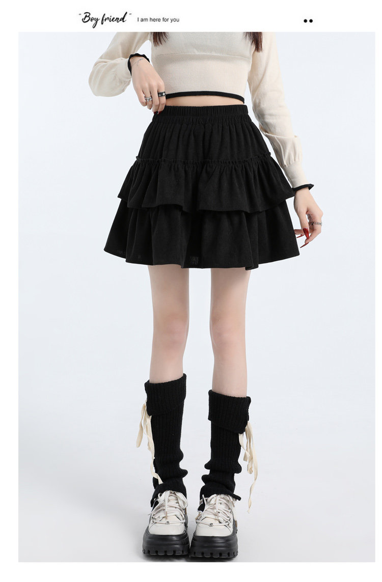 咖色燈芯絨半身裙女秋冬新款小個子美拉德穿搭蛋糕裙高腰a字短裙