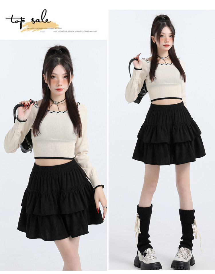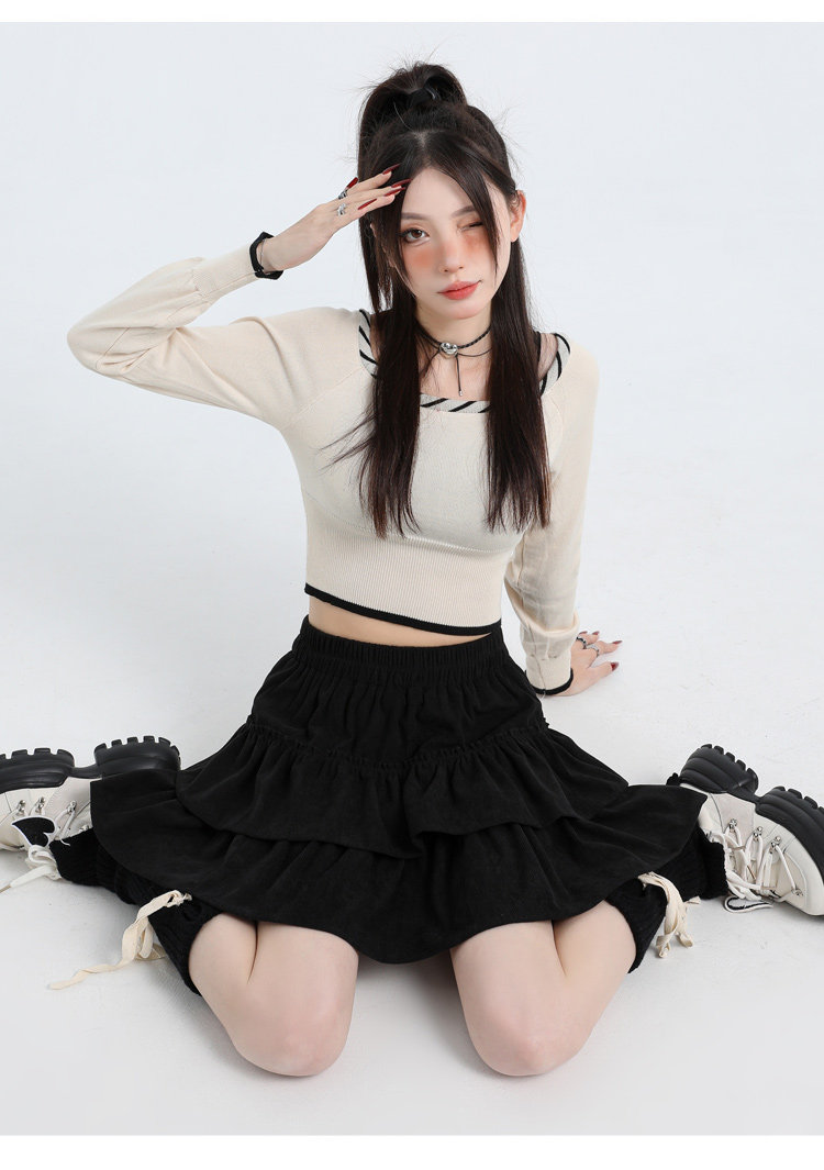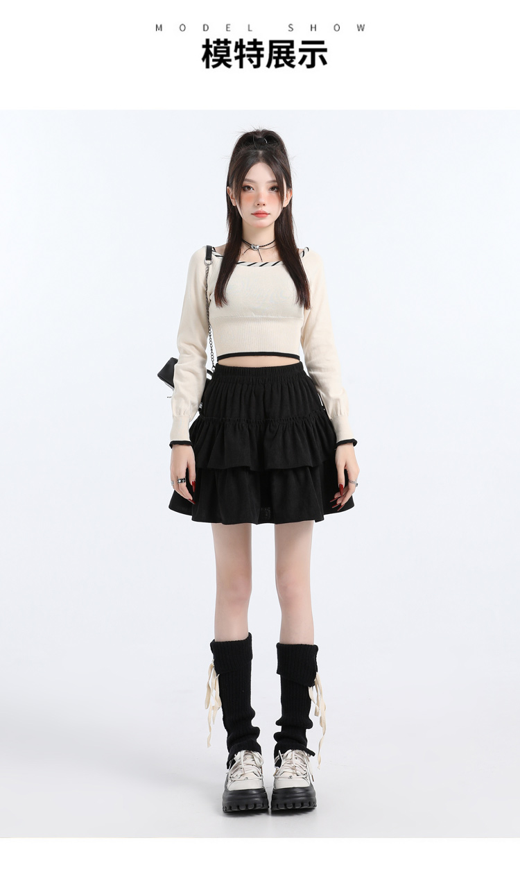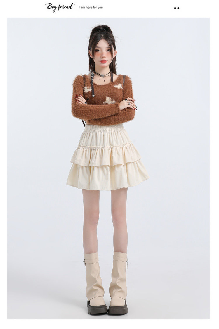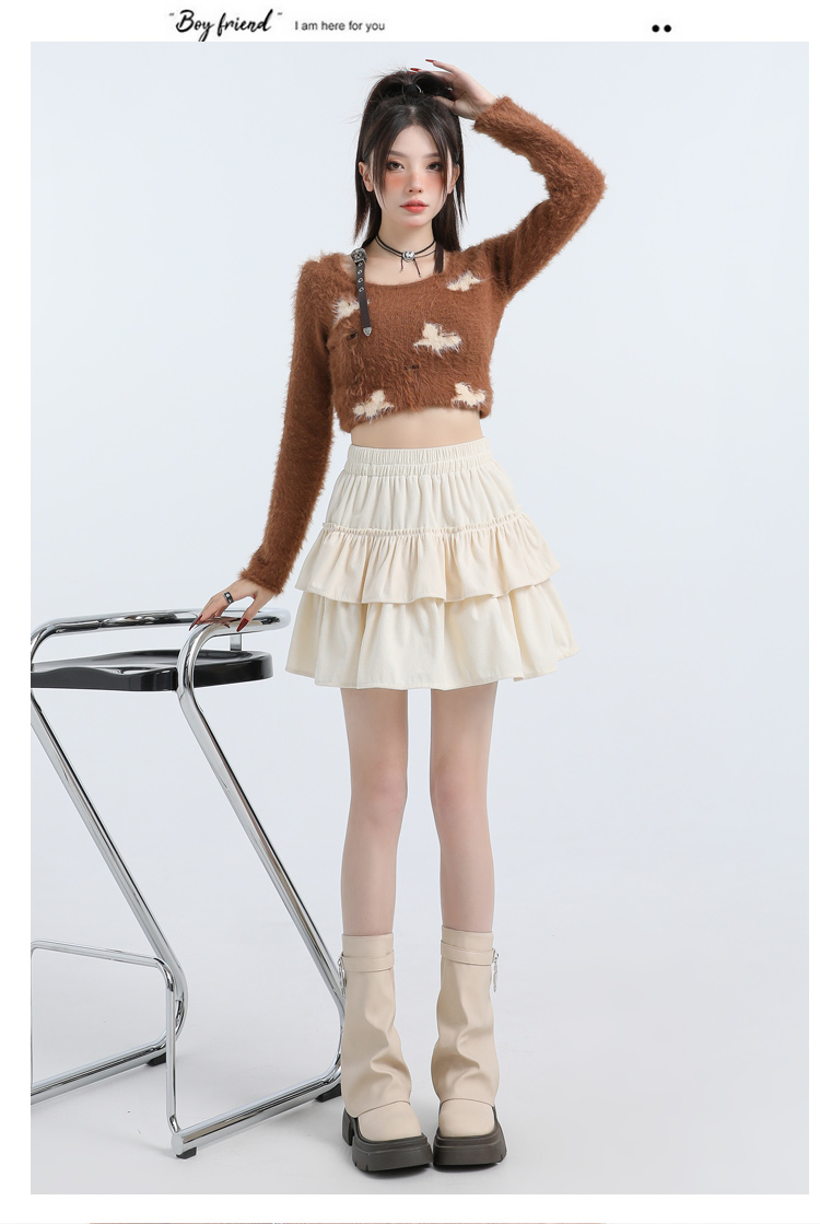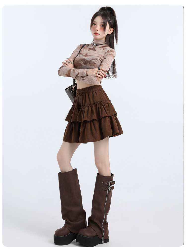 咖色燈芯絨半身裙女秋冬新款小個子美拉德穿搭蛋糕裙高腰a字短裙