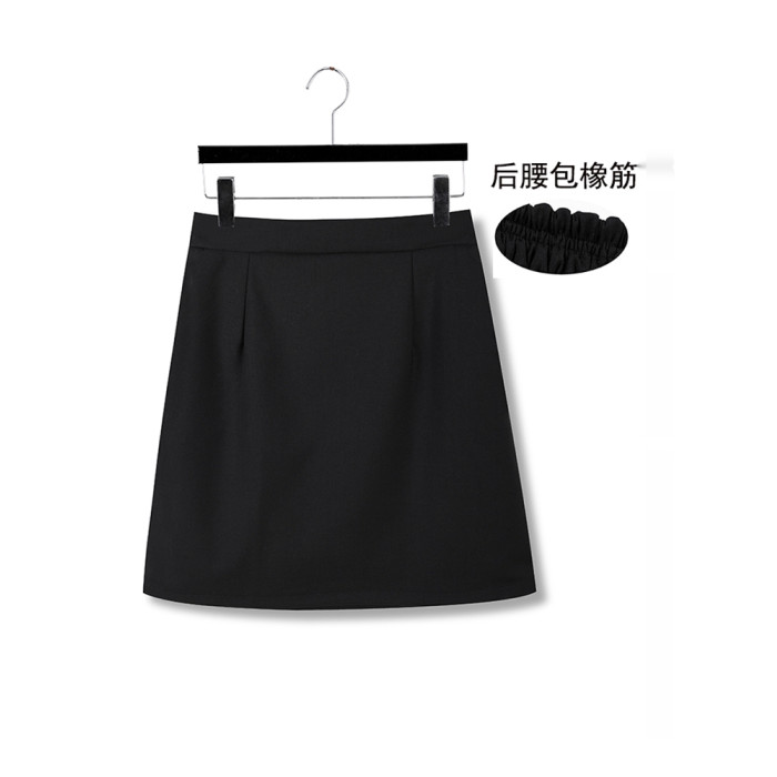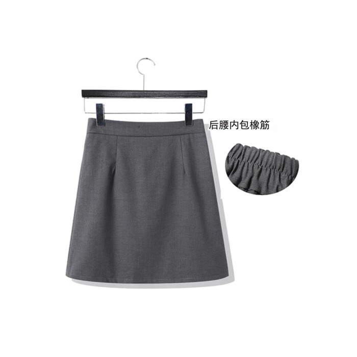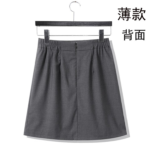 松緊腰a字裙夏天薄款大碼深灰色正裝半身裙橡筋西裝短裙夏季薄款