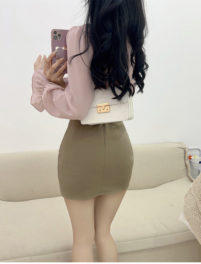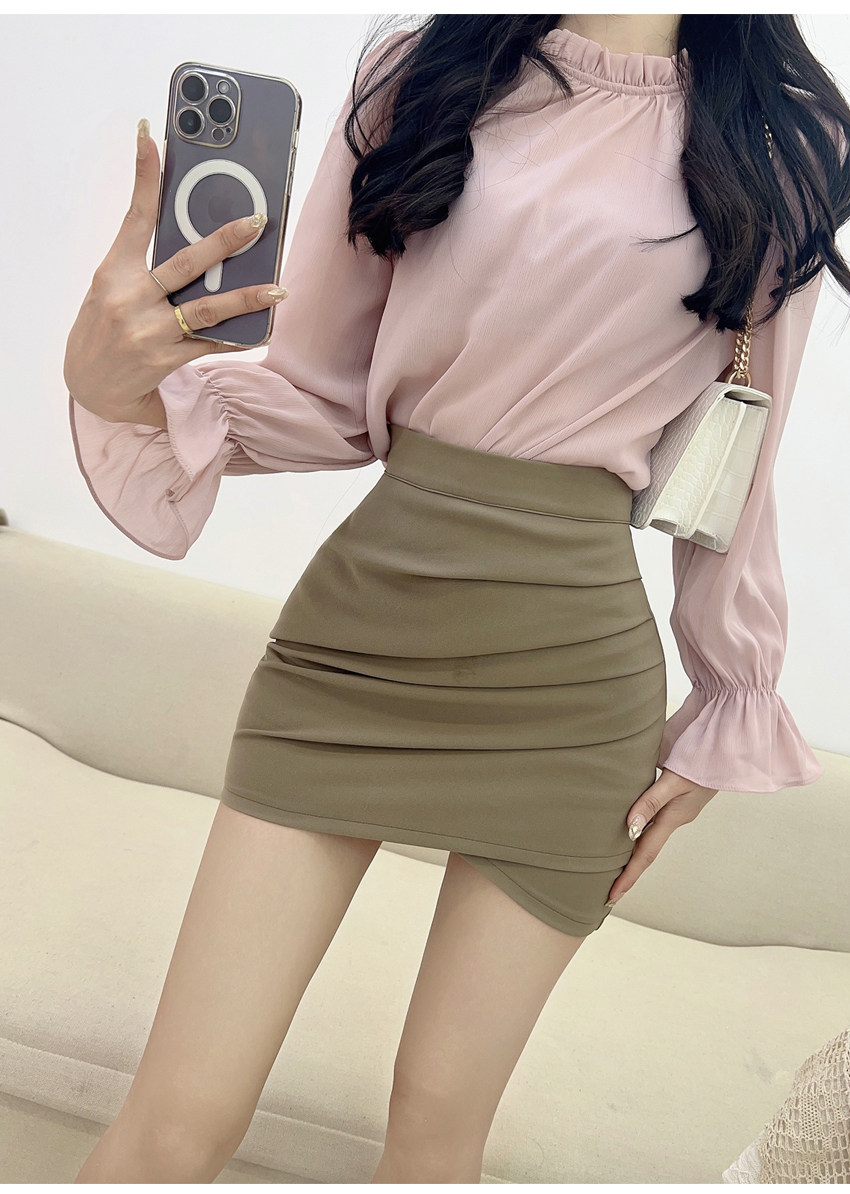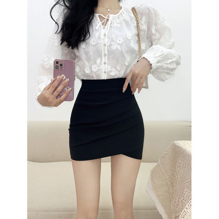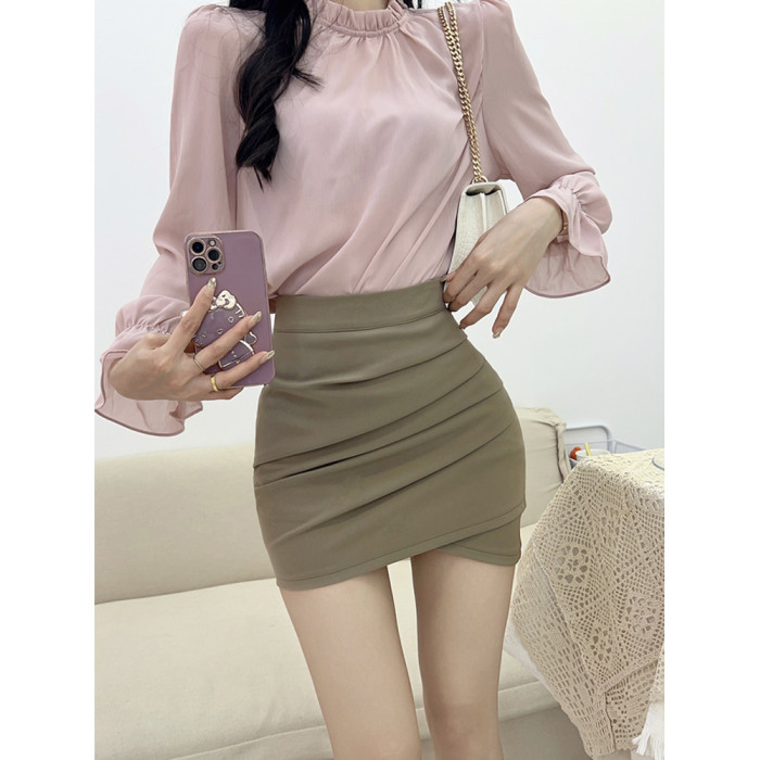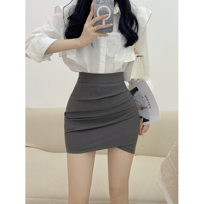 黑色包臀裙短款女春秋半身裙OL職業高腰緊身褶皺百搭不規則一步裙