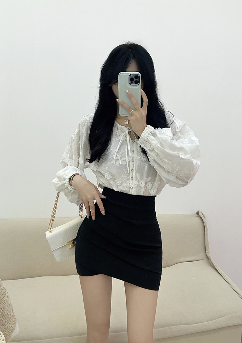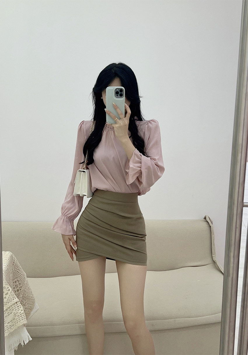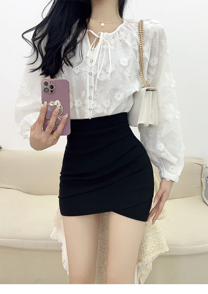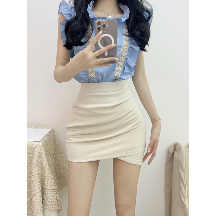 黑色包臀裙短款女春秋半身裙OL職業高腰緊身褶皺百搭不規則一步裙