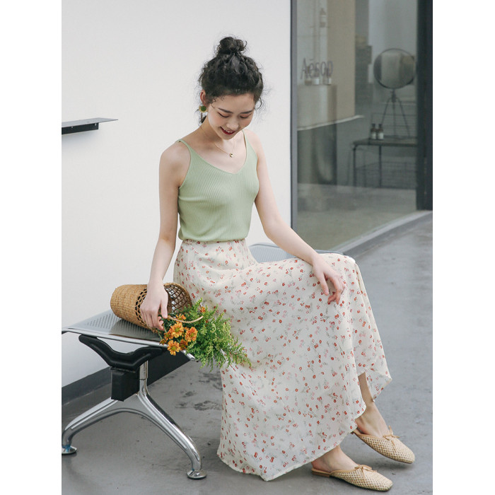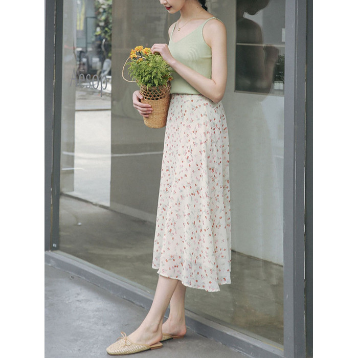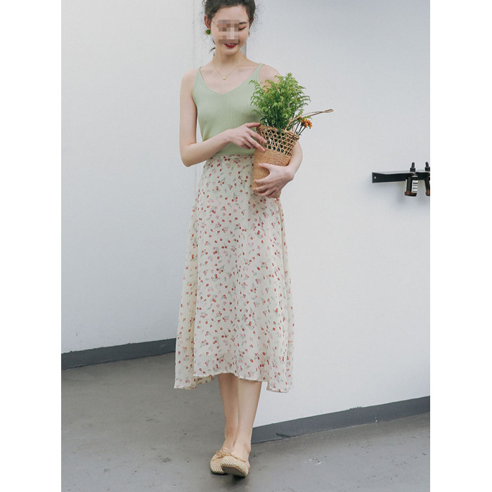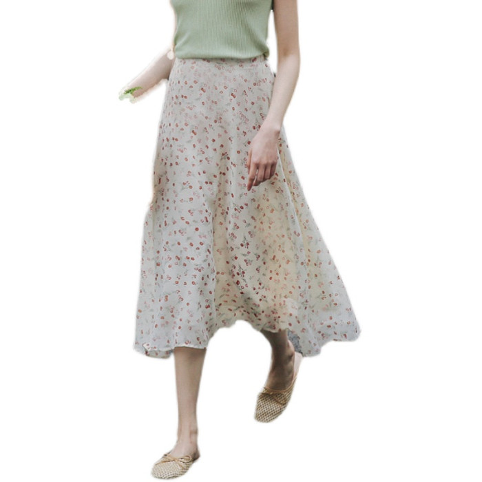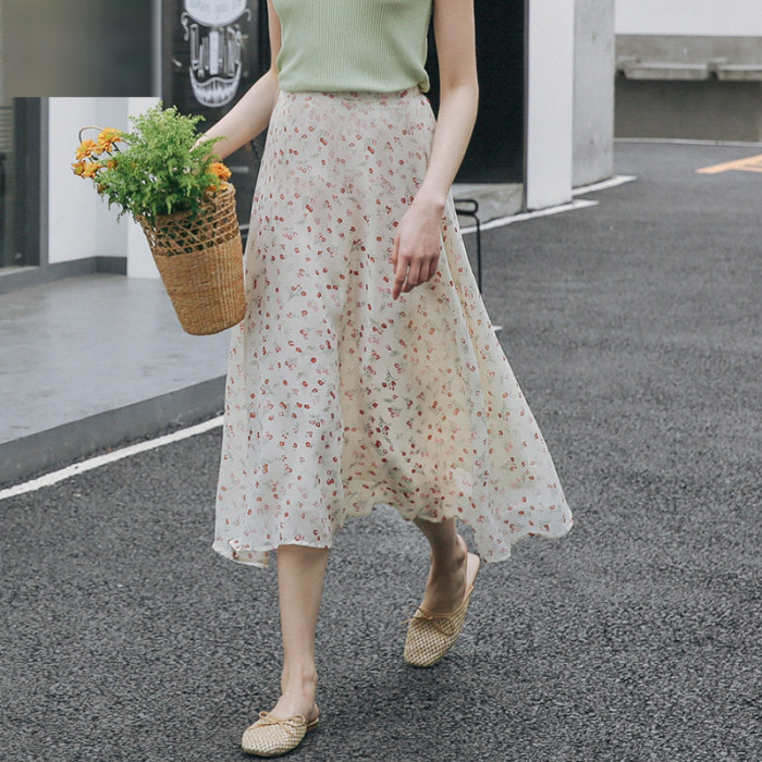 雪紡半身裙女夏季大碼中長款高腰顯瘦遮肉a字繖裙胖m松緊腰碎花裙