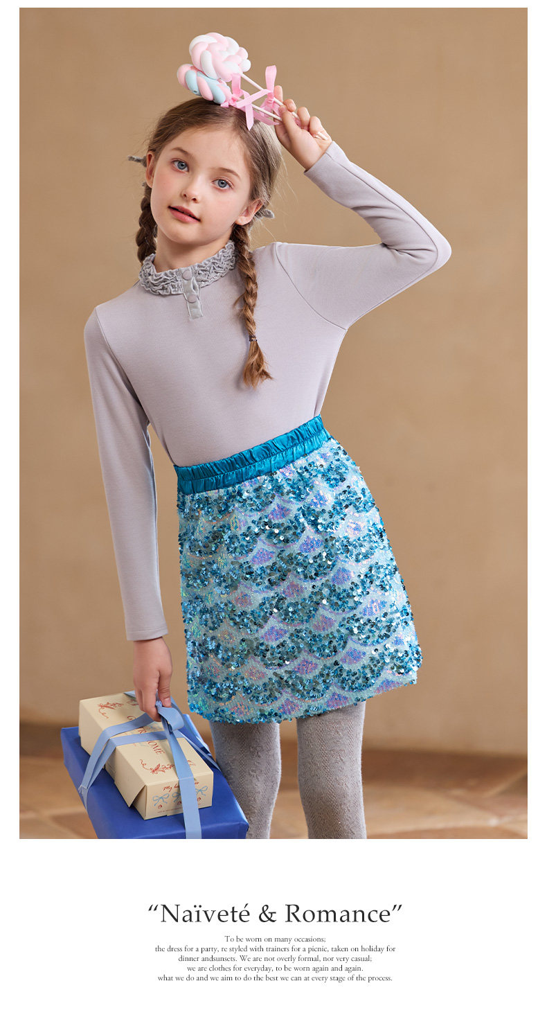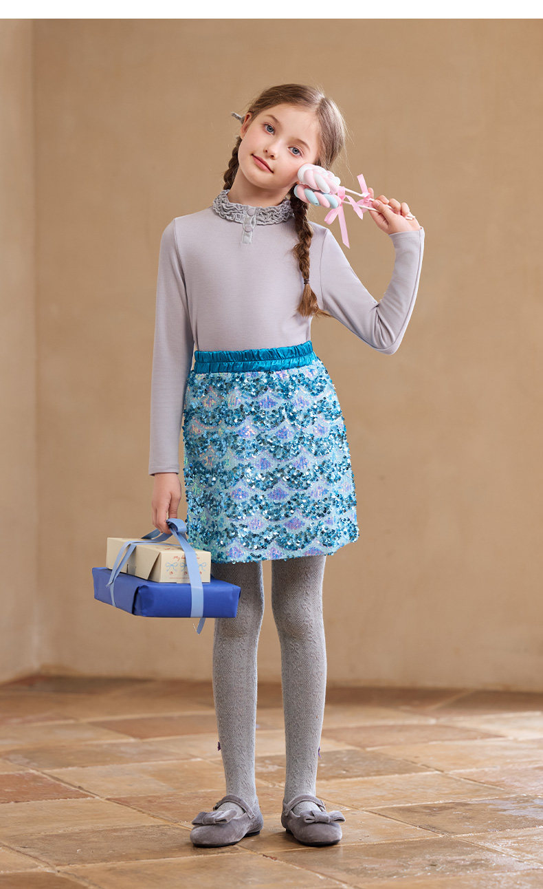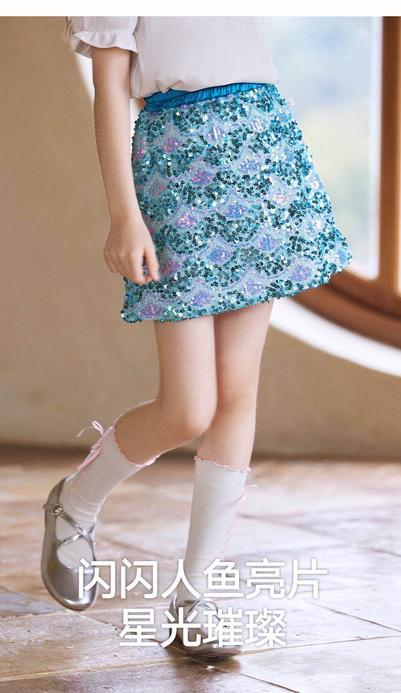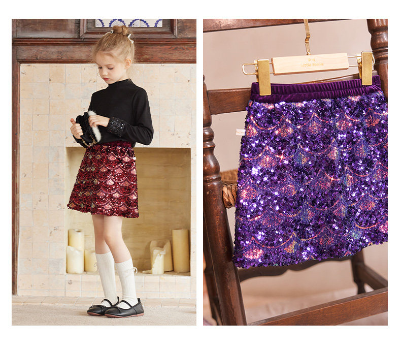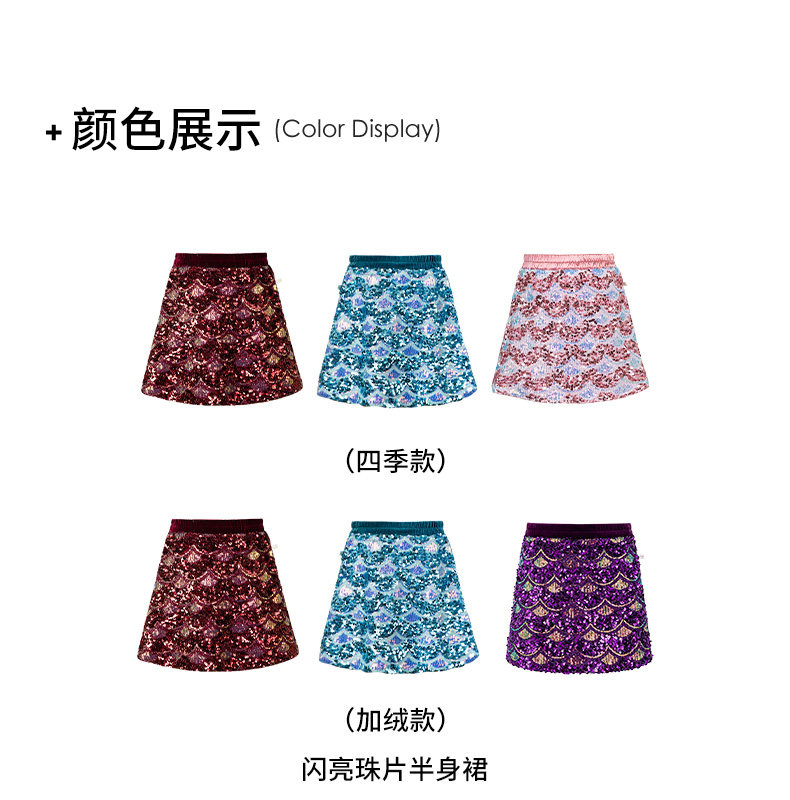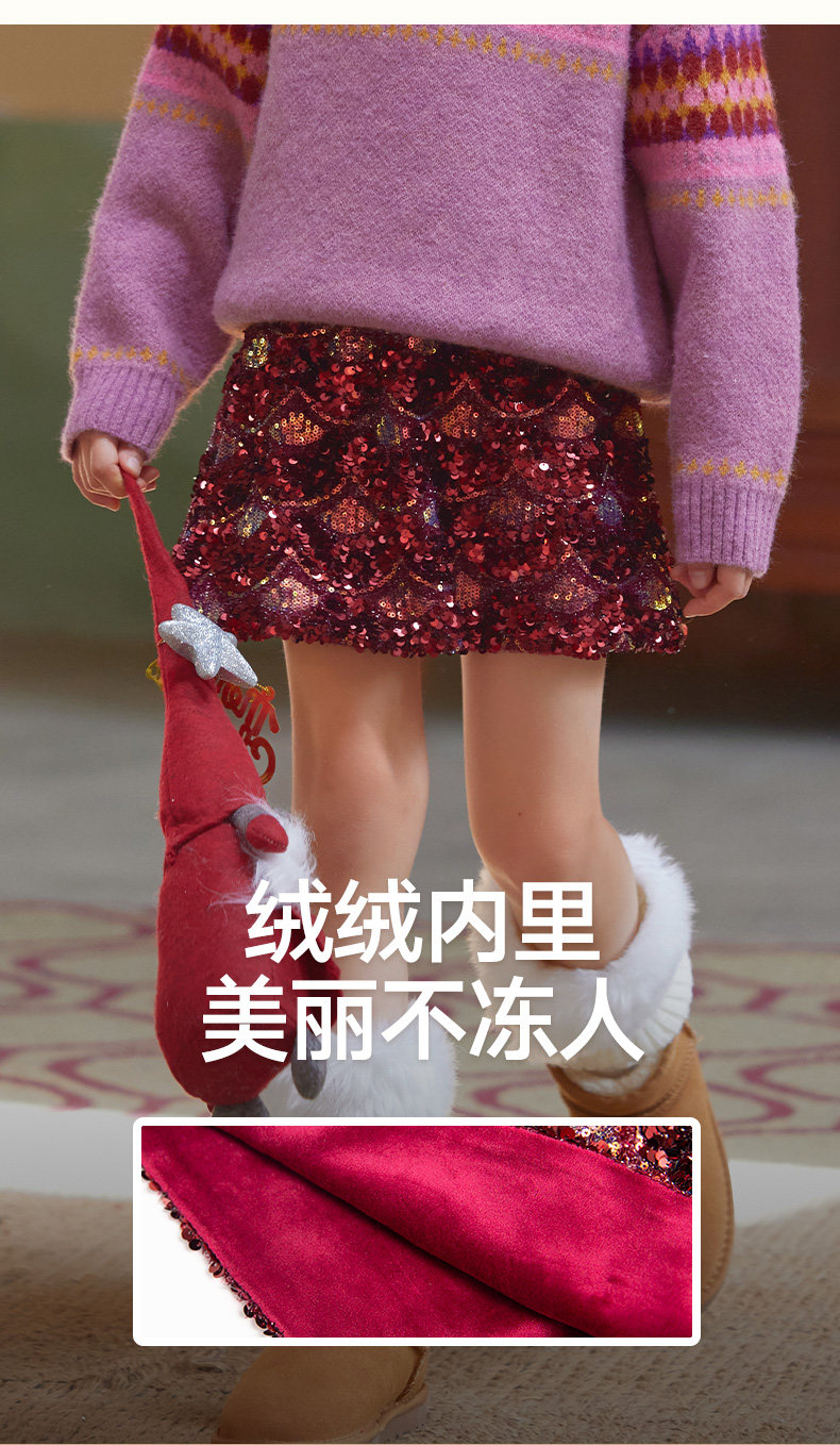 LittleNaive兒童紅色聖誕半裙冬裙子加絨人魚半裙女童亮片半身裙