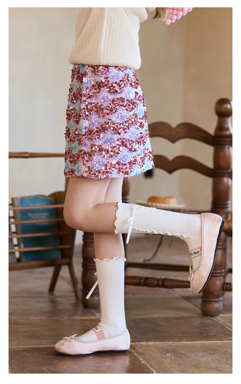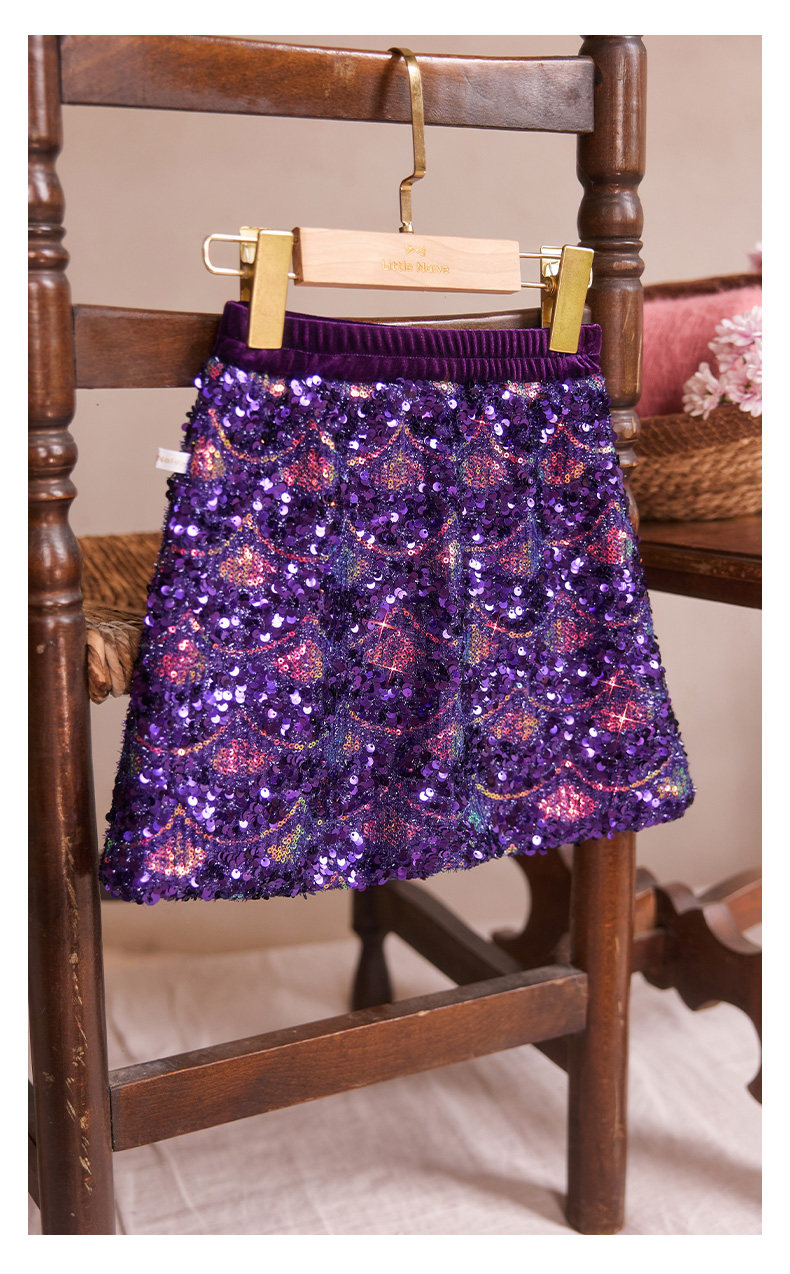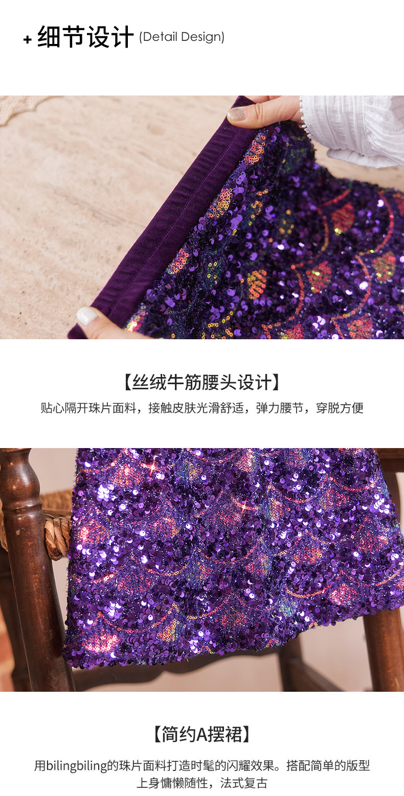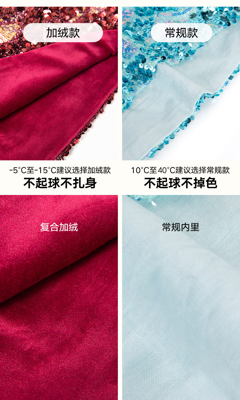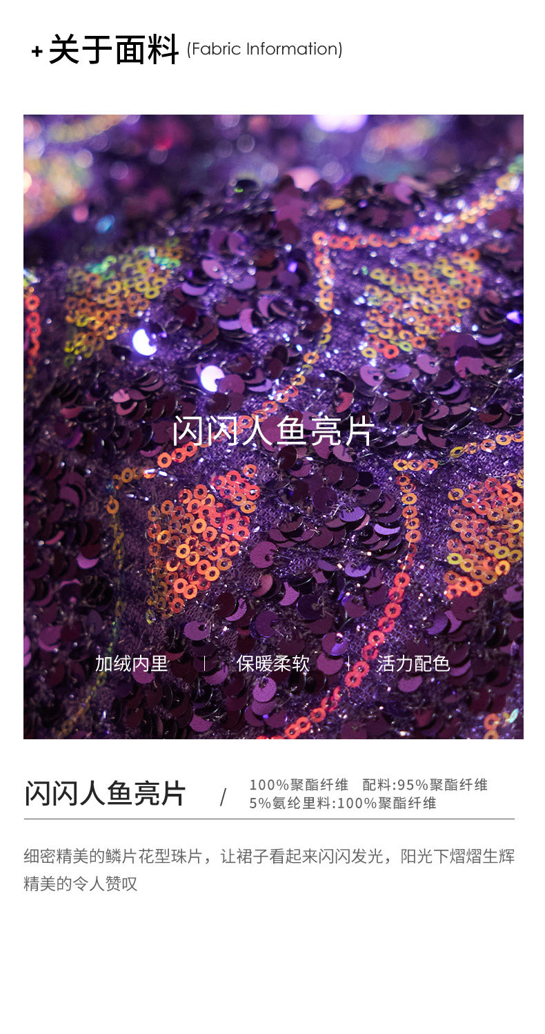 LittleNaive兒童紅色聖誕半裙冬裙子加絨人魚半裙女童亮片半身裙