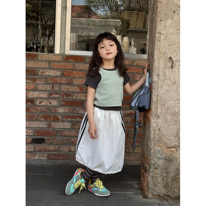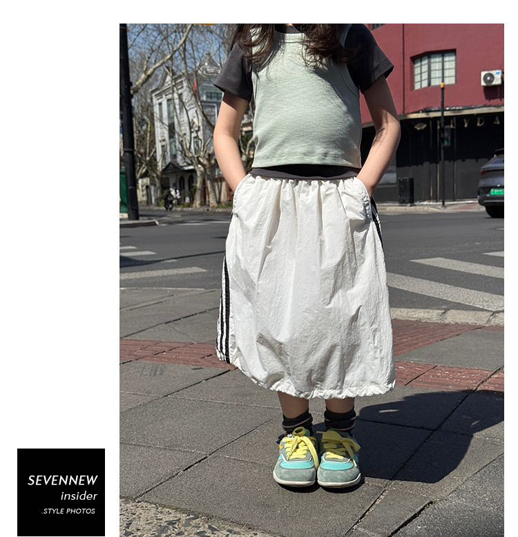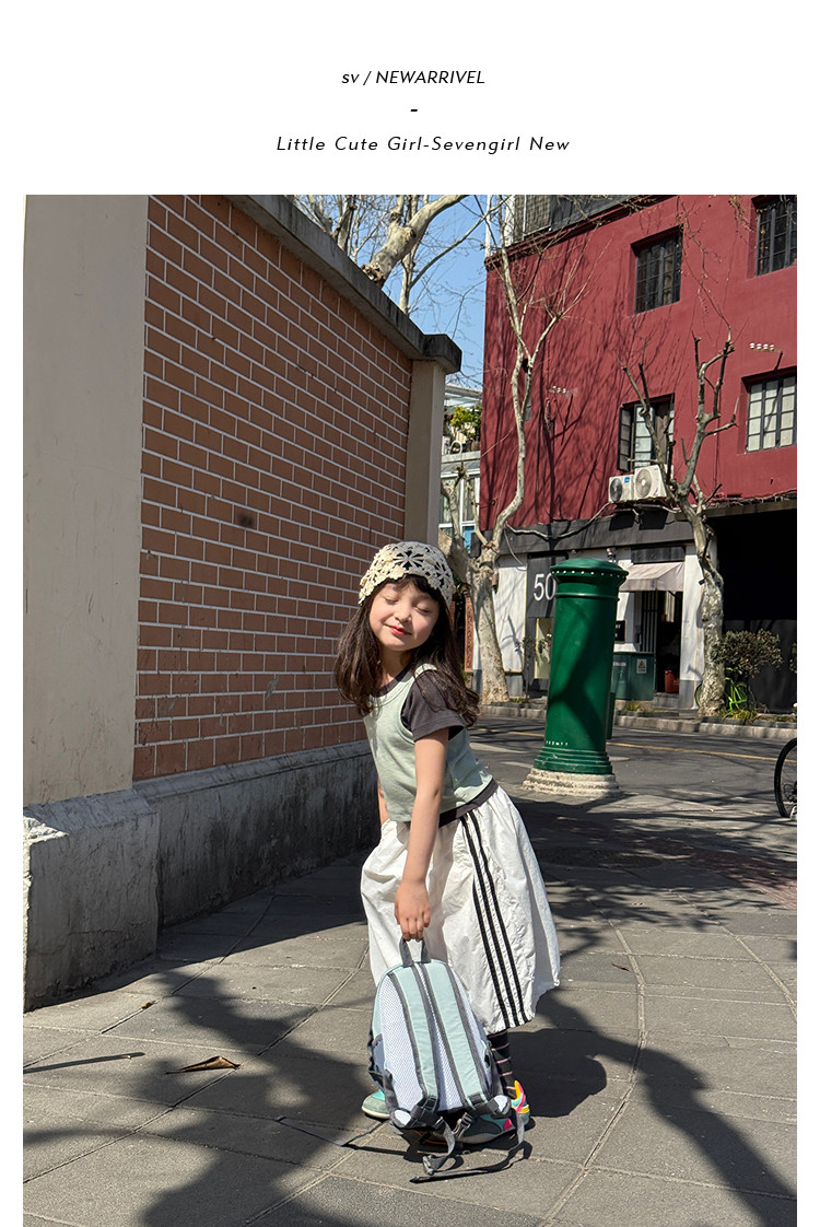 柒號童倉女童韓版工裝風半身裙夏裝新款女大童運動抽繩山系裙子潮