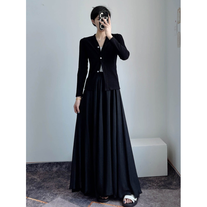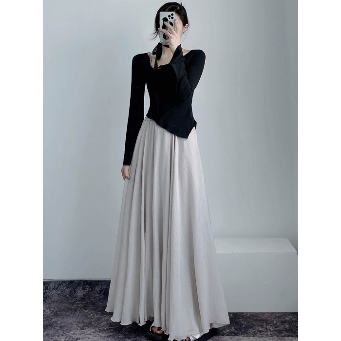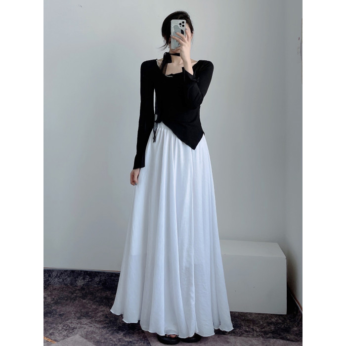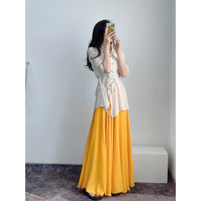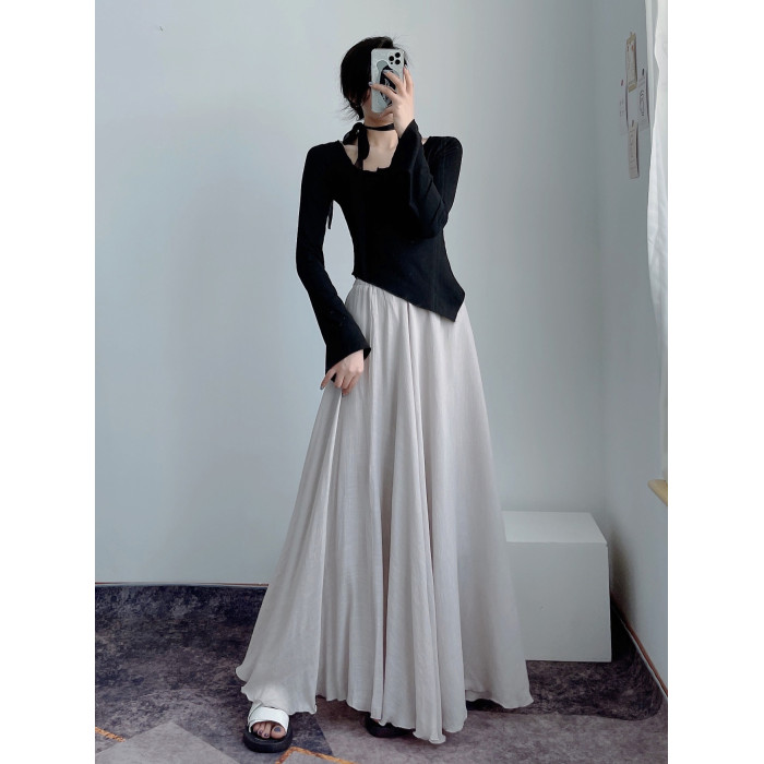 抗皺棉麻半身裙夏秋大擺溫柔顯瘦高腰a型長裙純色a字裙及踝拖地裙