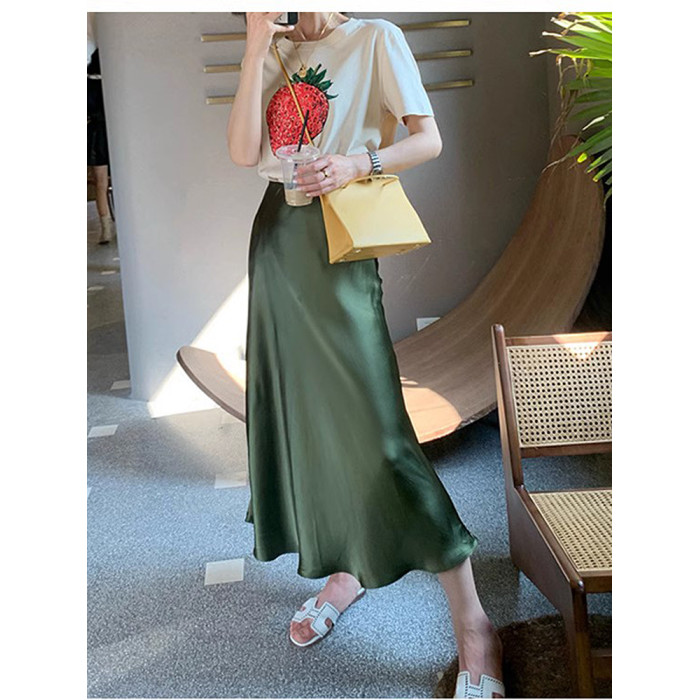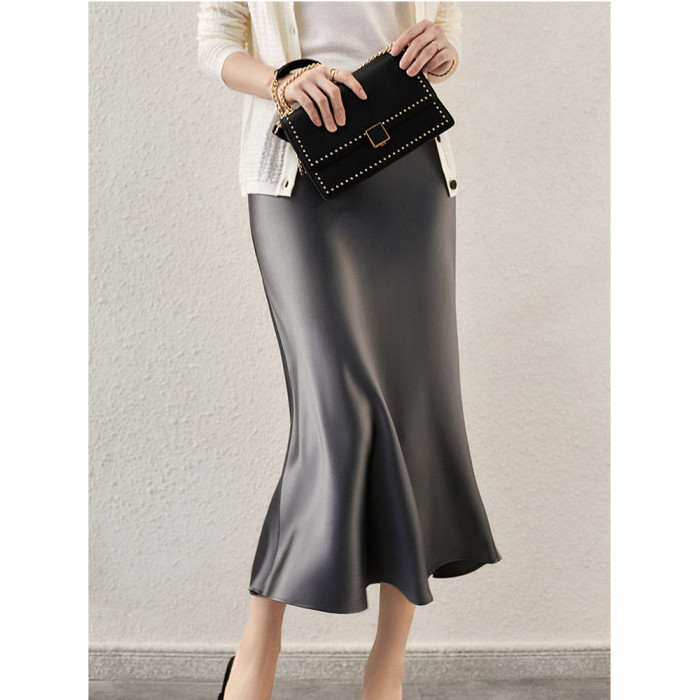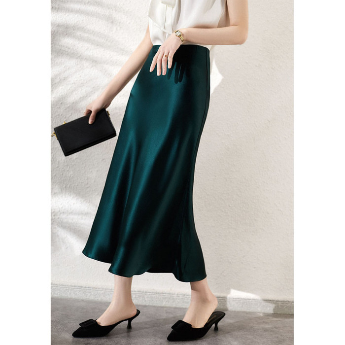 高腰醋酸半身裙女中長款三醋酸緞面垂感真絲包臀魚尾a字裙長裙