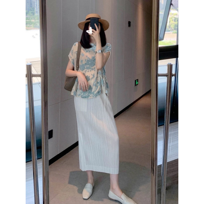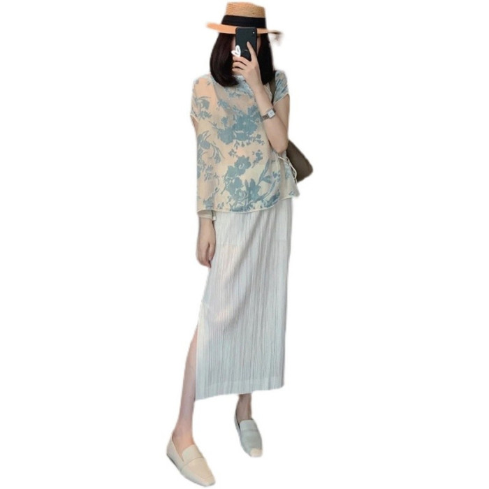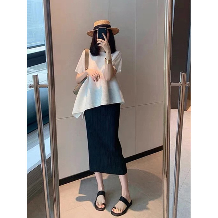 三宅半身裙 褶皺裙春夏側邊開叉高腰顯瘦包臀百褶裙女中長款裙子