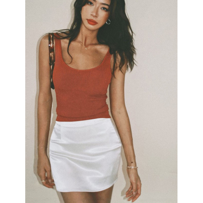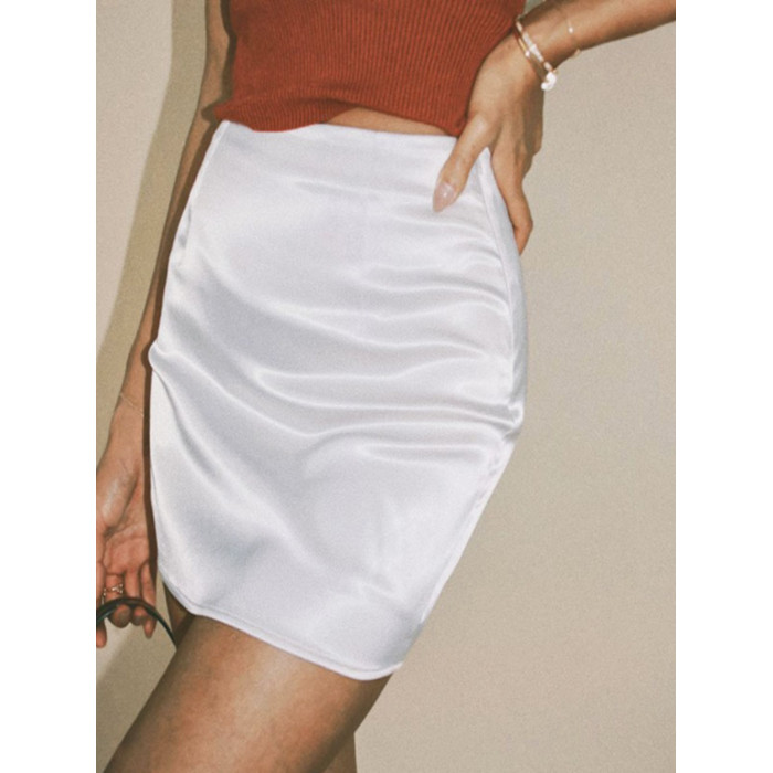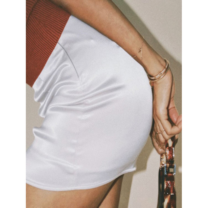 柔光白色醋酸緞麵包臀裙褲女夏歐美純色百搭a字高腰緊身性感短裙