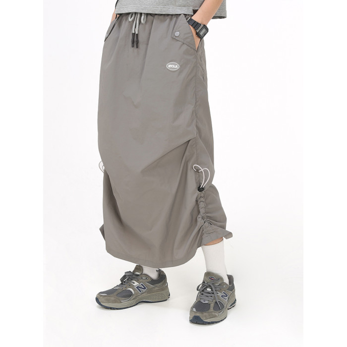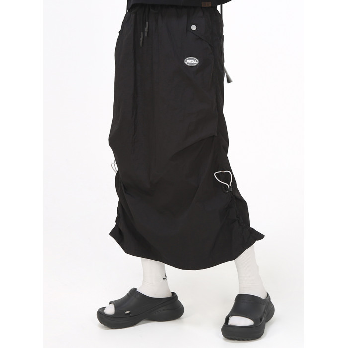 嬉遊記原創2025夏季新款設計感堆堆褶皺半身裙女防潑水開叉工裝裙