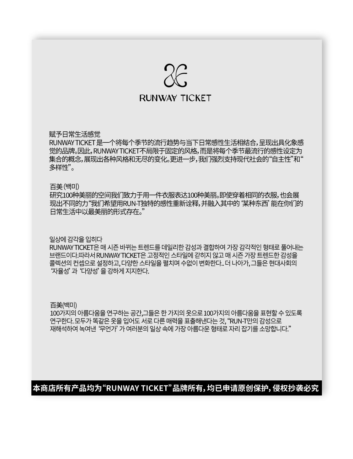 | 品牌 | Runway Ticket |
