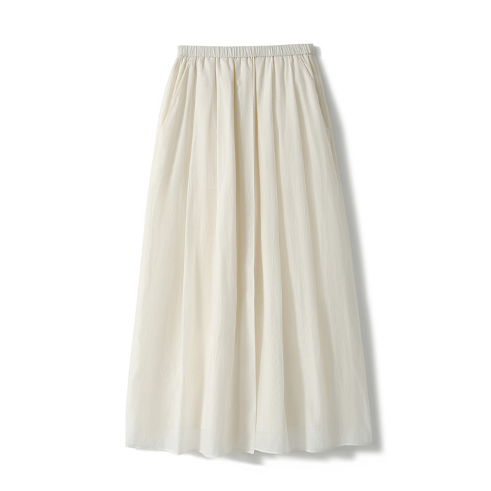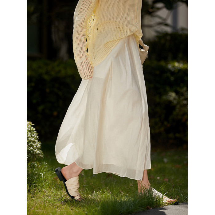 【柔光漫遊 桑蠶絲 X 棉松緊腰半裙】