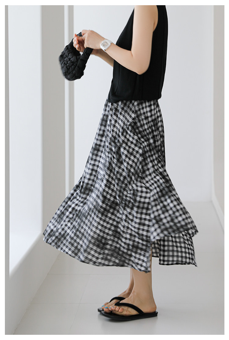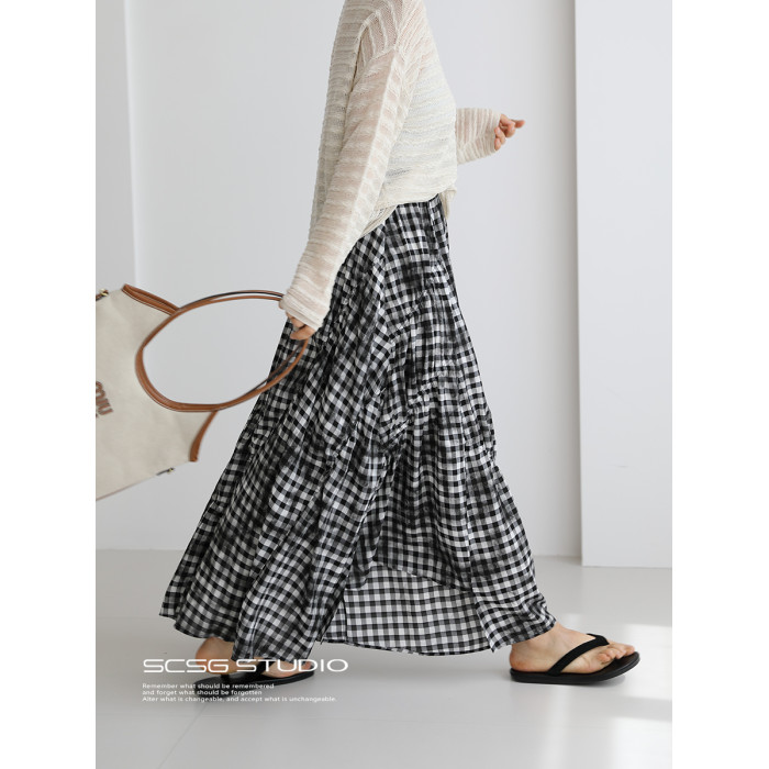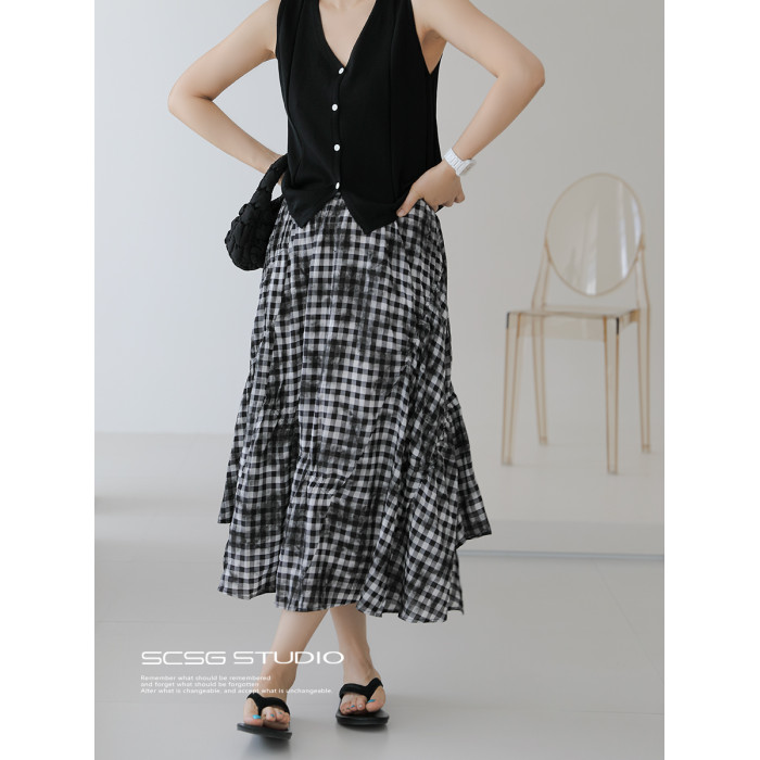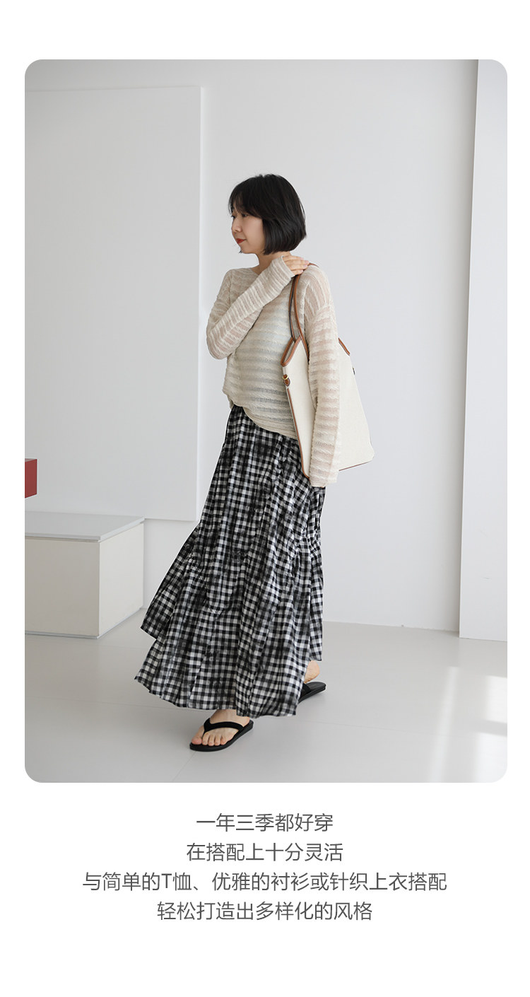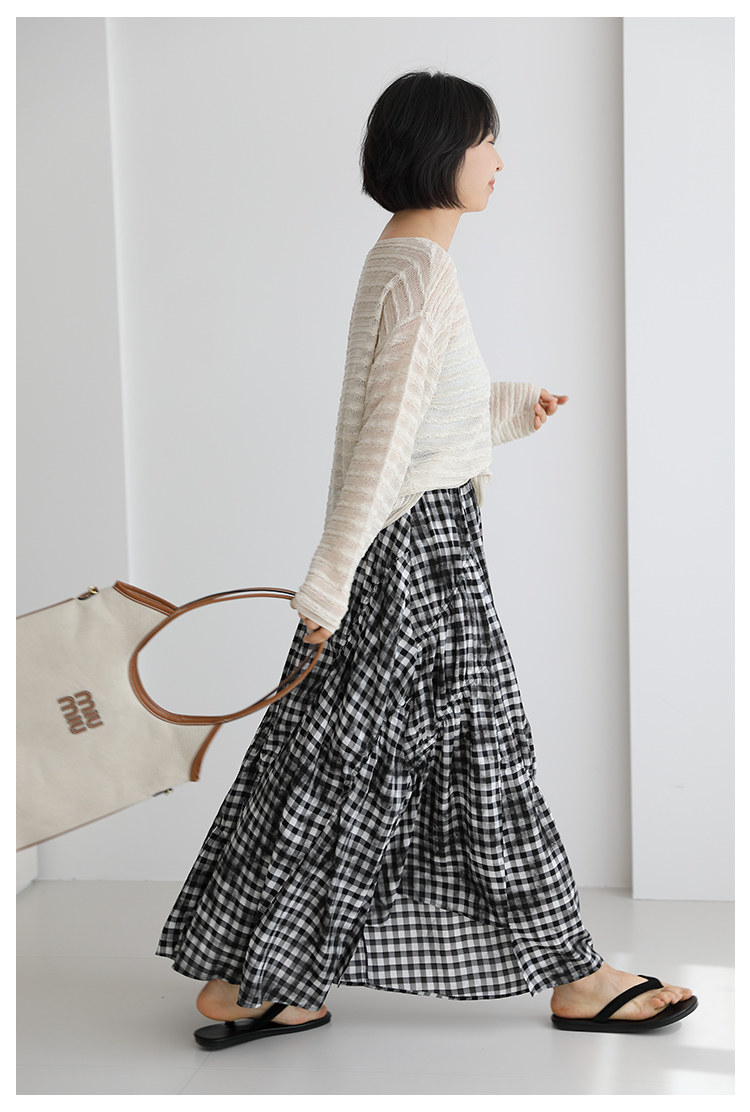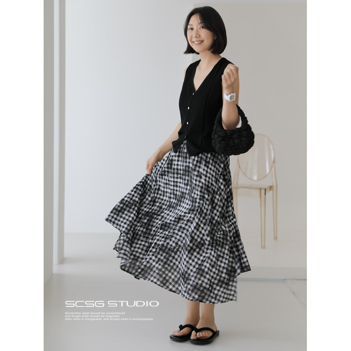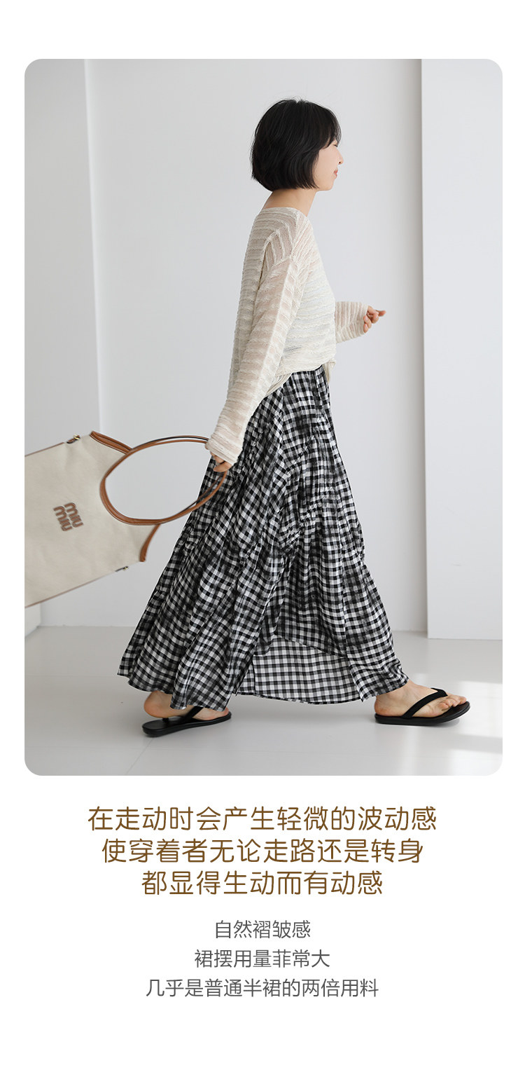 三吋時光4624-清涼度假風浪漫半裙!漸變格紋蛋糕裙半身裙A字長裙