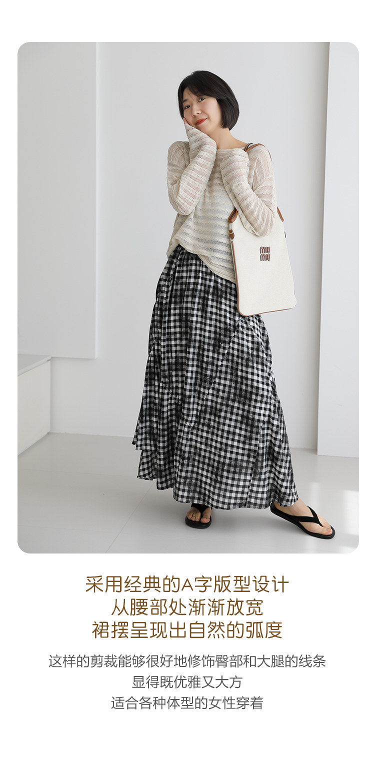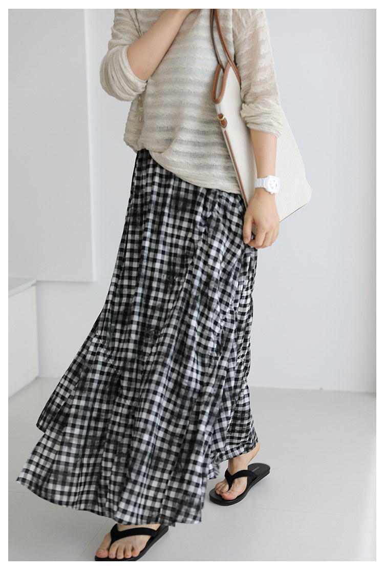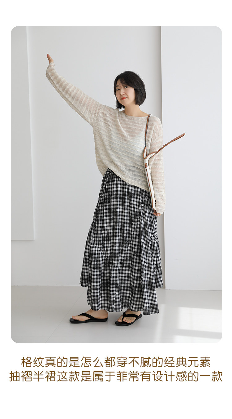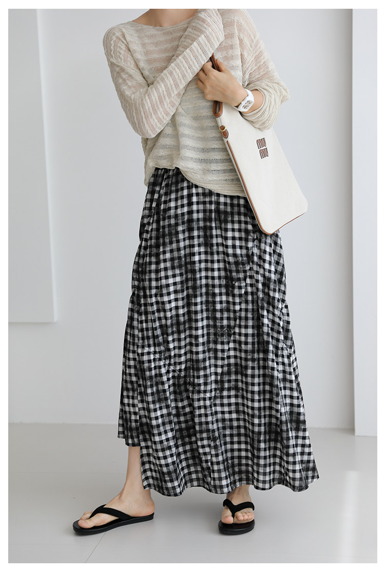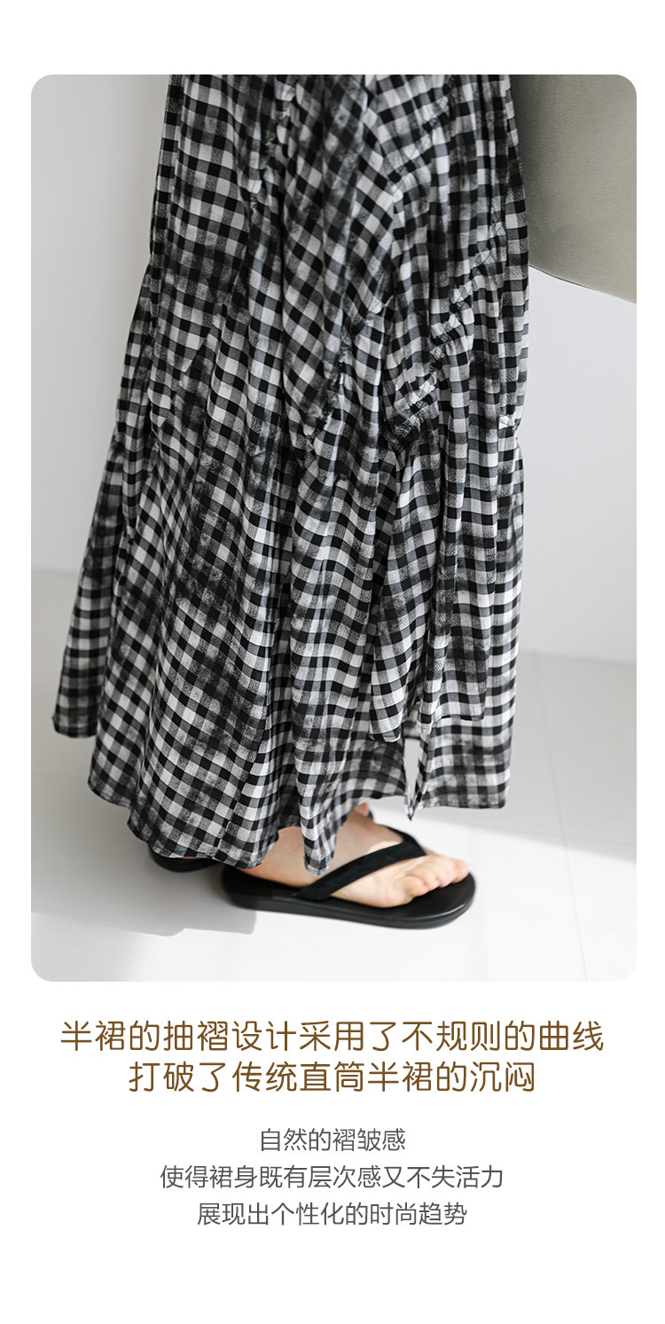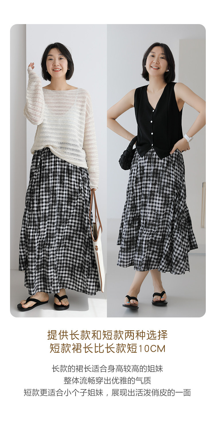 三吋時光4624-清涼度假風浪漫半裙!漸變格紋蛋糕裙半身裙A字長裙