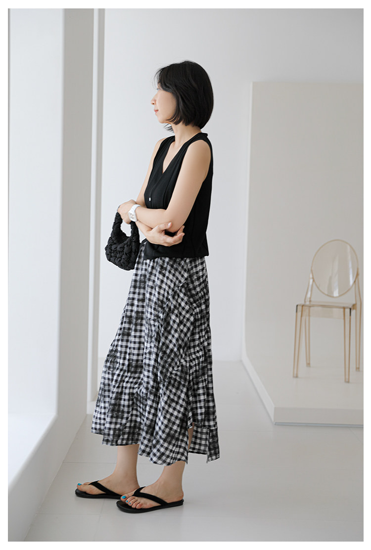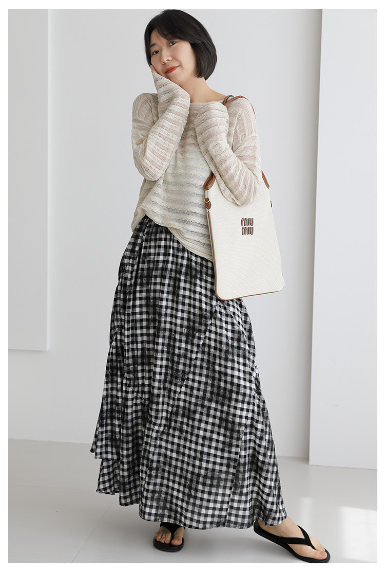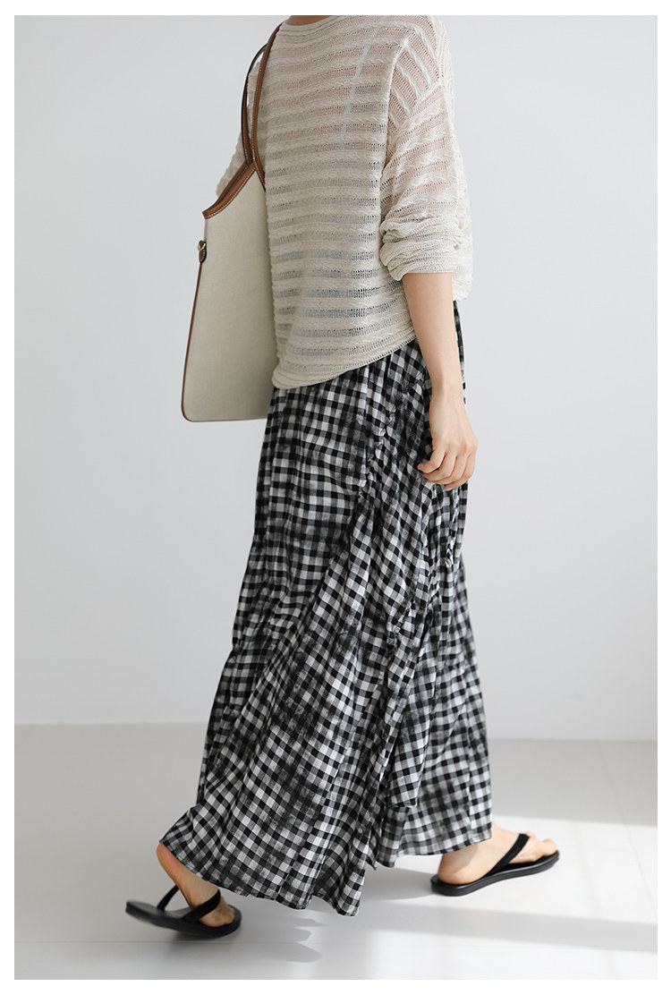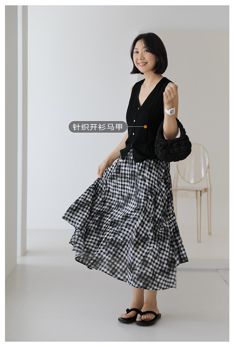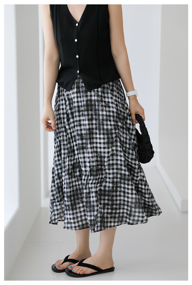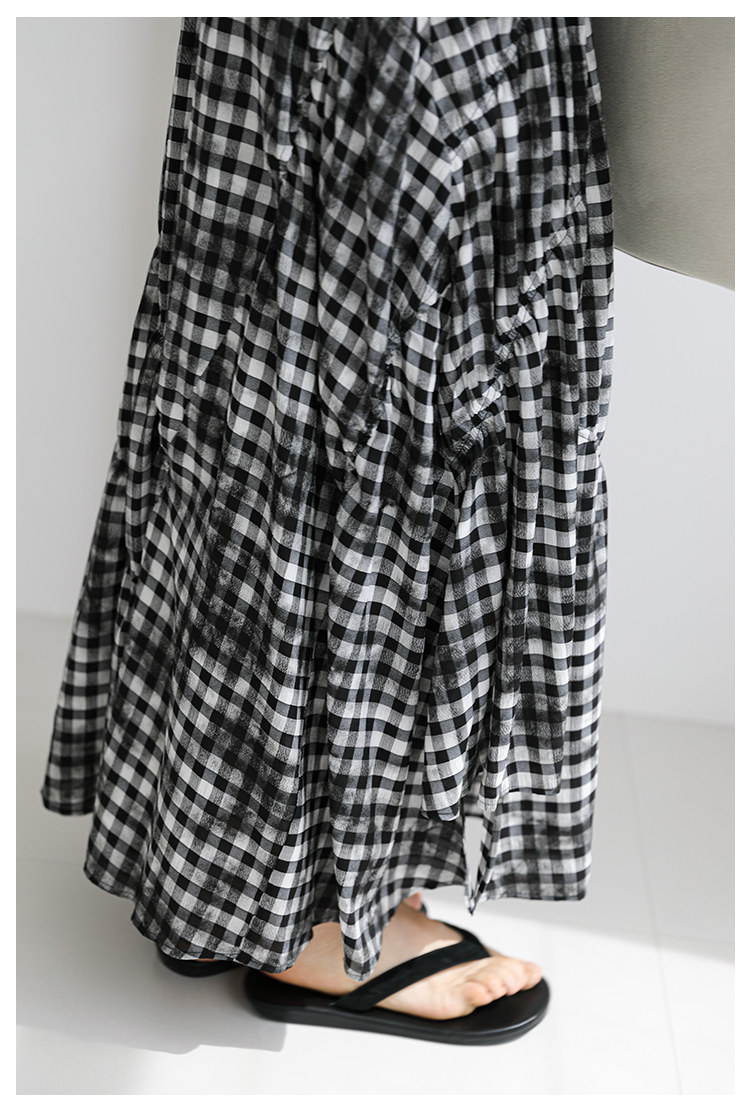 三吋時光4624-清涼度假風浪漫半裙!漸變格紋蛋糕裙半身裙A字長裙