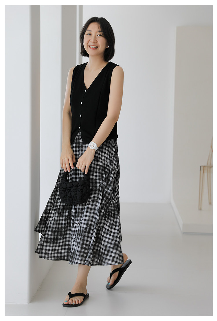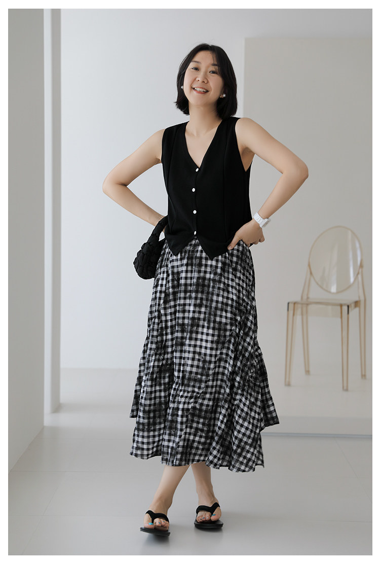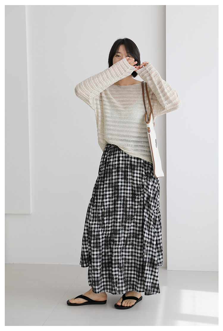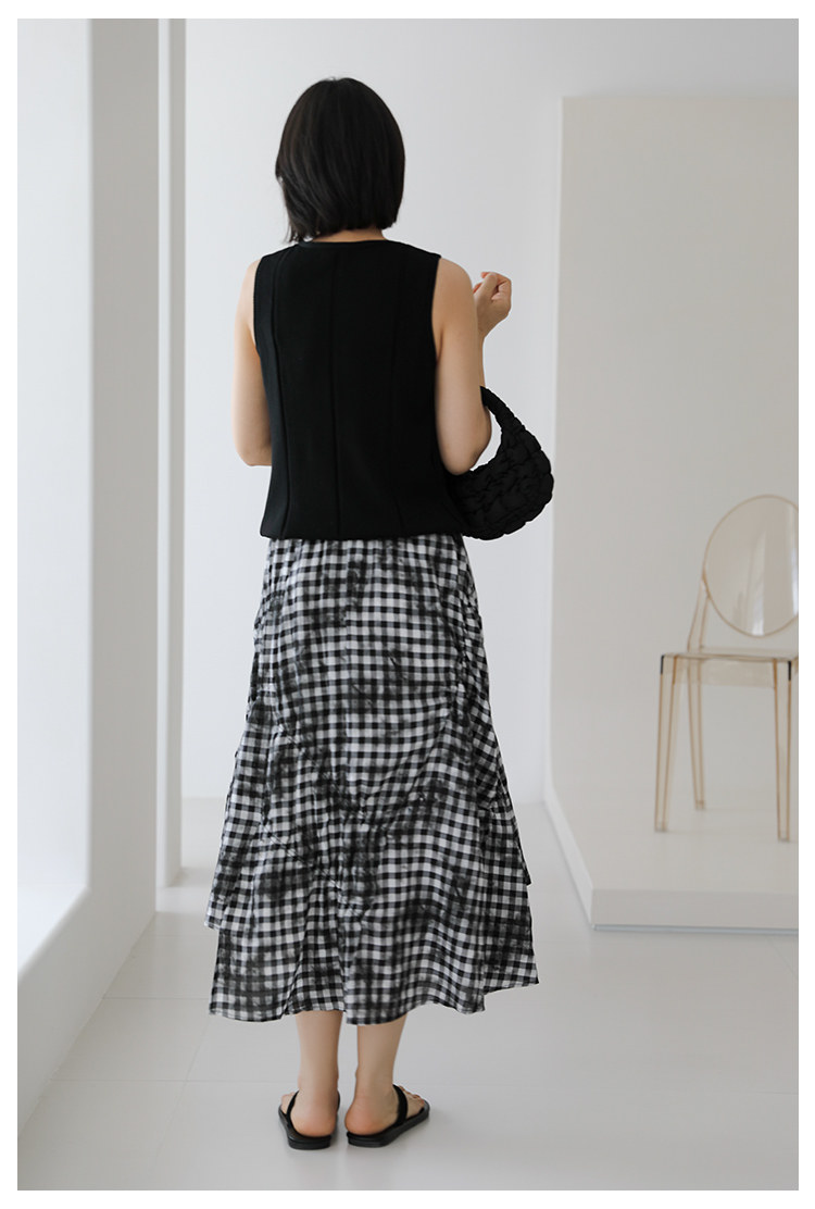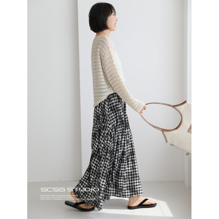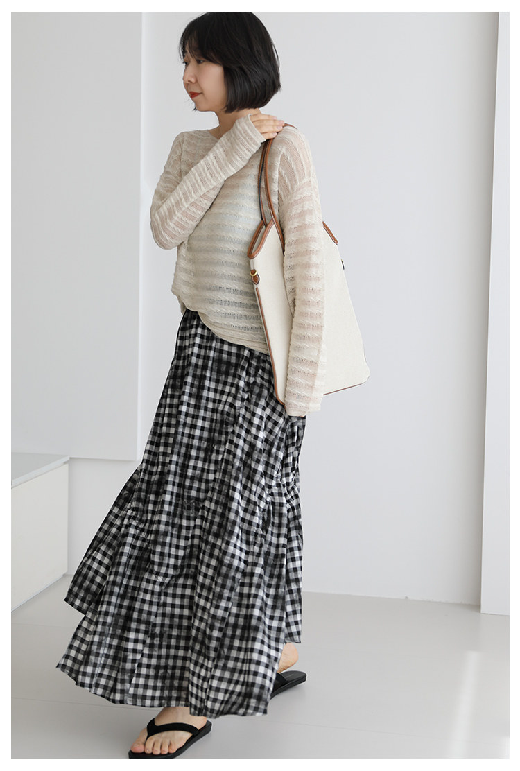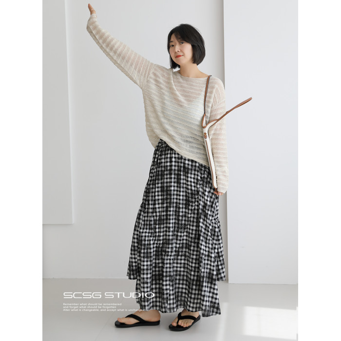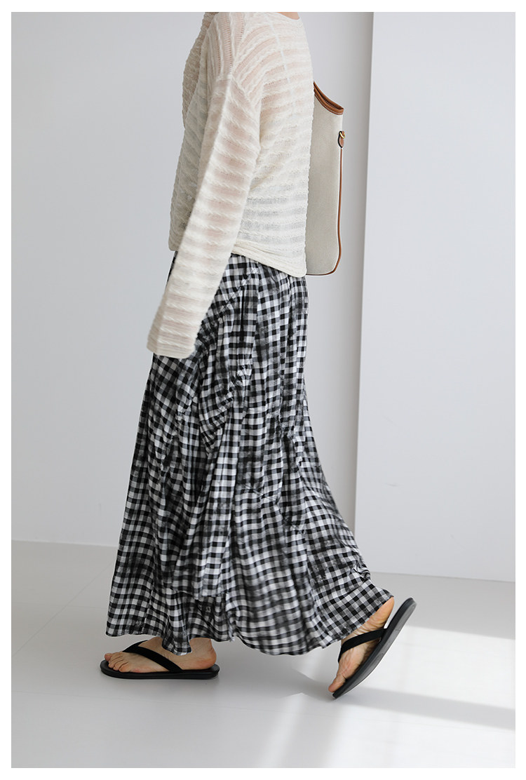 三吋時光4624-清涼度假風浪漫半裙!漸變格紋蛋糕裙半身裙A字長裙