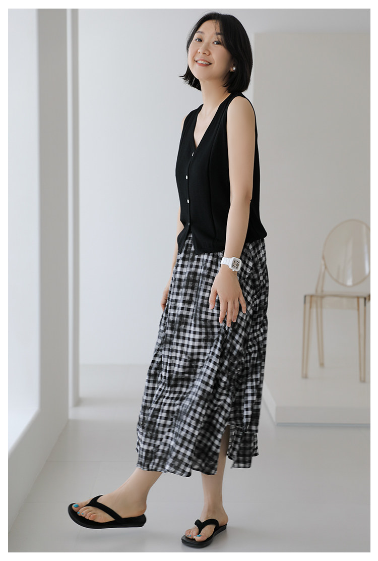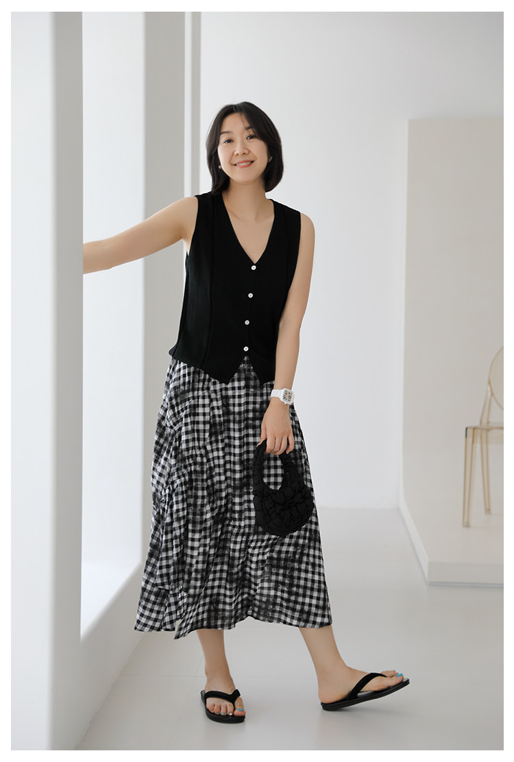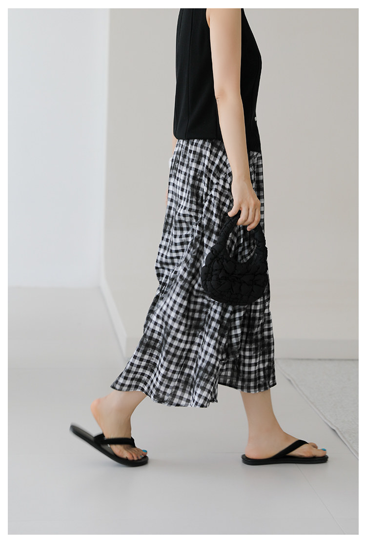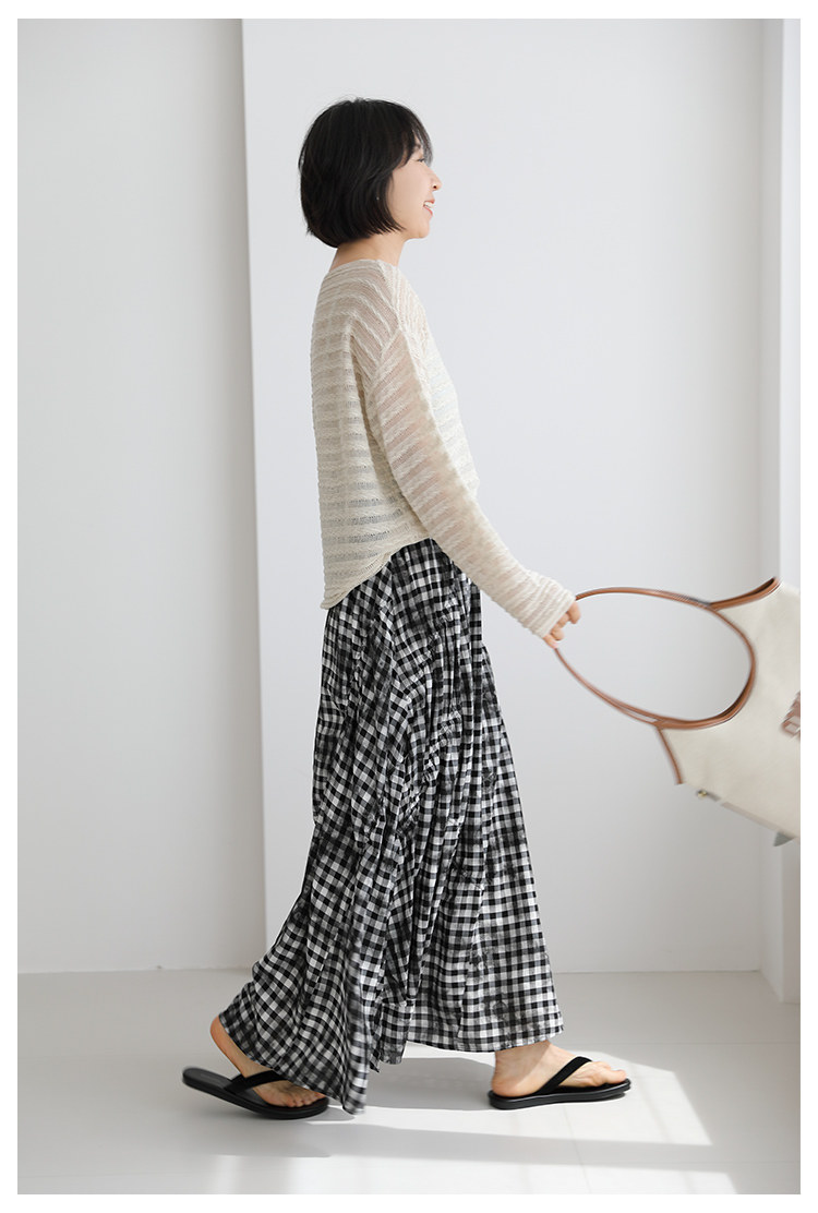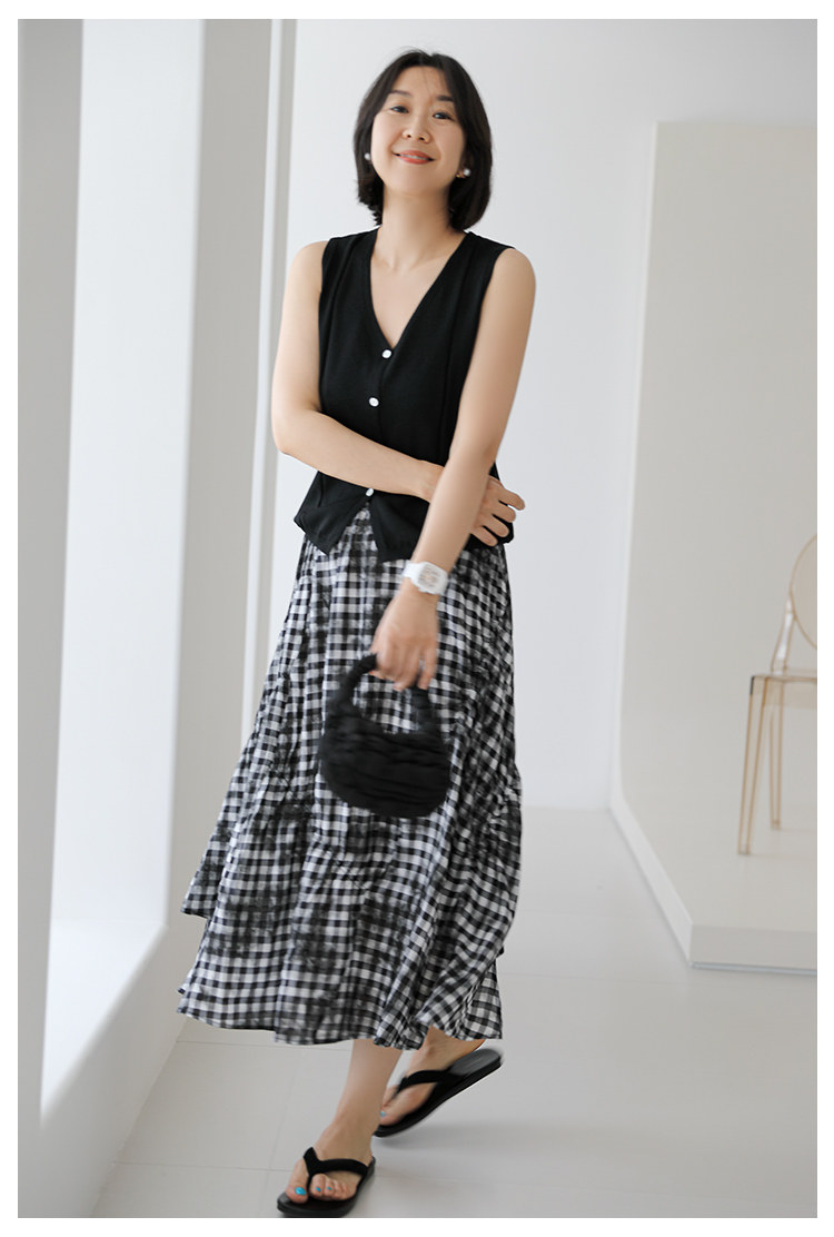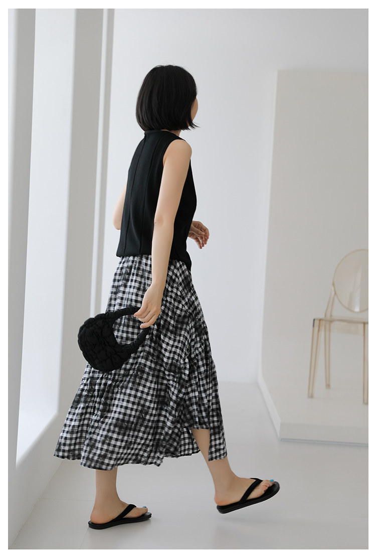 三吋時光4624-清涼度假風浪漫半裙!漸變格紋蛋糕裙半身裙A字長裙