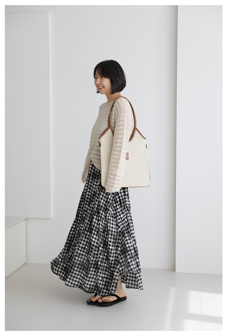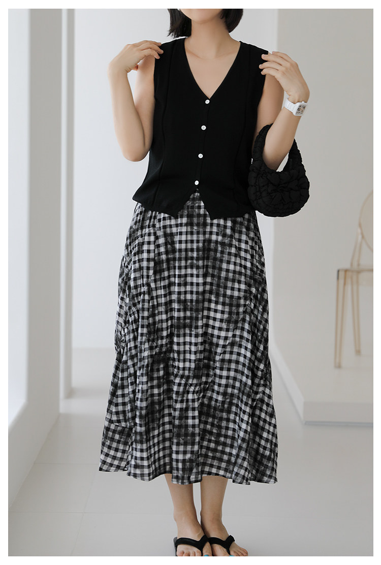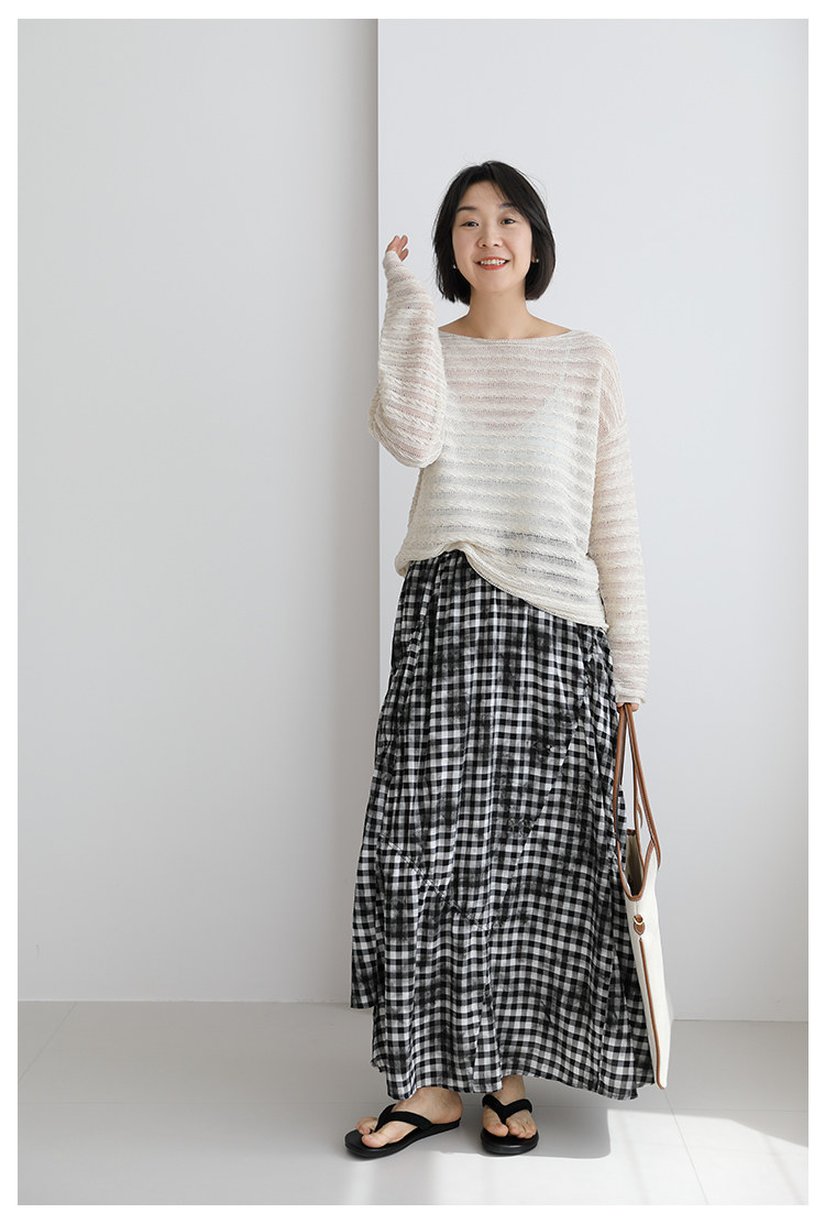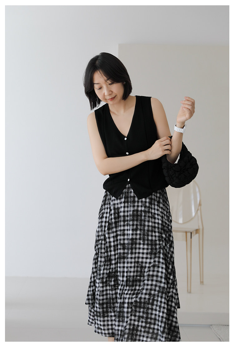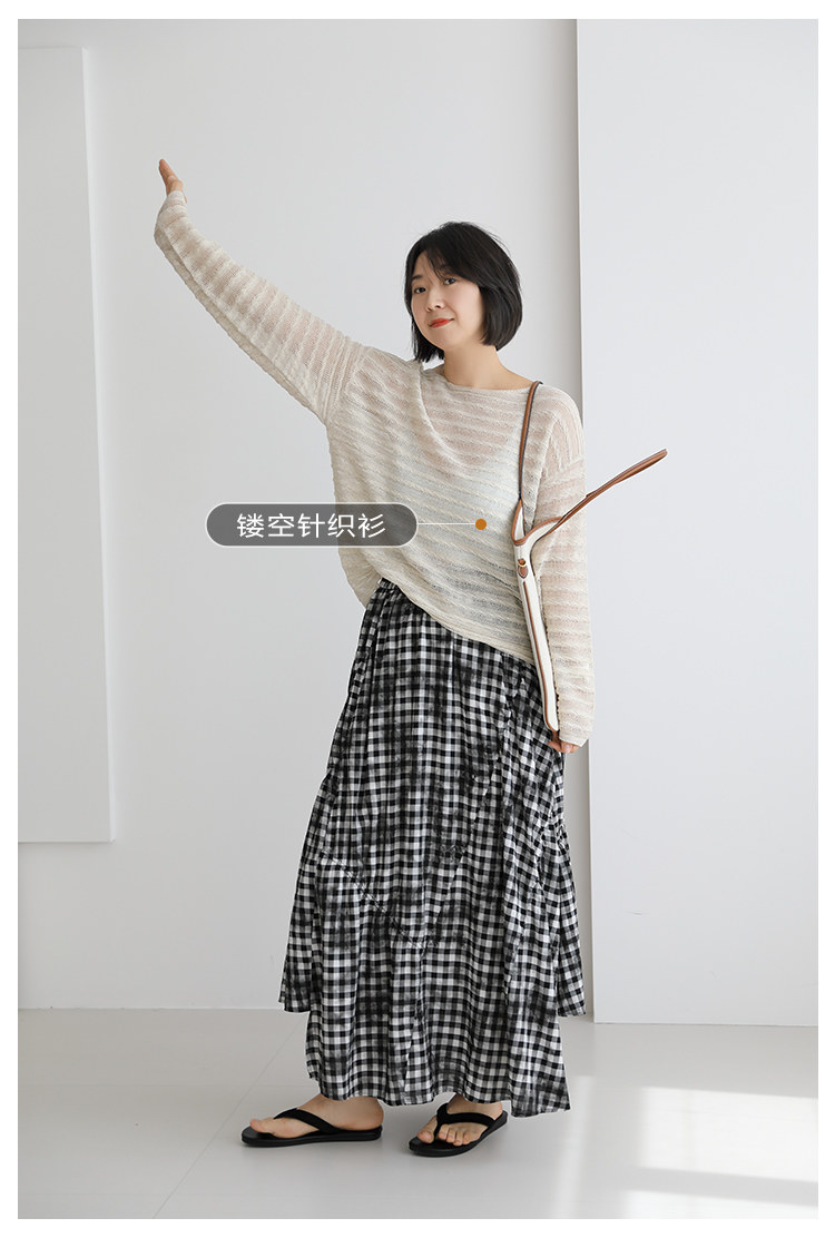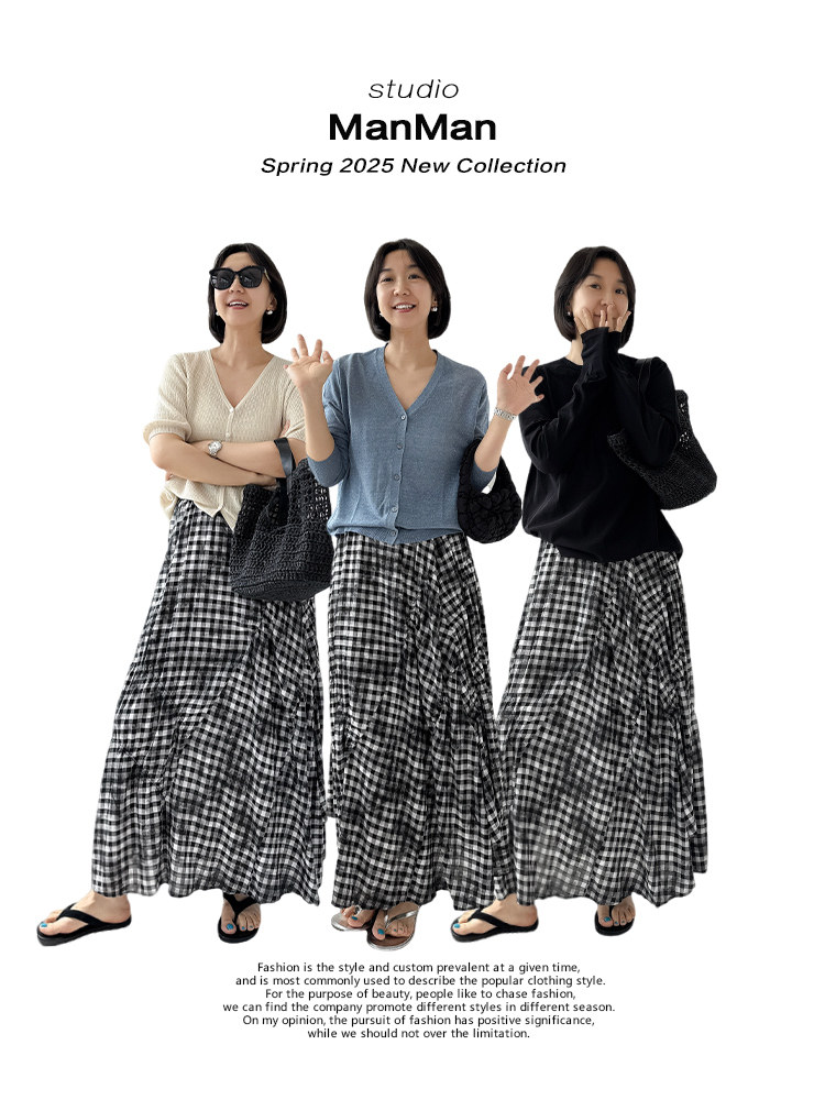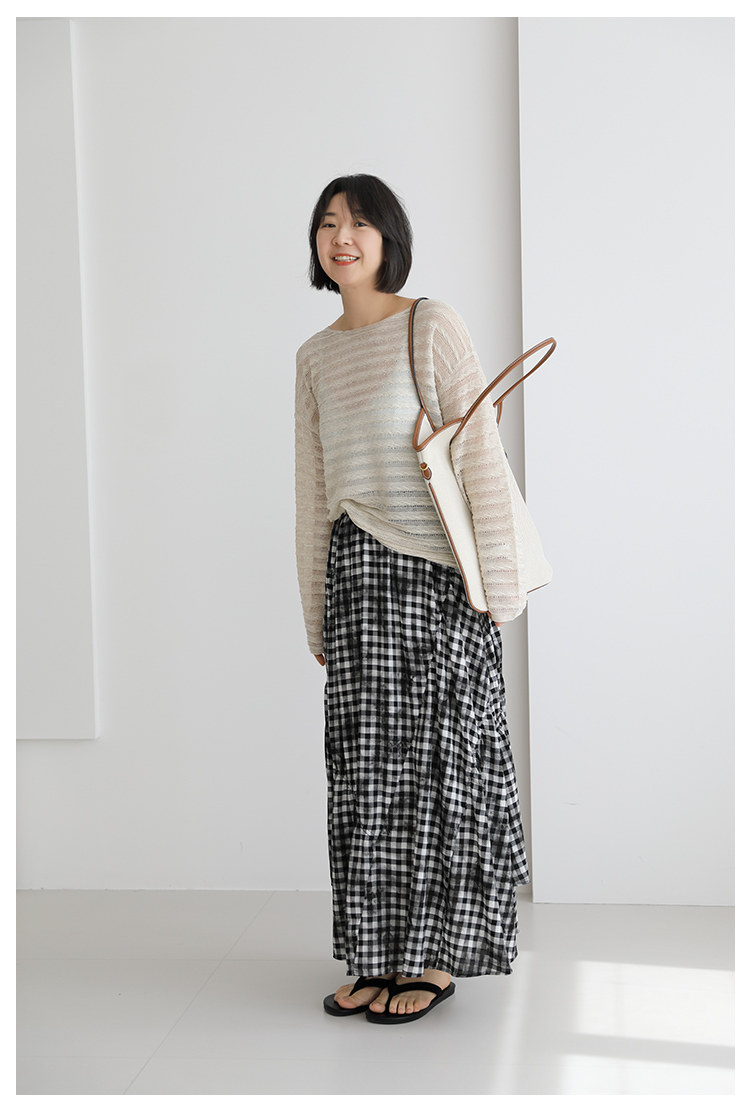 三吋時光4624-清涼度假風浪漫半裙!漸變格紋蛋糕裙半身裙A字長裙