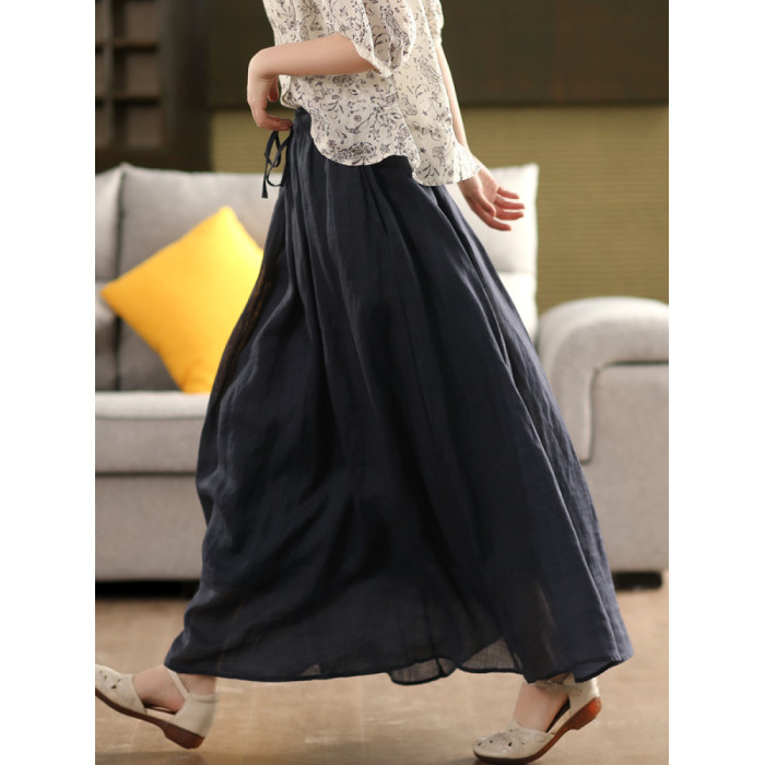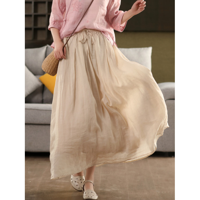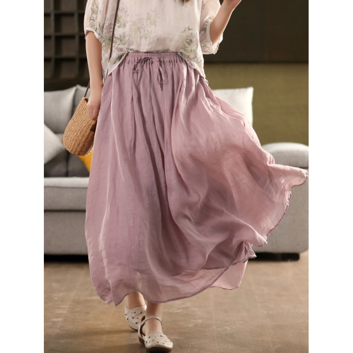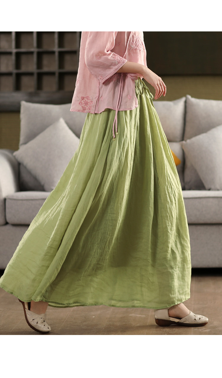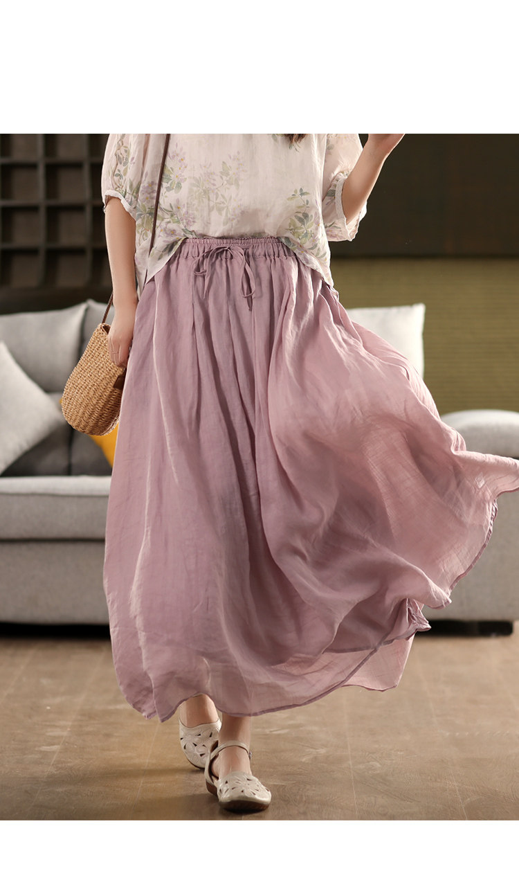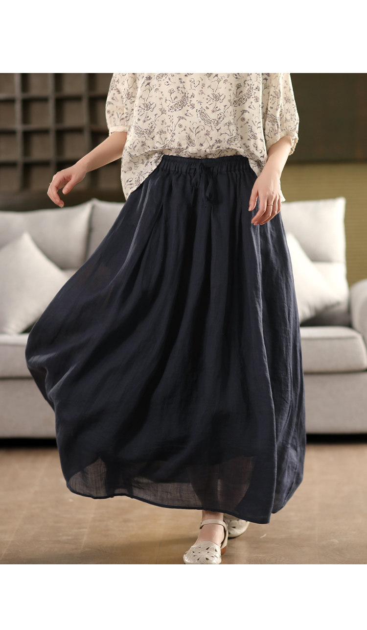 園園美衣重工100%苧麻半身裙女大擺裙氣質雙層顯瘦時尚飄逸長裙夏