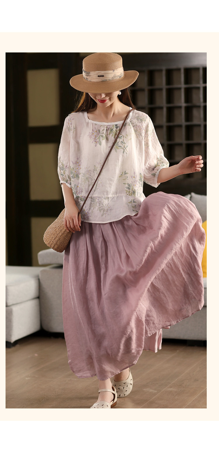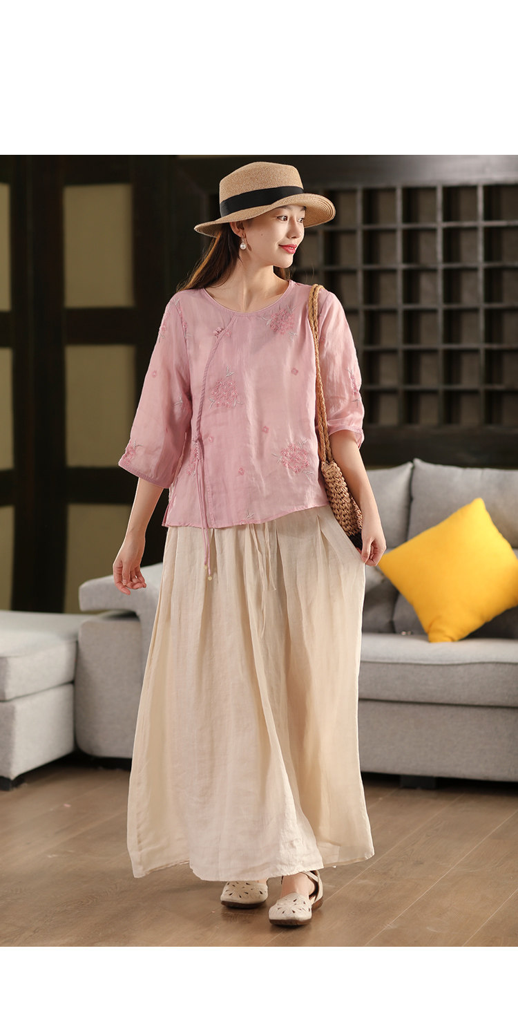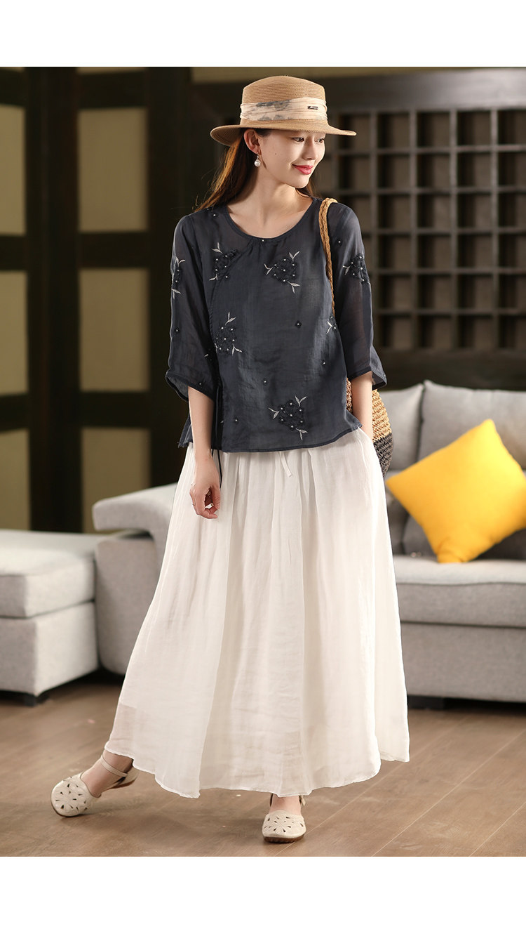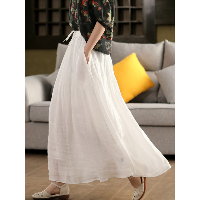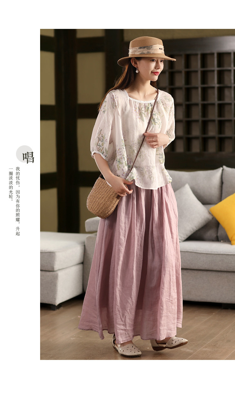 園園美衣重工100%苧麻半身裙女大擺裙氣質雙層顯瘦時尚飄逸長裙夏