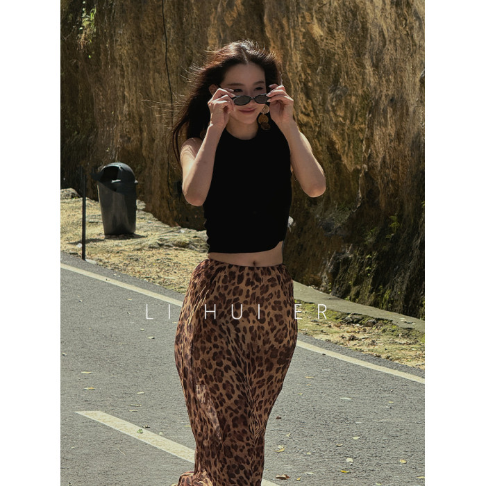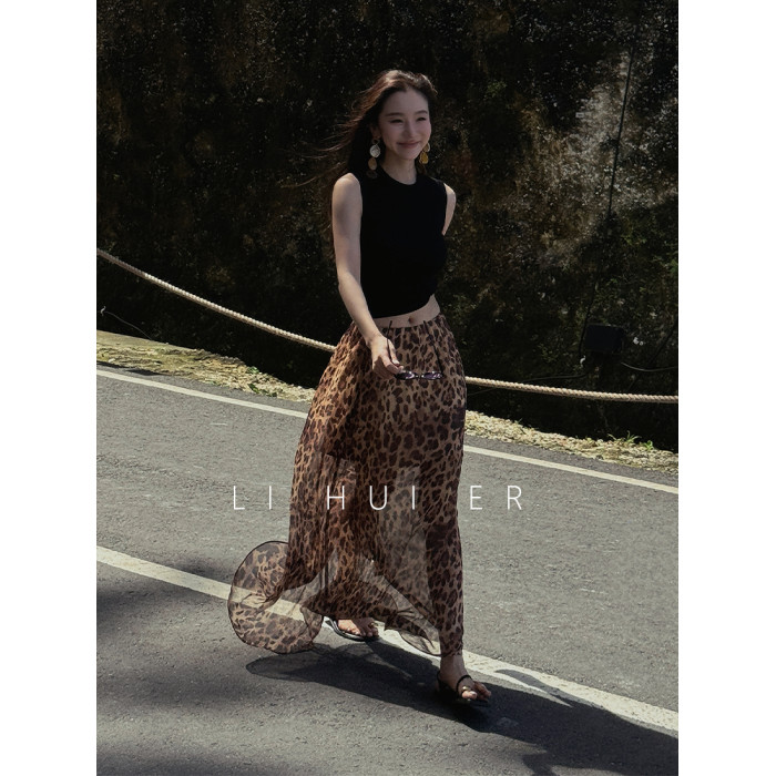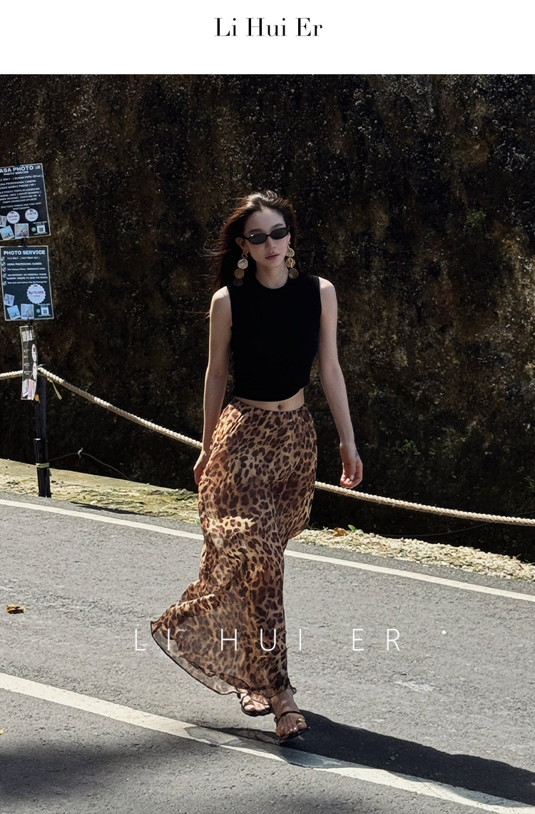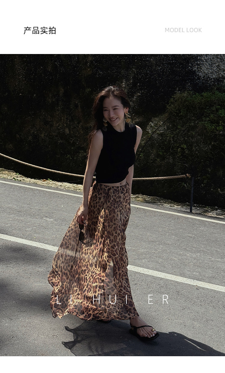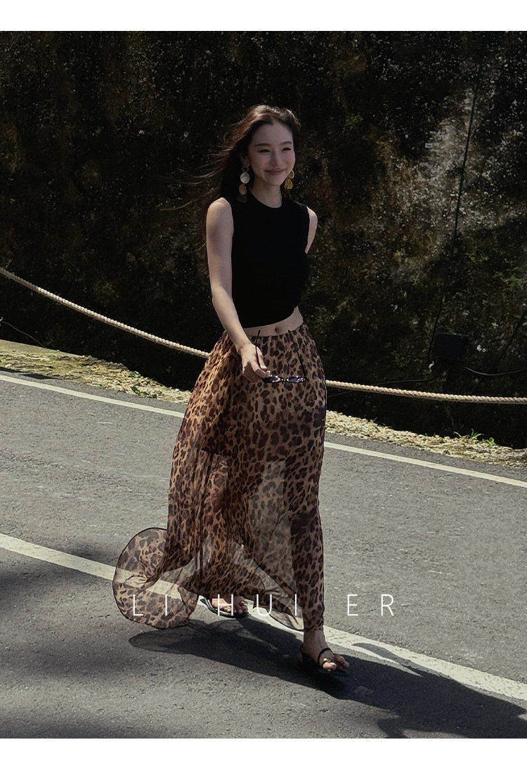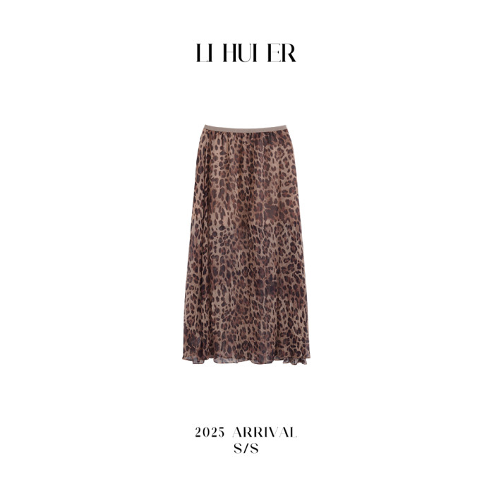 LiHuiEr李慧兒【京都隅光】輕奢極簡度假風半裙桑蠶絲豹紋半身裙