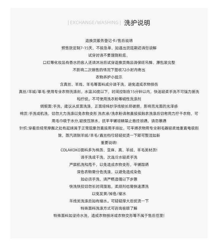 款式及尺寸: