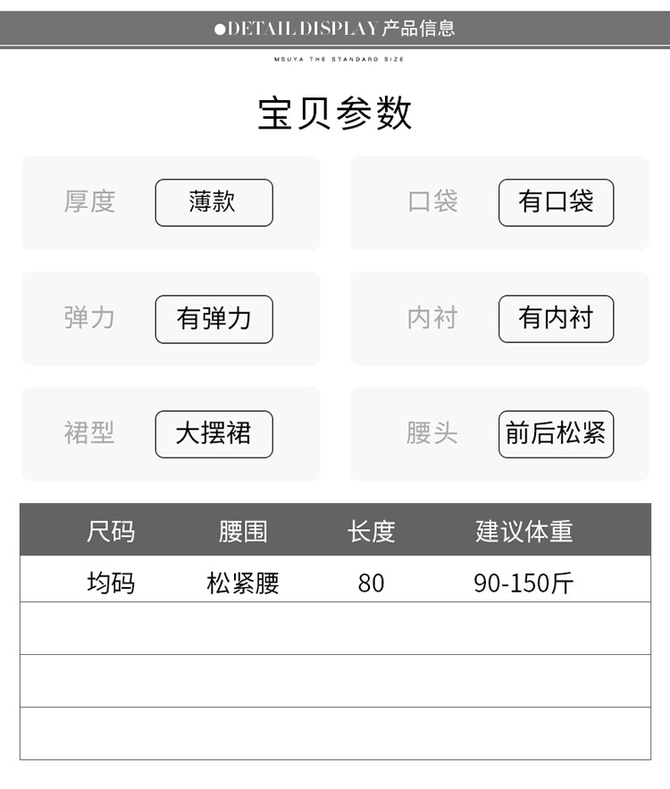 | 裙長 | 中長裙 |