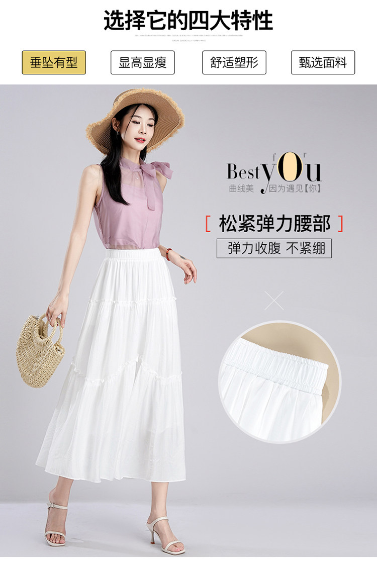 拉夏貝爾2026夏季新款設計感木耳邊白色氣質小個子絕美蛋糕半身裙